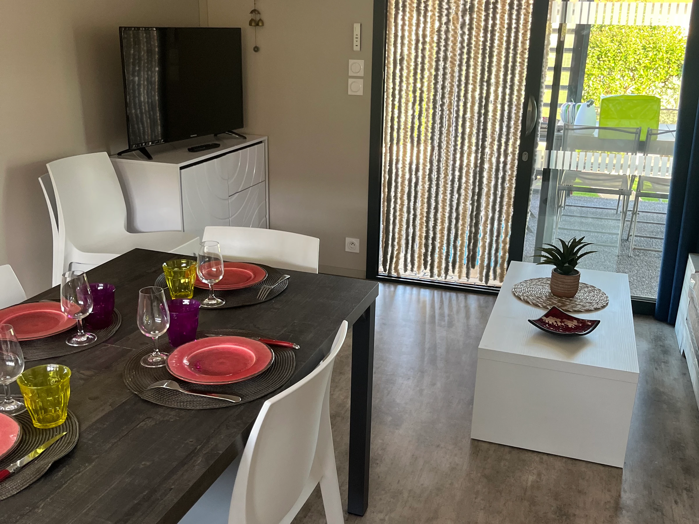 1 Séjour équipé avec canapé convertible, télévision, table à manger