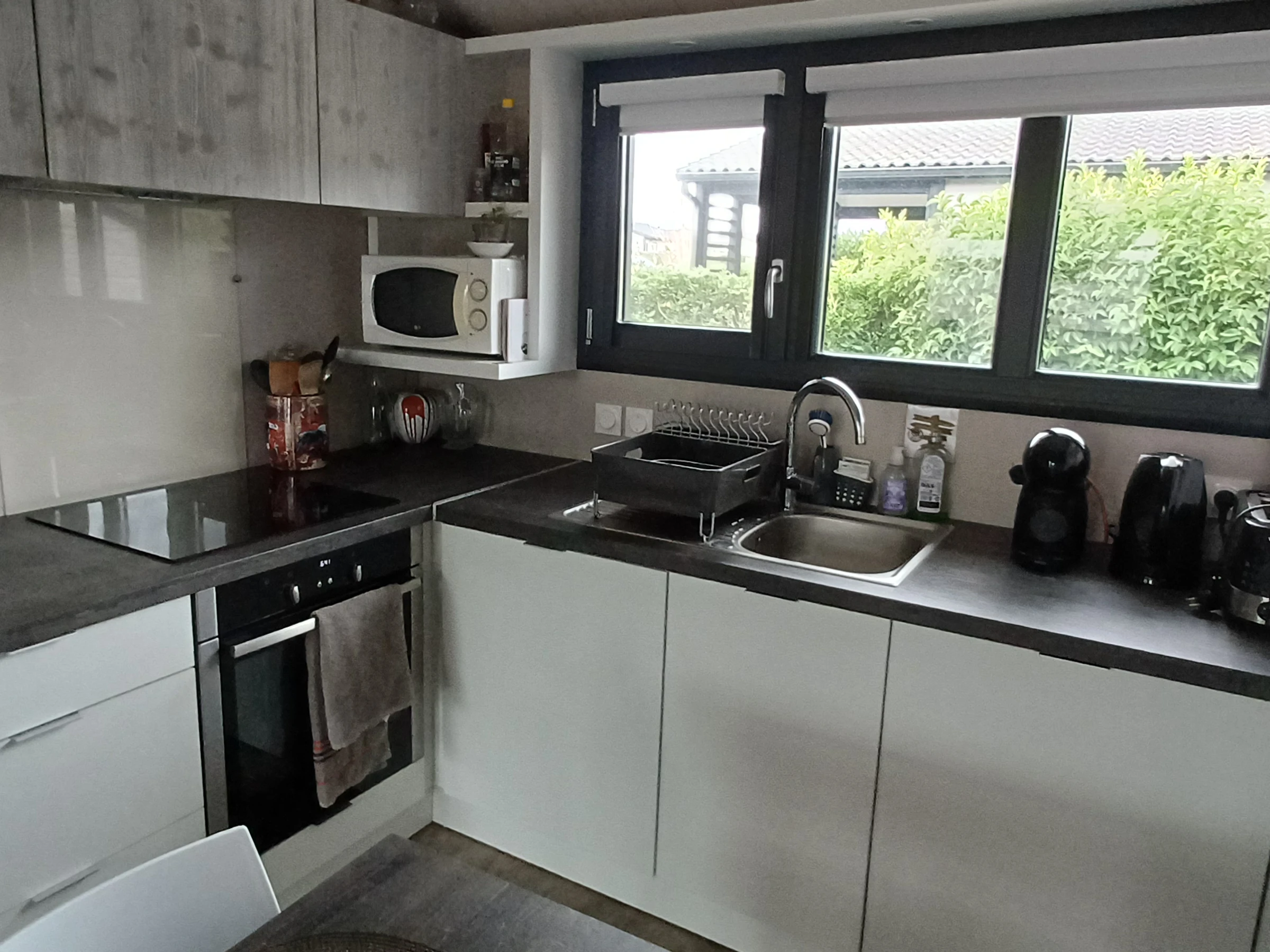 1 Cuisine aménagée et équipée lave-vaisselle, four, plaque induction, grand frigo-congélateur, cafetière à filtre + SENSEO, micro-ondes, bouilloire, grille-pain, sodastream, multicooker, gaufrier, presse agrumes électrique.