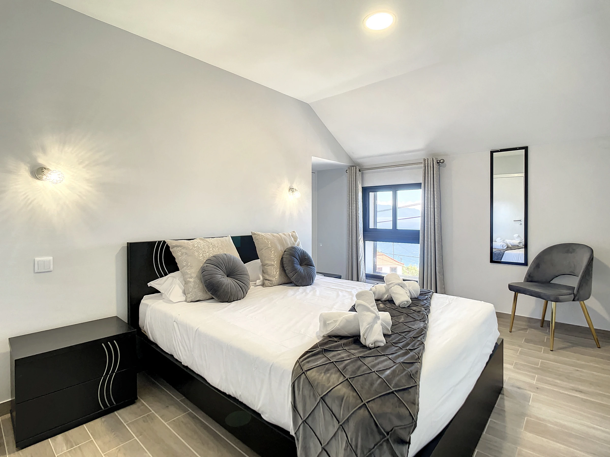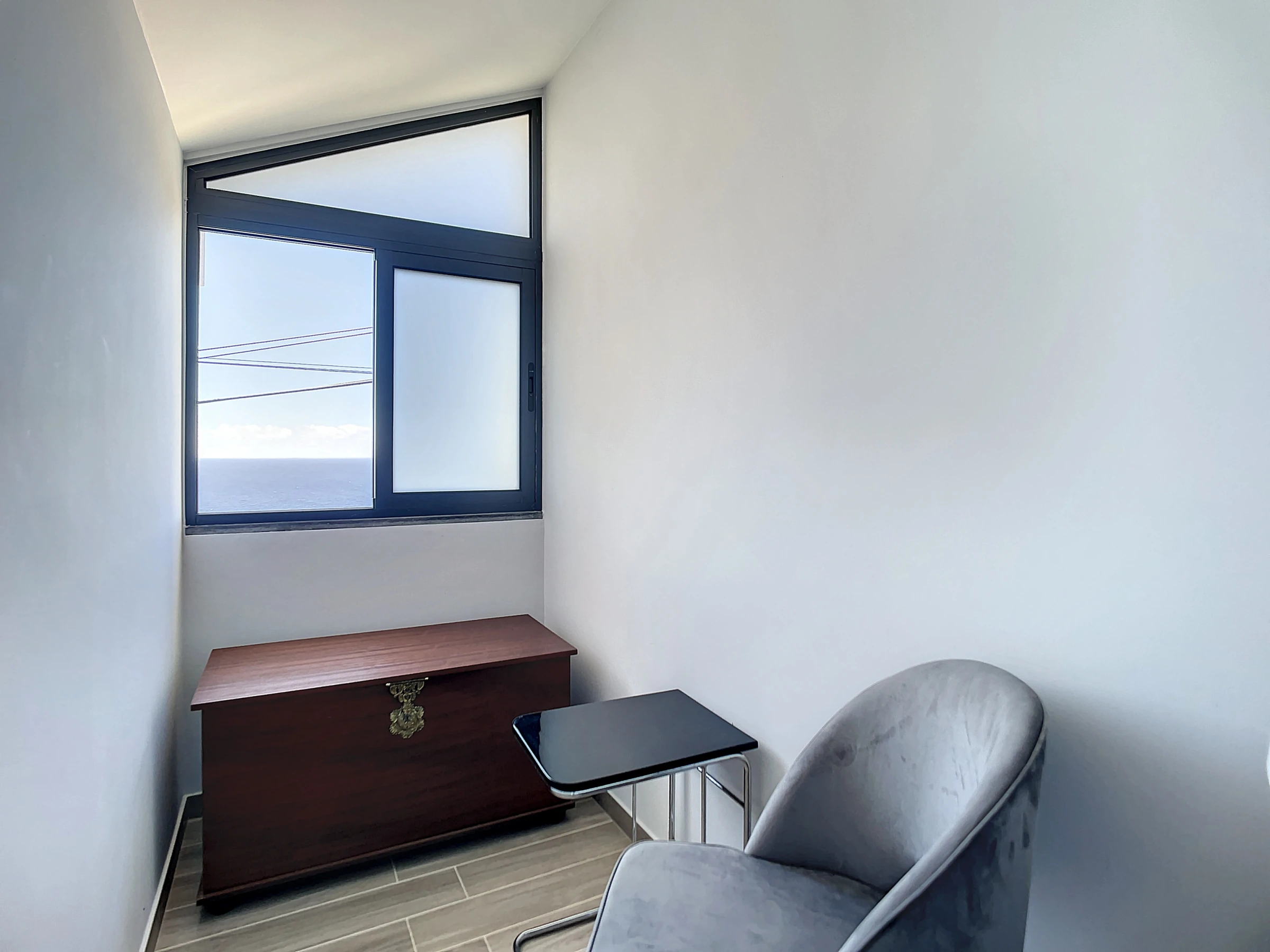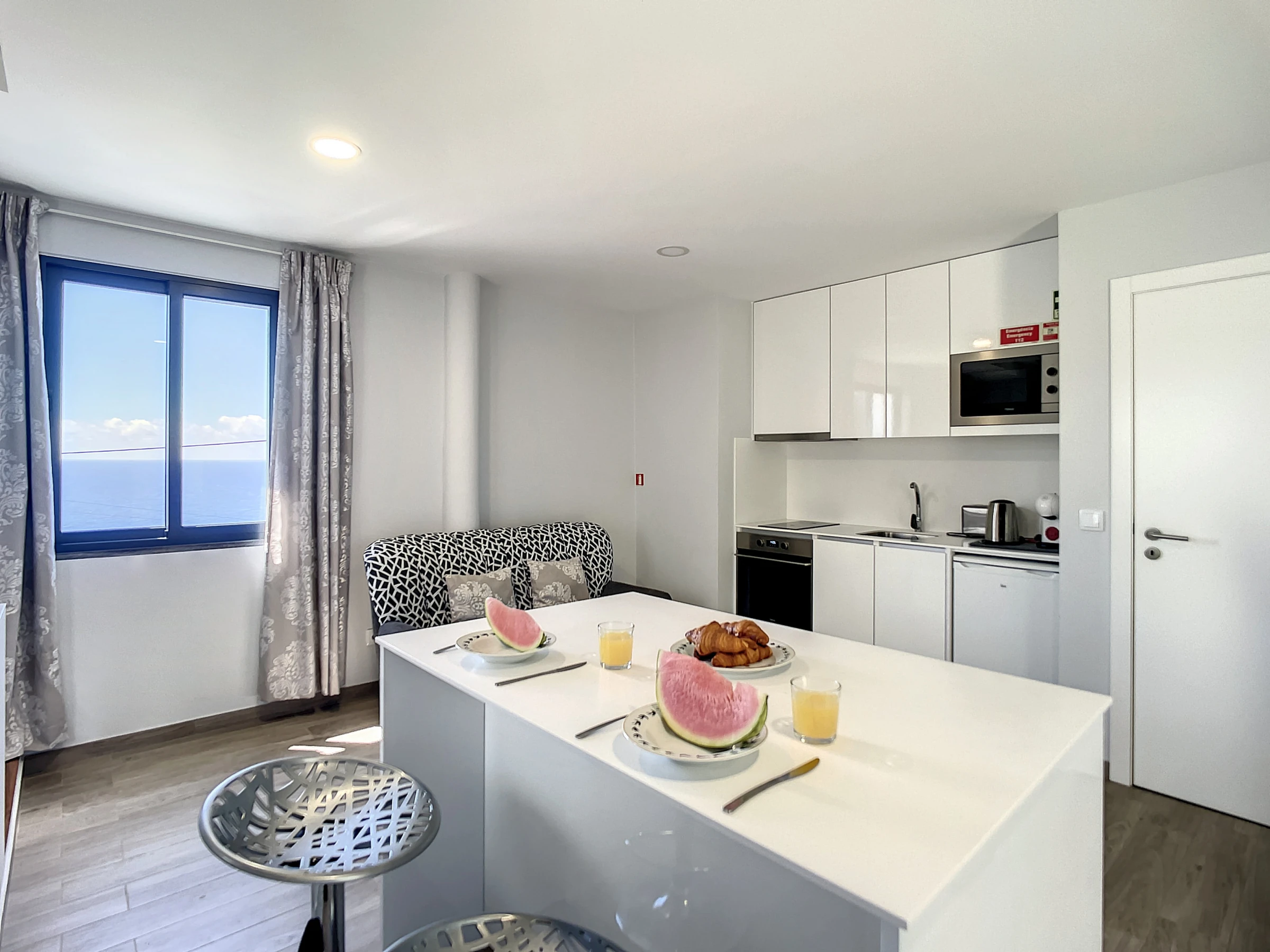 L'appartement dispose d'une chambre paisible avec un lit queen-size et d'un espace de vie ouvert offrant un environnement serein pour se détendre. Le balcon, un havre baigné de soleil, est parfait pour se relaxer et profiter du climat agréable de Madère.