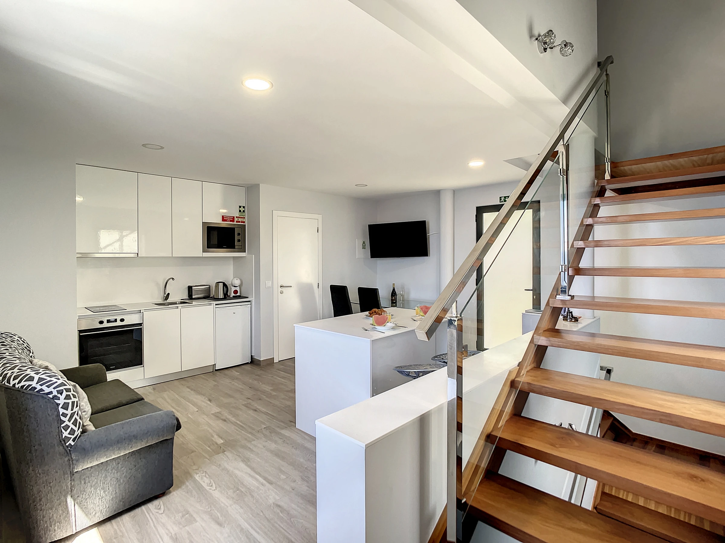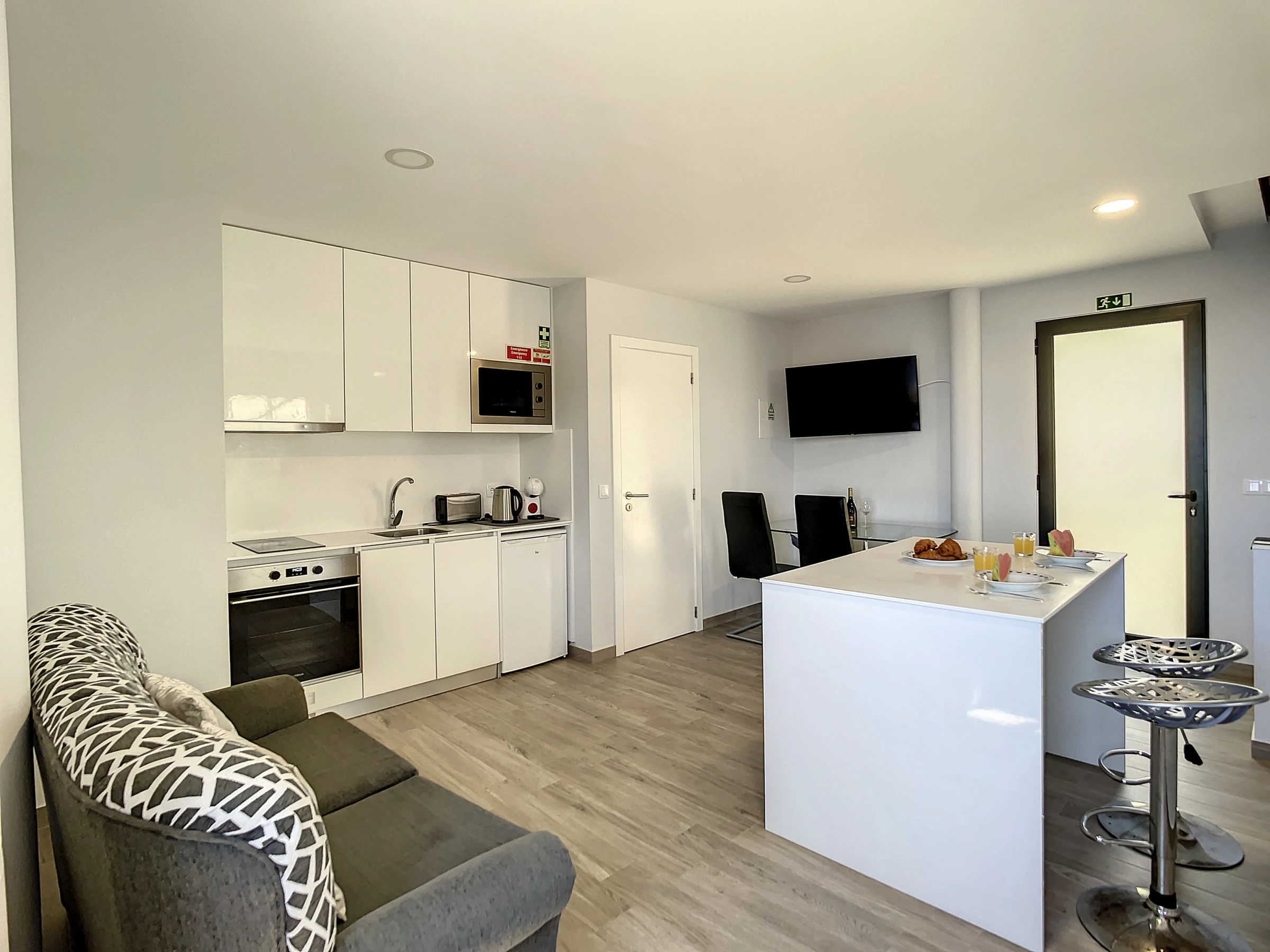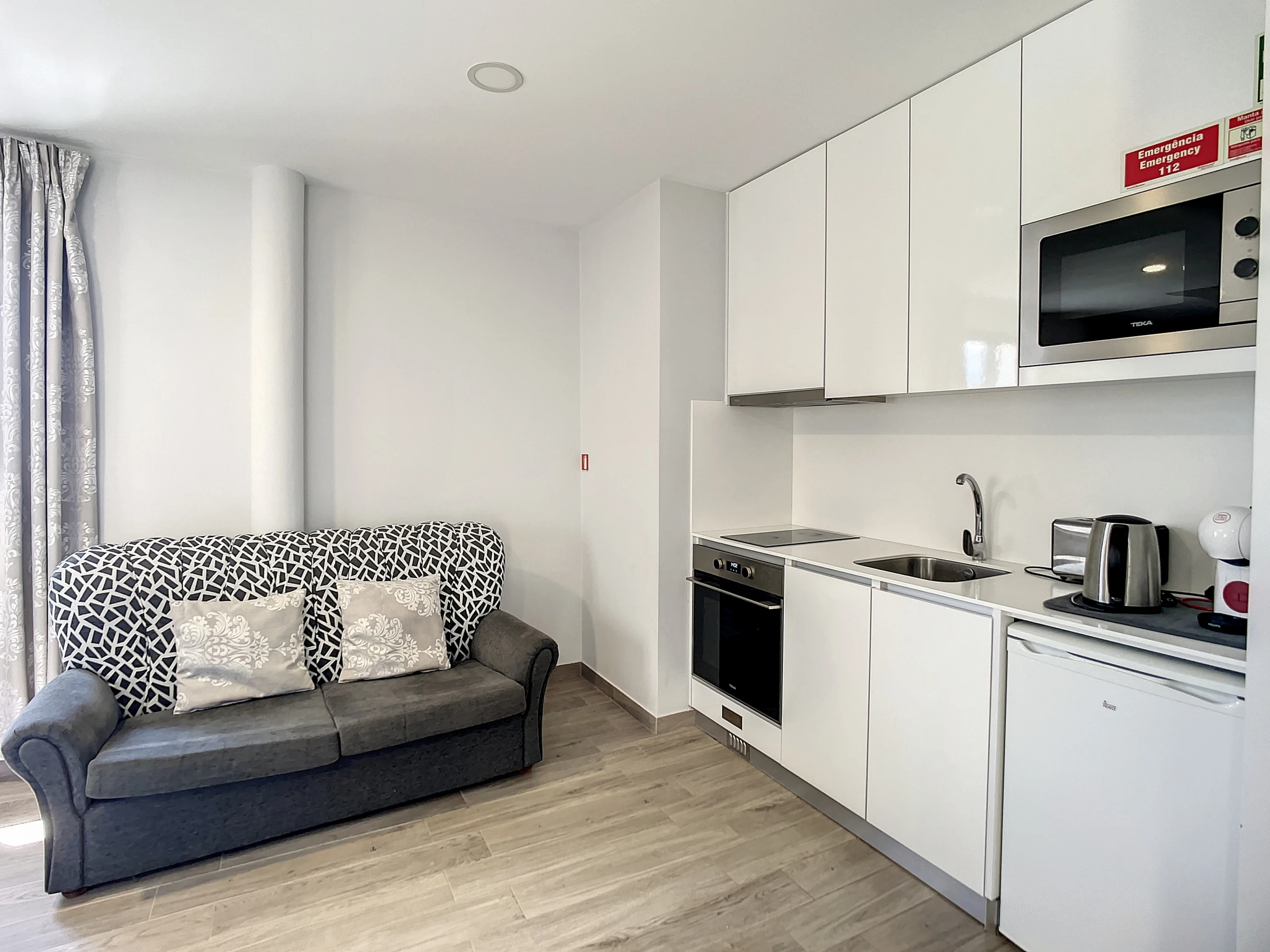 L'appartement dispose d'une chambre paisible avec un lit queen-size et d'un espace de vie ouvert offrant un environnement serein pour se détendre. Le balcon, un havre baigné de soleil, est parfait pour se relaxer et profiter du climat agréable de Madère.