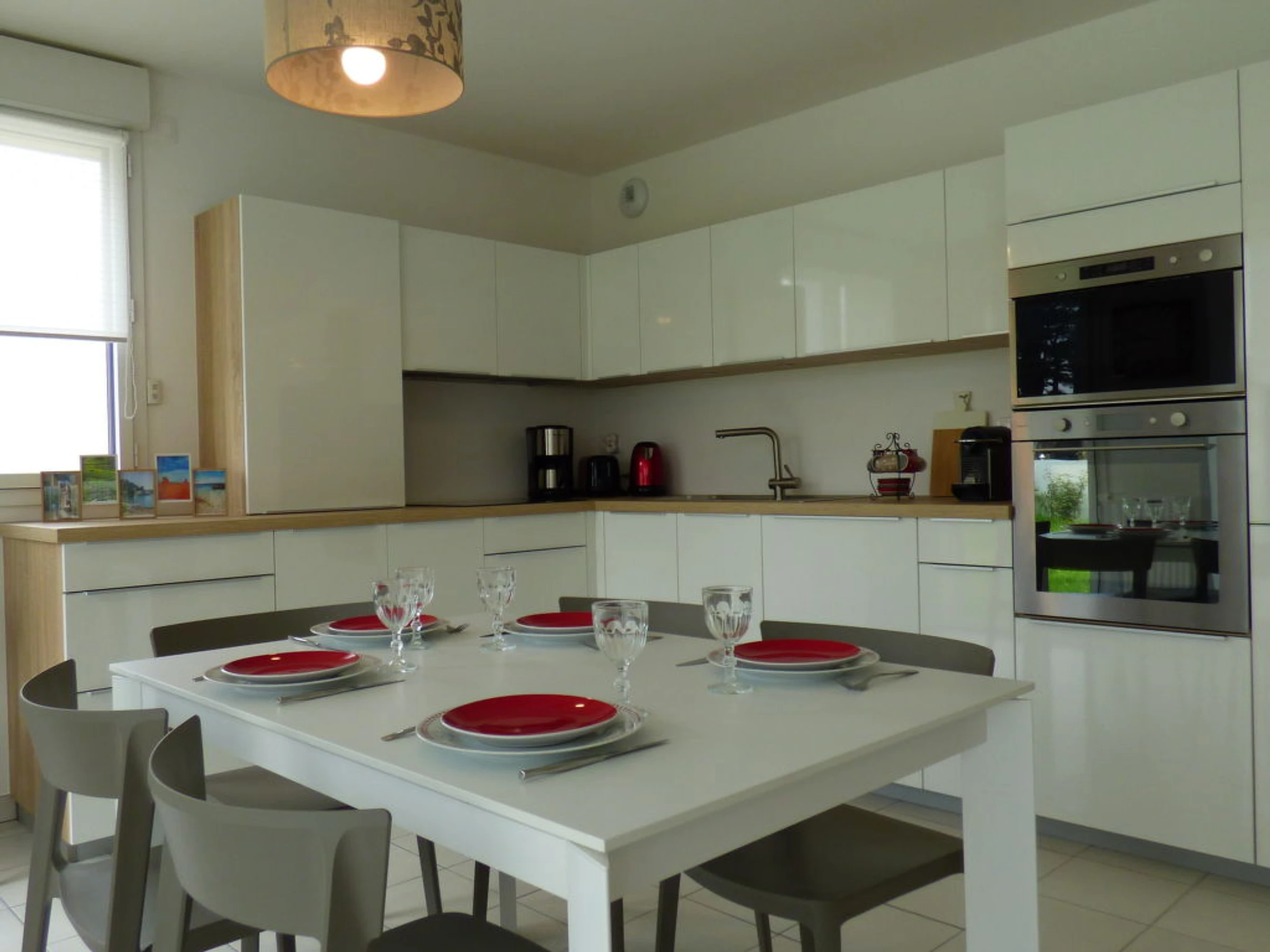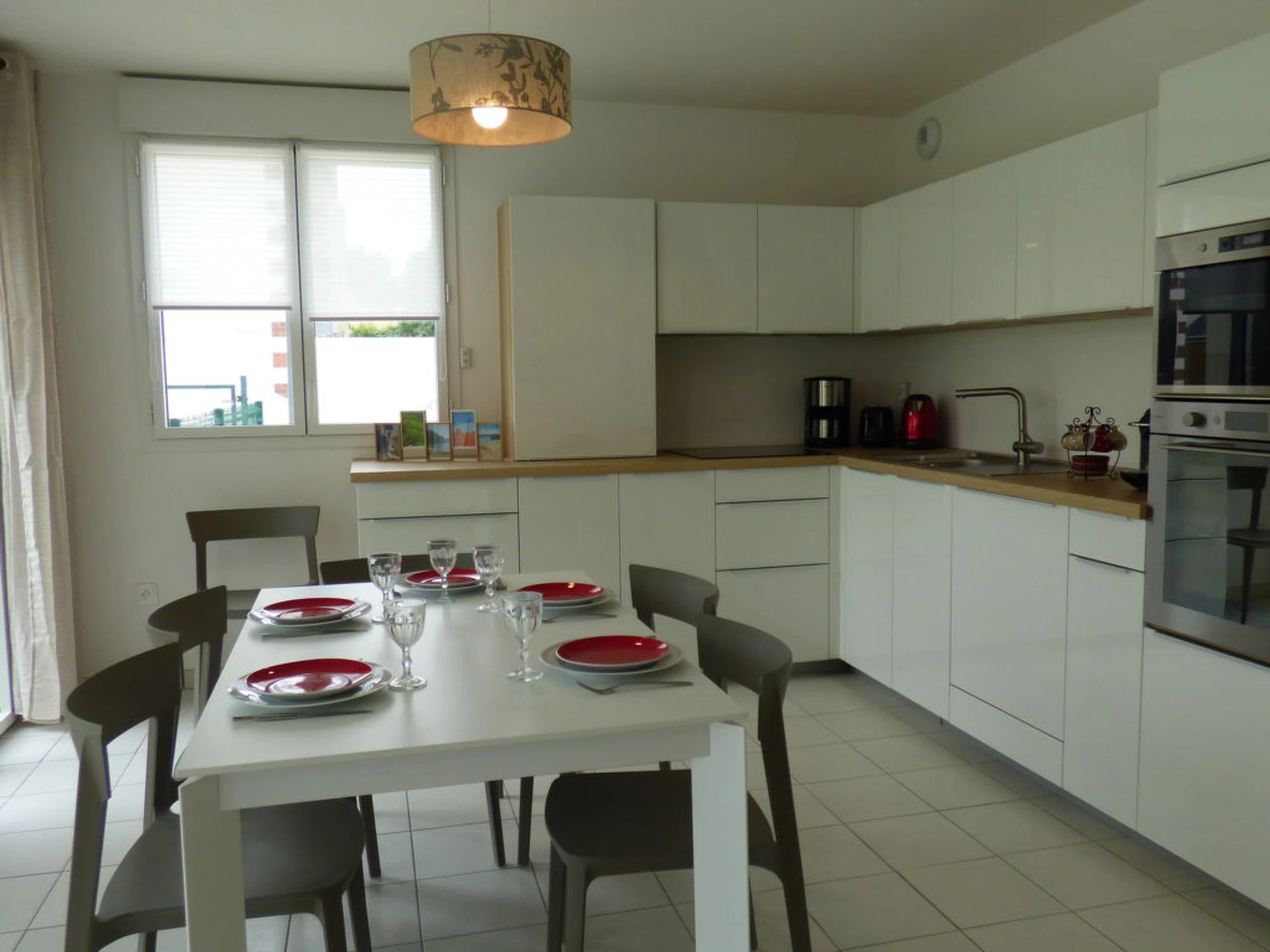 Belle résidence "Les Sylphes", de 2 étages, année de construction 2015, environnée par les arbres. Dans le quartier de La Birochère, situation tranquille, à 10 m de la mer, dans la verdure. En commun: terrain (clôturé) avec pelouse et arbres, piscine (12 x 5 m, profondeur 110 - 160 cm, 01.06.-30.09. horaires d'ouverture de la piscine: 08:00-20:00). Magasins 1.7 km, supermarché 1.5 km, restaurant 350 m, centre à 30 minutes à pieds, gare ferroviaire "pornic" 1.5 km, plage de sable "La Birochère" 350 m, centre thermal "Pornic" 800 m, crique pour baignade 50 m. Attractions à proximité: le sentier des Daims 22 km, Planete sauvage 29 km, Les Machines de l'ile Nantes 48 km, le Puy du fou 134 km.