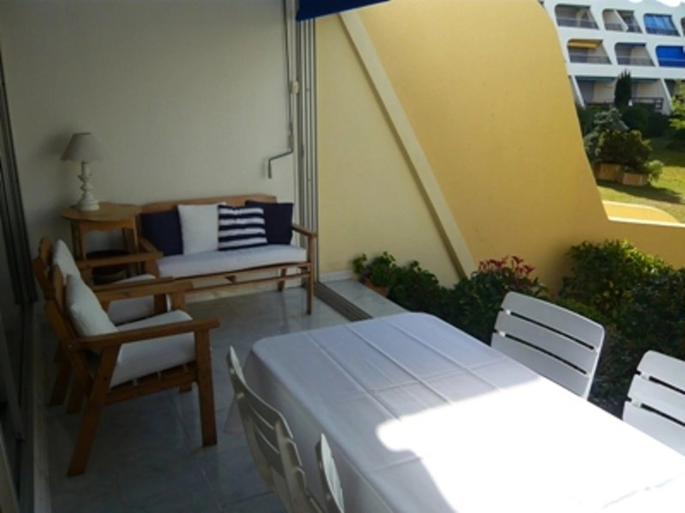 Appartement 2 pièces + cabine, climatisé, prévu pour 4 personnes, au rez-de-chaussée surélevé. Il dispose d'une belle terrasse véranda aménagée avec salon de jardin et store, d'un jardin privatif et offre une agréable vue dégagée.