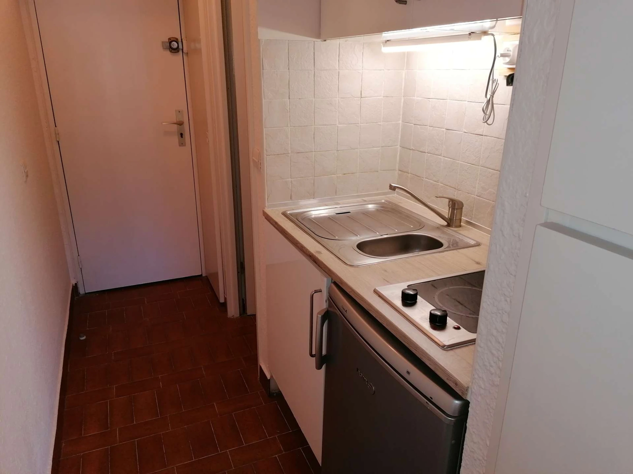 Il se compose de : Une entrée avec kitchenette équipée (2 plaques électriques, réfrigérateur top, four + micro-ondes) cafetière électrique.
