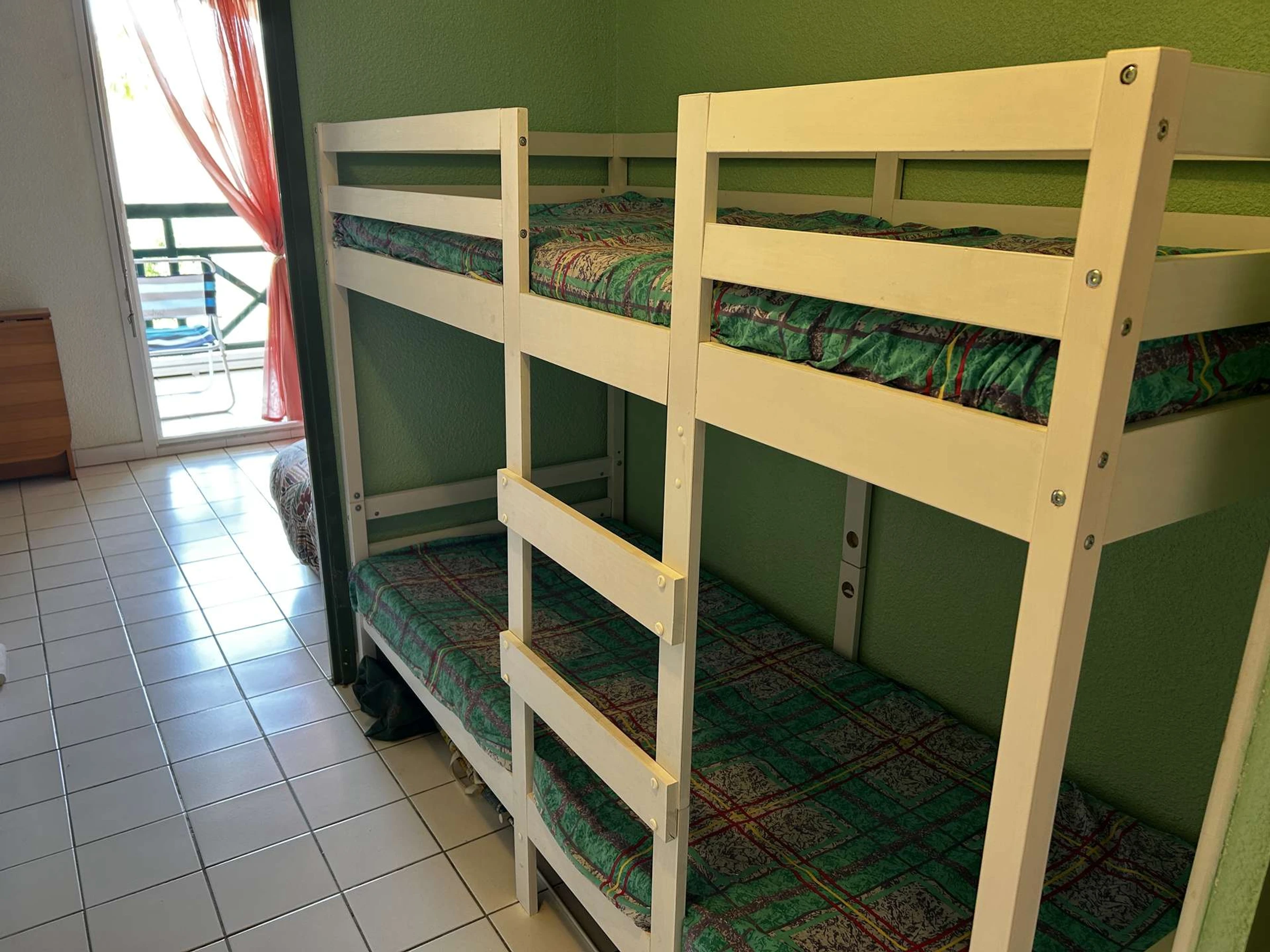 P2 de 28 m2 au 2 émè étage avec ascenseur,exposé sud-Ouest avec loggia et vue sur la piscine et le lac Salonique.Séjour avec un bz et télévision. Cuisine avec micro-ondes/four électrique et 2 plaques de cuisson électriques. Chambre avec un lit en 140 , et coin cabine à l'entrée avec un lit superposé en 90 . Salle de bain avec baignoire et WC séparè.
