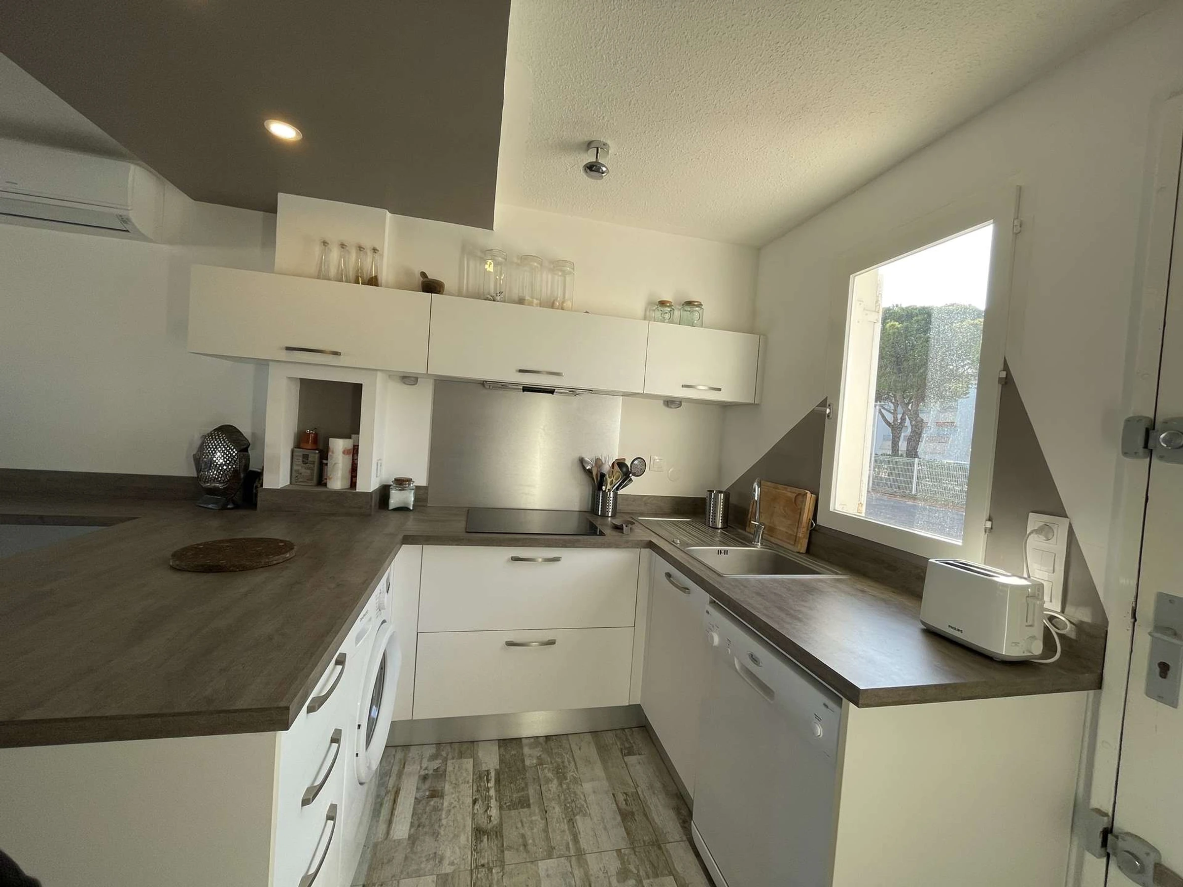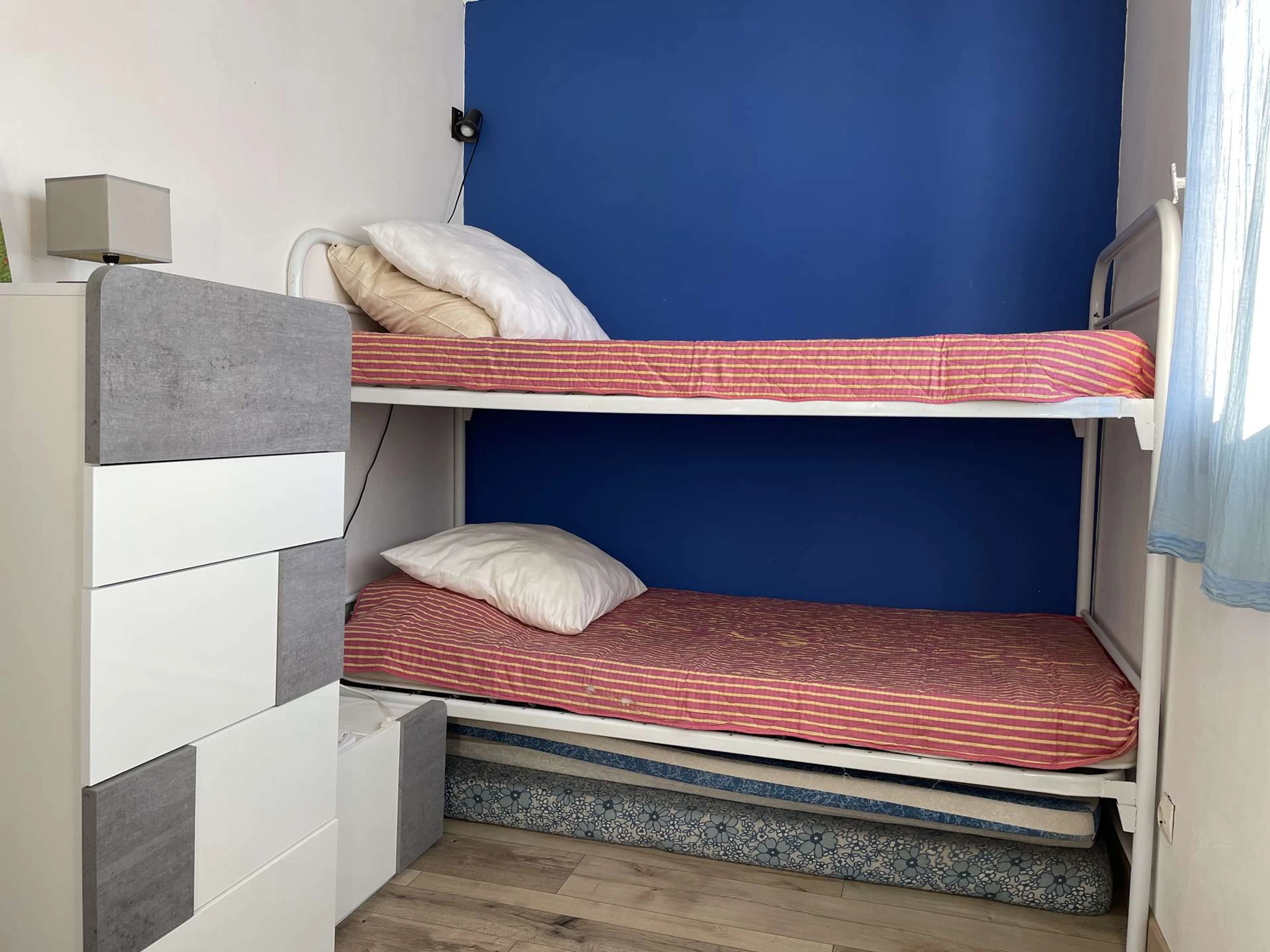 Dans le site privilégié des marinas, ce trois pièces en duplex est composé au rez de chaussée d'une cuisine tout équipée avec lave vaisselle ,lave-linge, réfrigerateur -congélateur,four et micro-ondes, d'un WC indépendant, d'un séjour climatisé avec téléviseur donnant sur une terrasse de 20 m2 environ. A l'étage se trouve une première chambre avec 1 lit double en 160 cm et rangement , une deuxième chambre avec deux lits simples en 90 . une salle de bain avec douche et WC.