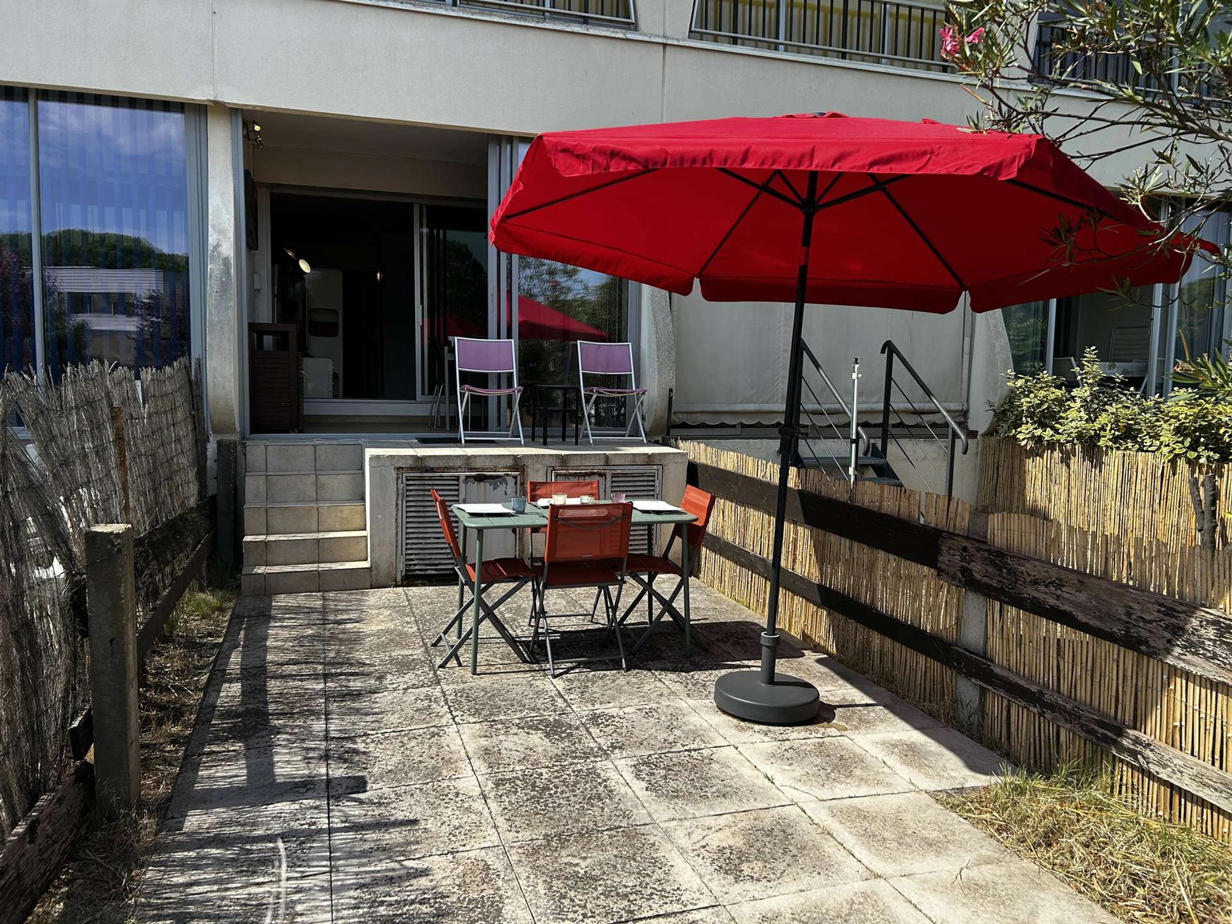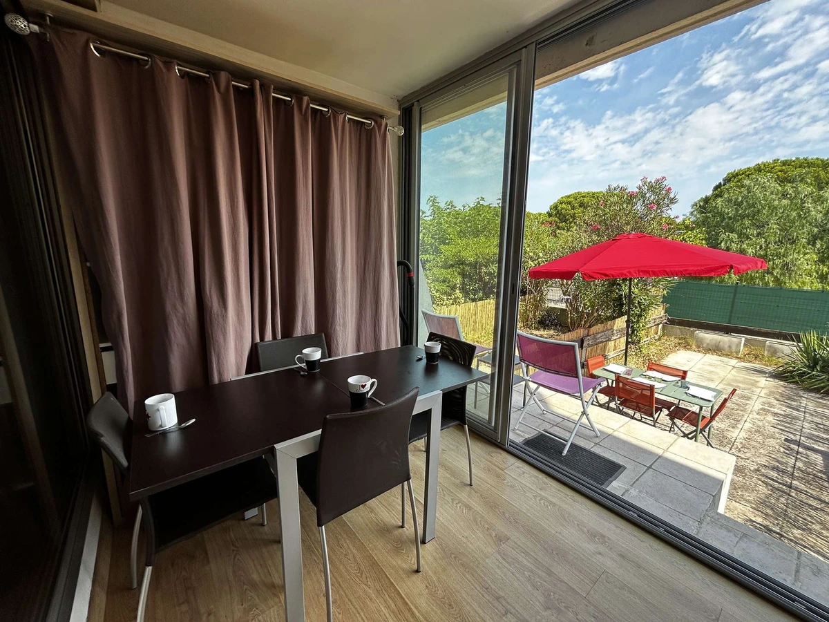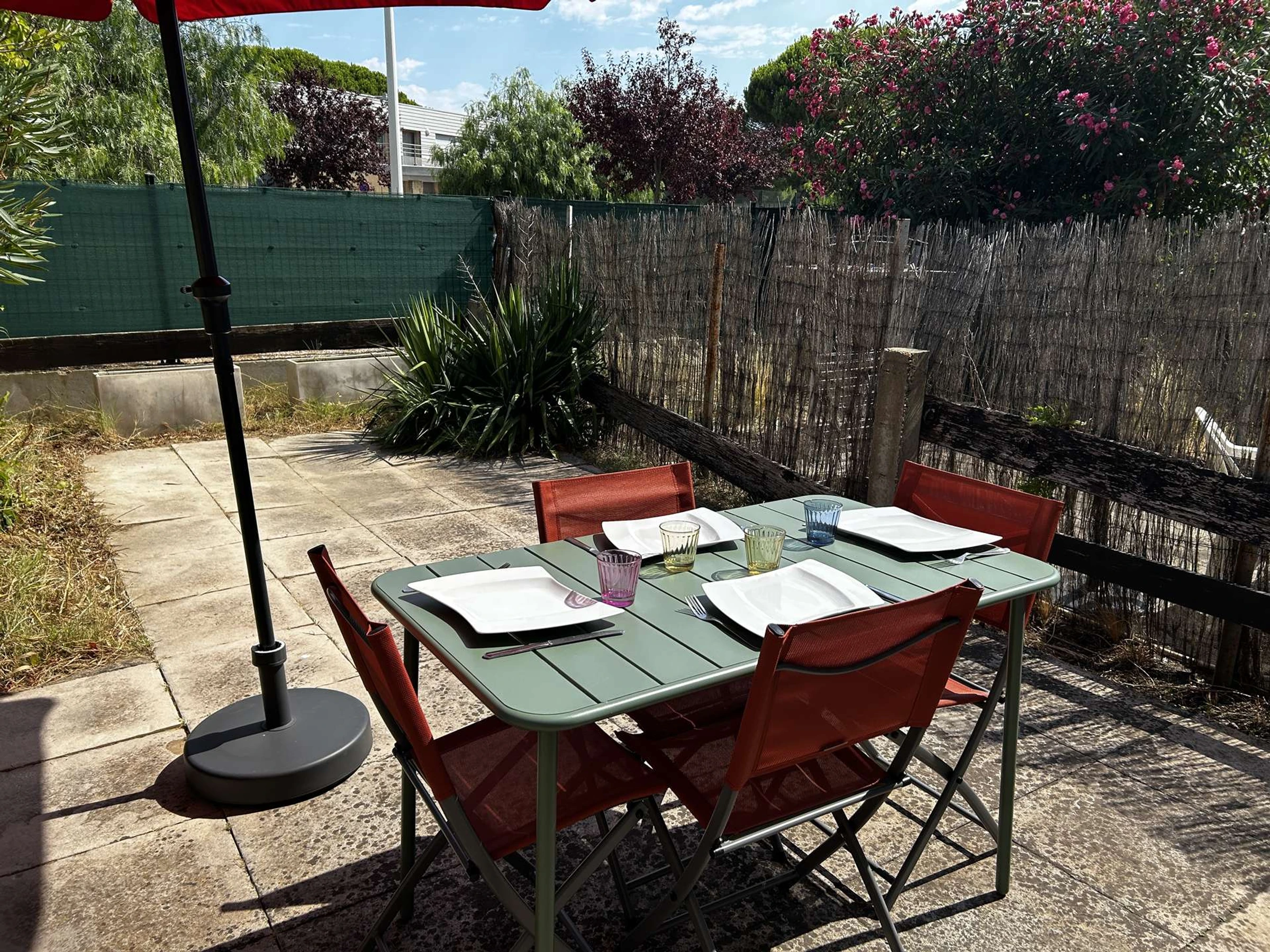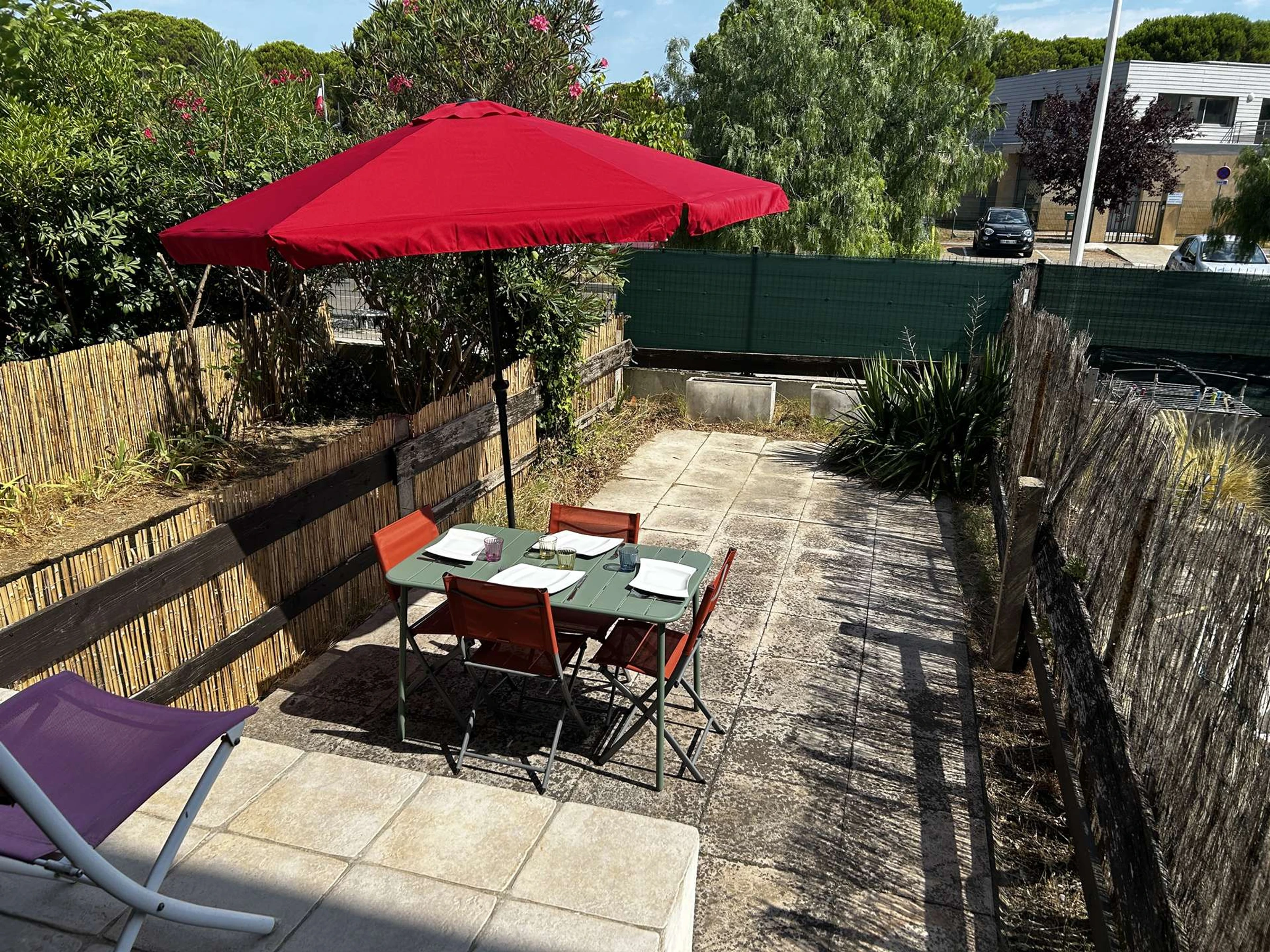 Ce logement pour 4 personnes se situe dans le secteur de la plage nord à Port Camargue, en rez de jardin de la résidence Les Jardins du Port. Il se compose d'un séjour avec deux couchages doubles : un bz en 140 cm et un lit placard en 160 cm ; un coin cuisine tout équipé avec plaques vitrocéramique, four et four micro ondes ; une salle d'eau avec toilettes. Le séjour donne sur une loggia permettant d'agrandir l'espace de vie du logement, ainsi qu'une belle cour d'environ 25 m2, avec mobilier de jardin et parasol.