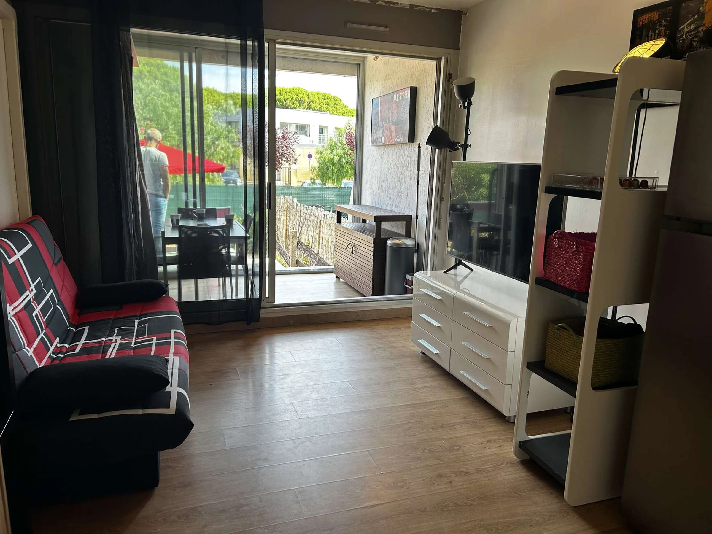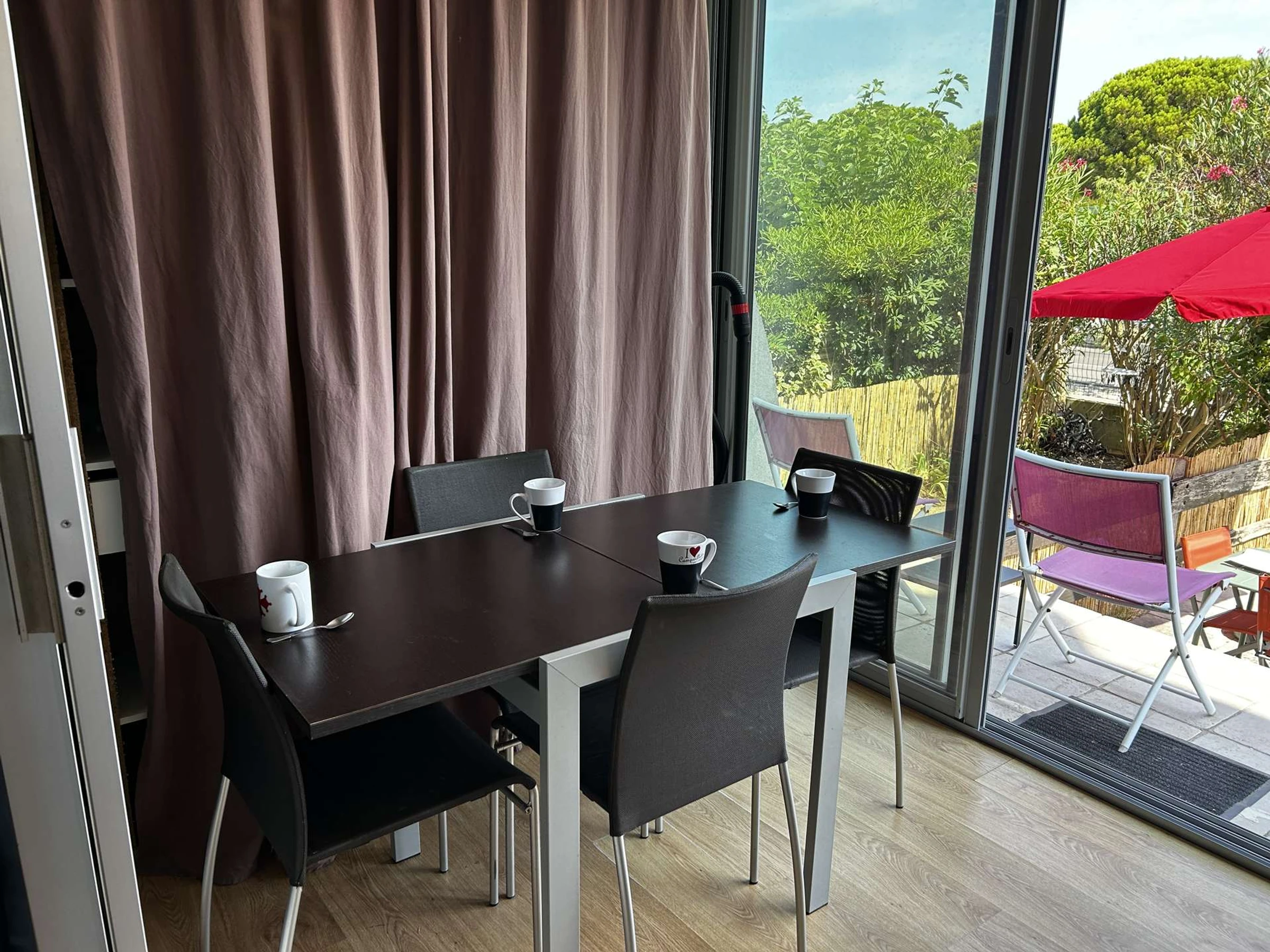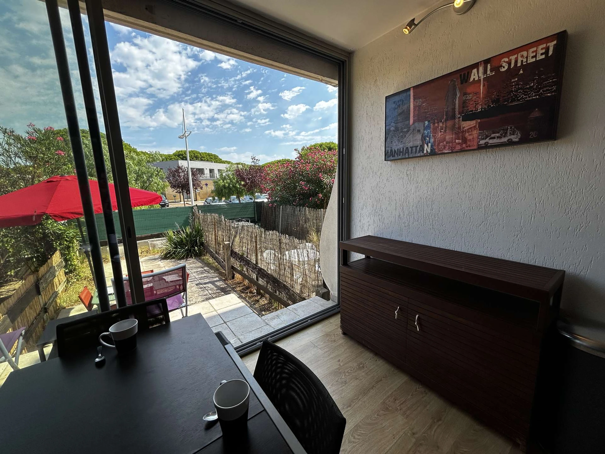 Ce logement pour 4 personnes se situe dans le secteur de la plage nord à Port Camargue, en rez de jardin de la résidence Les Jardins du Port. Il se compose d'un séjour avec deux couchages doubles : un bz en 140 cm et un lit placard en 160 cm ; un coin cuisine tout équipé avec plaques vitrocéramique, four et four micro ondes ; une salle d'eau avec toilettes. Le séjour donne sur une loggia permettant d'agrandir l'espace de vie du logement, ainsi qu'une belle cour d'environ 25 m2, avec mobilier de jardin et parasol.