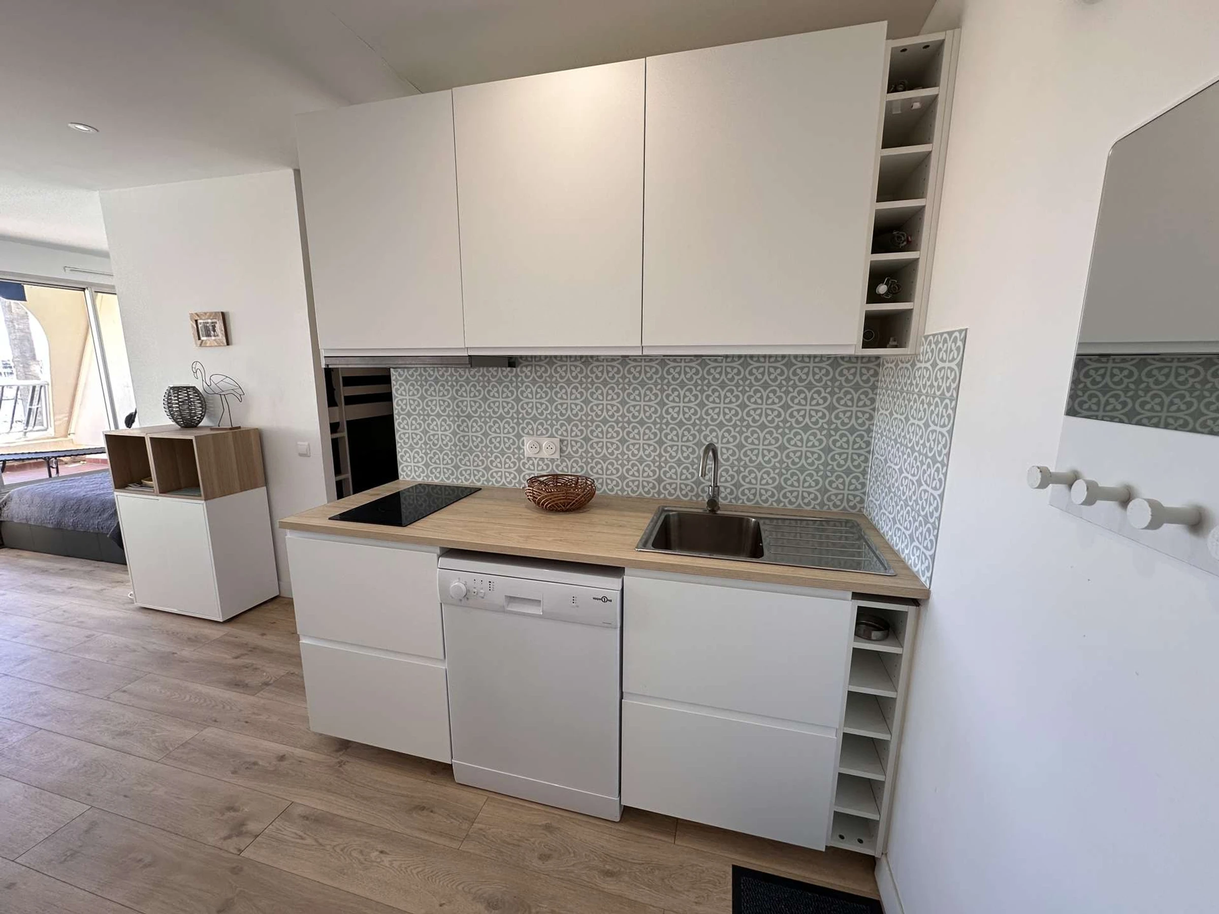 Le logement comprend: Entrée avec cuisine entièrement équipée : plaques vitrocéramiques, réfrigérateur-congélateur, micro-ondes, cafetière, lave-vaisselle
