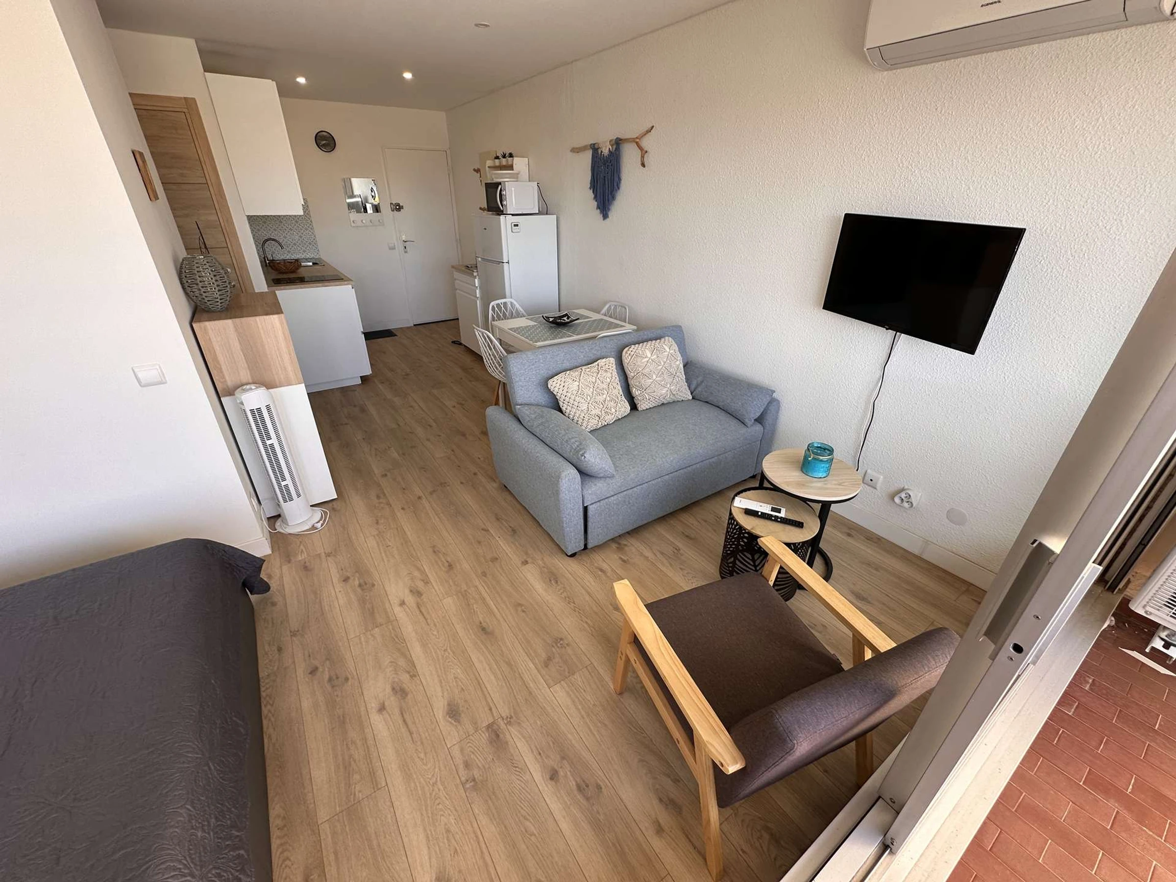 D’une surface de 31 m², ce logement lumineux offre une vue dégagée sur le port de plaisance, la piscine et les espaces verts de la résidence.