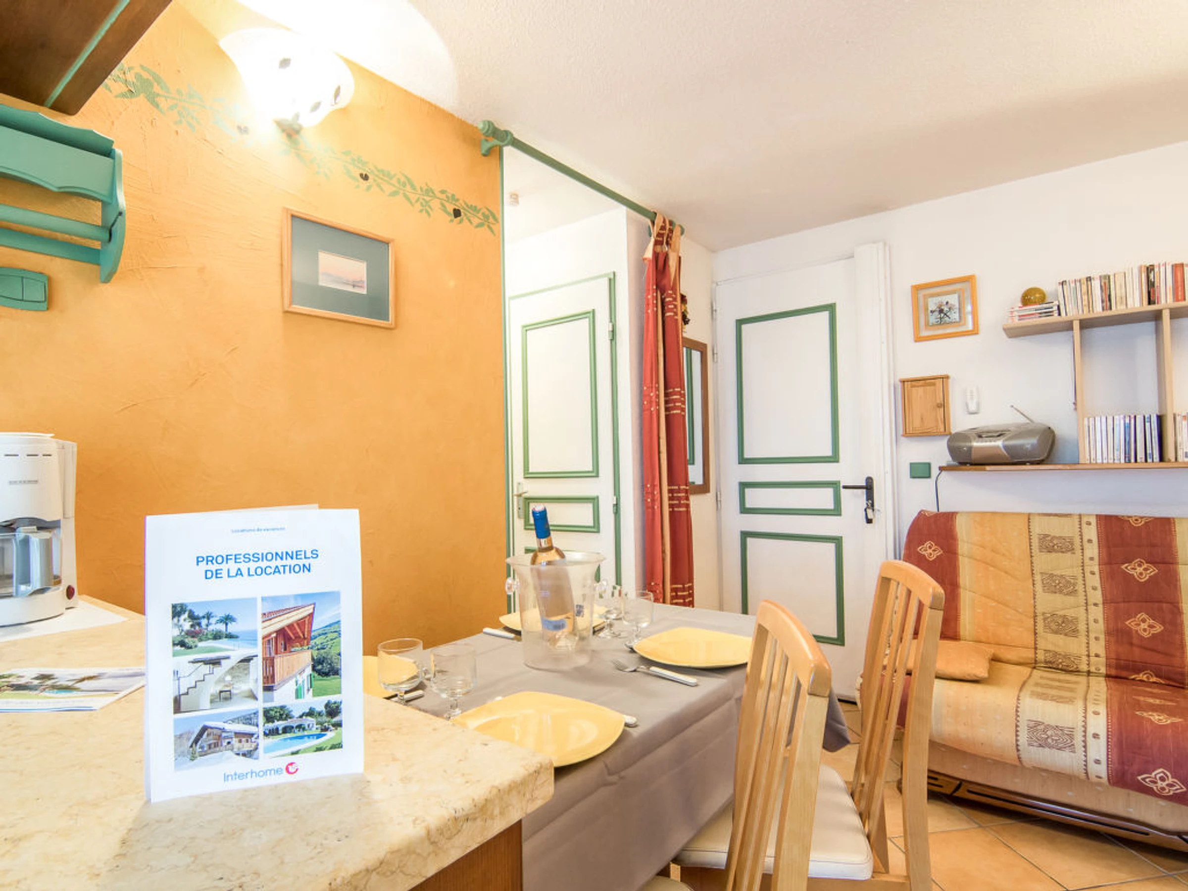 Apt 2 pièces 27 m2 au 2ème étage. Bien convenant à 2 adultes + 2 enfants. Aménagement agréable: séjour/salle à manger avec 1 divan-lit double et TV (écran plat). Sortie sur la terrasse. 1 chambre avec 1 grand-lit (140 cm, longueur 190 cm). Cuisine ouverte (2 plaques de cuisson, four, four micro-ondes). Douche, WC séparé. Terrasse 12 m2. Vue sur les alentours. A disposition: lave-linge. Internet (Connexion WIFI, en sus). Place de parking No 99 (couvert), hauteur 190 cm. Veuillez noter: détecteur de fumée.