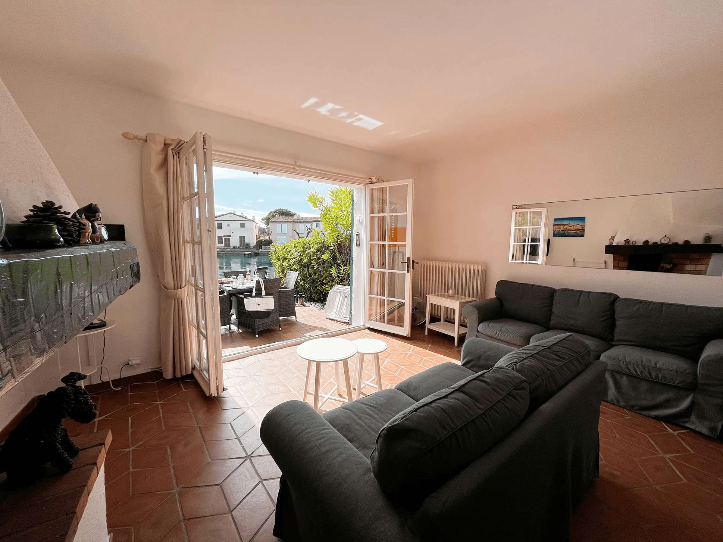 Au rez-de-chaussée, vous trouverez une cuisine américaine moderne et fonctionnelle ainsi qu’un séjour spacieux, donnant sur une terrasse côté canal et un petit jardin sécurisé par une barrière.