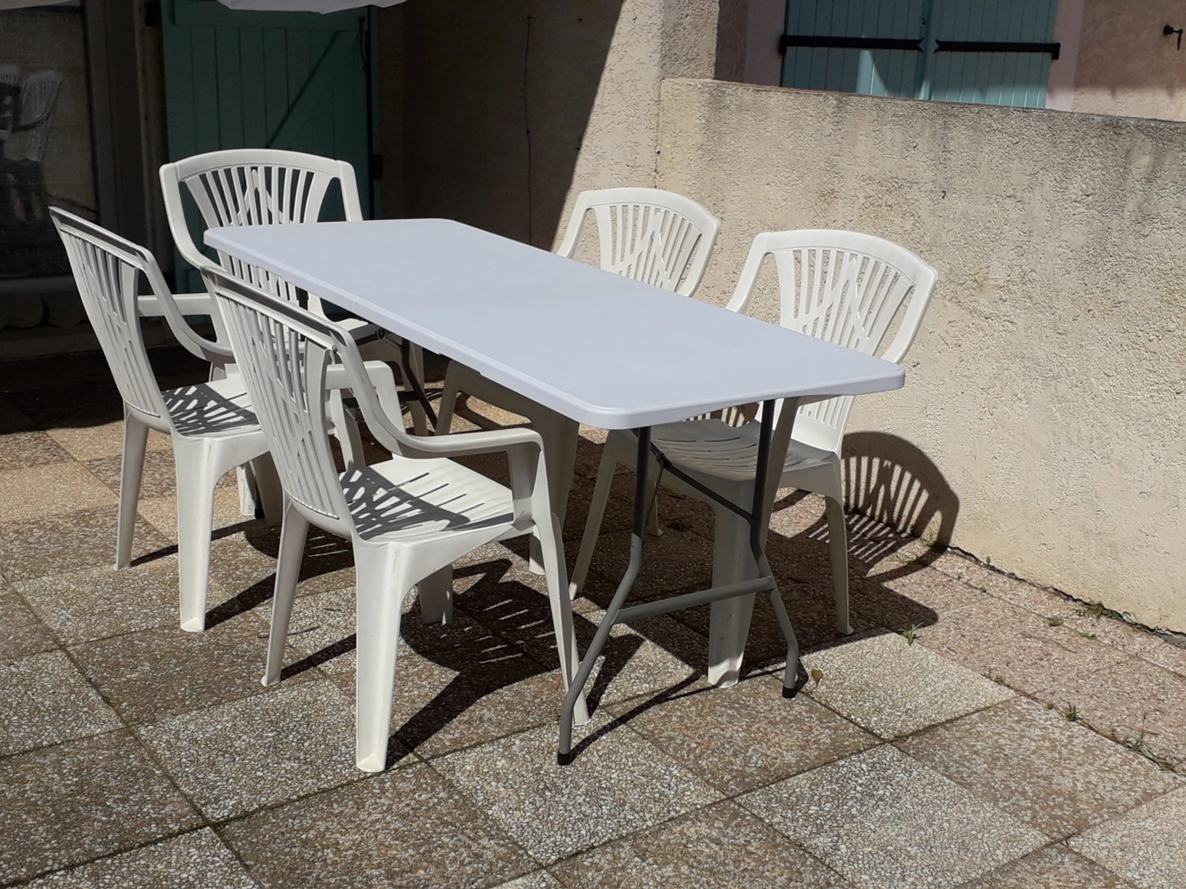 1 salle d'eau. 1 WC. Cour, terrasse. Equipements : TV, Micro ondes, four, grand frigo congélateur, Lave linge, climatisation, Salon de jardin.