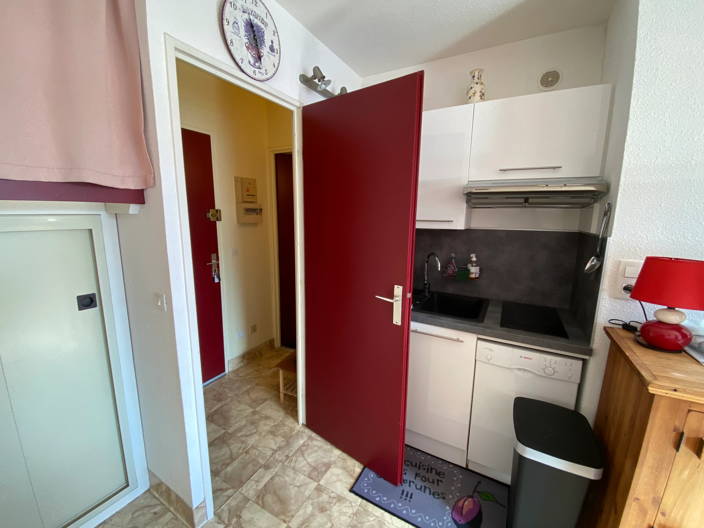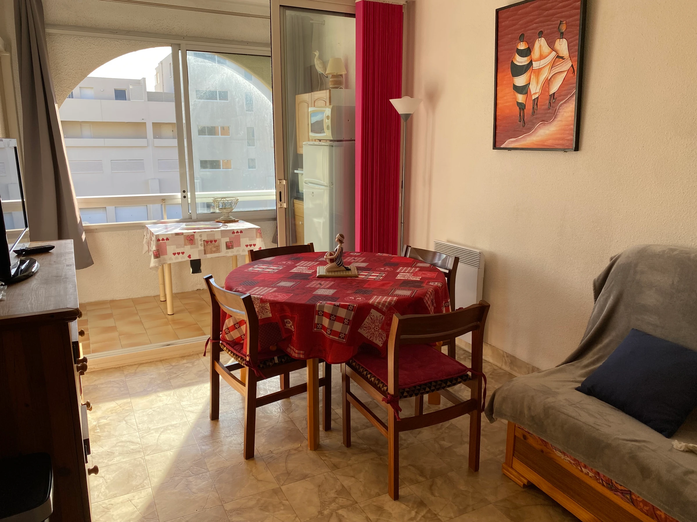 Résidence Les Terrasses du Port. 4 Personnes. T2 Loggia climatisé situé au 2ème étage. Séjour (clic clac) ouvert sur un coin cuisiné équipé, une chambre (1 lit 120), une salle d'eau-wc, une loggia (BZ). Parking privé et sécurisé.