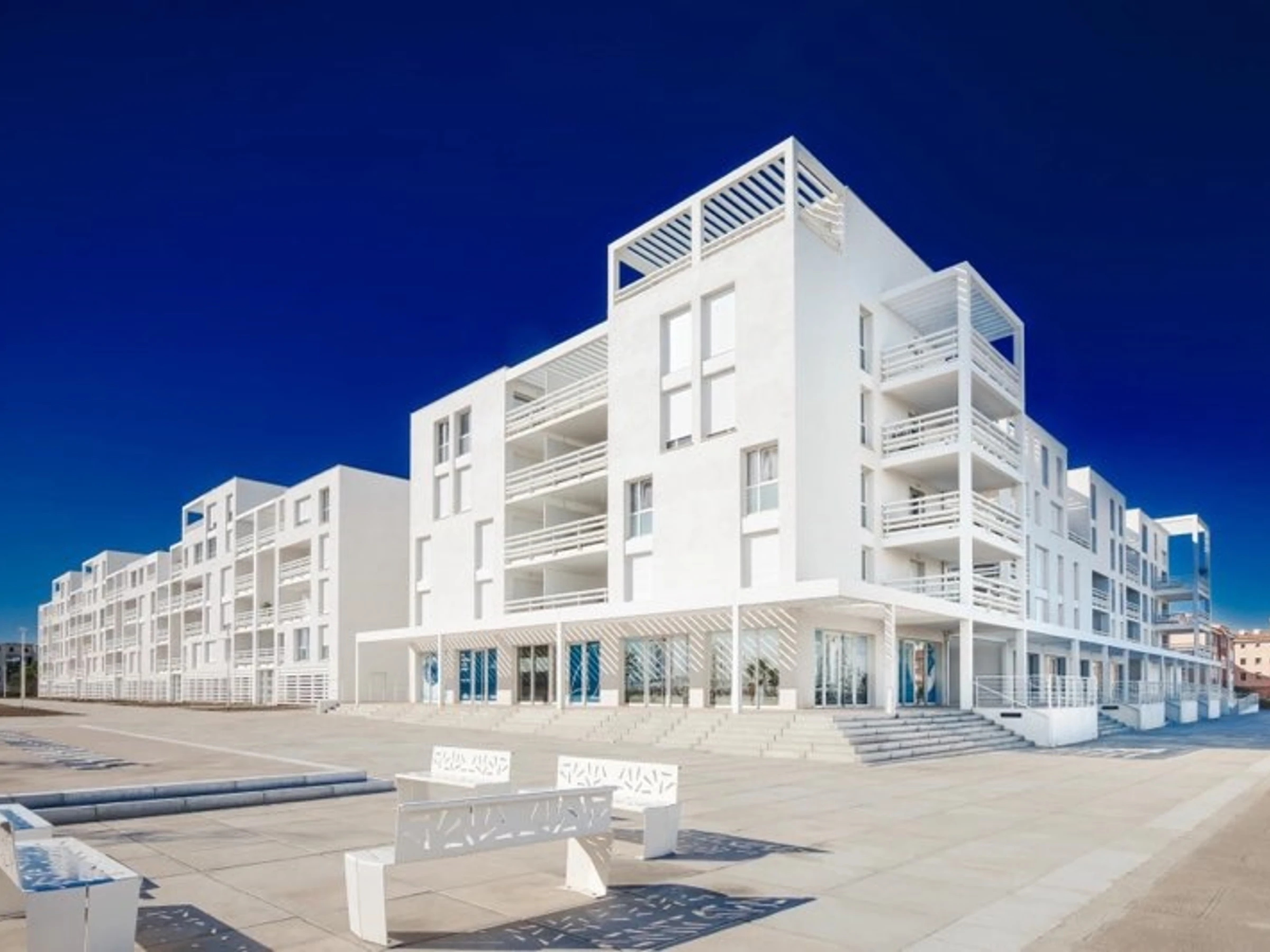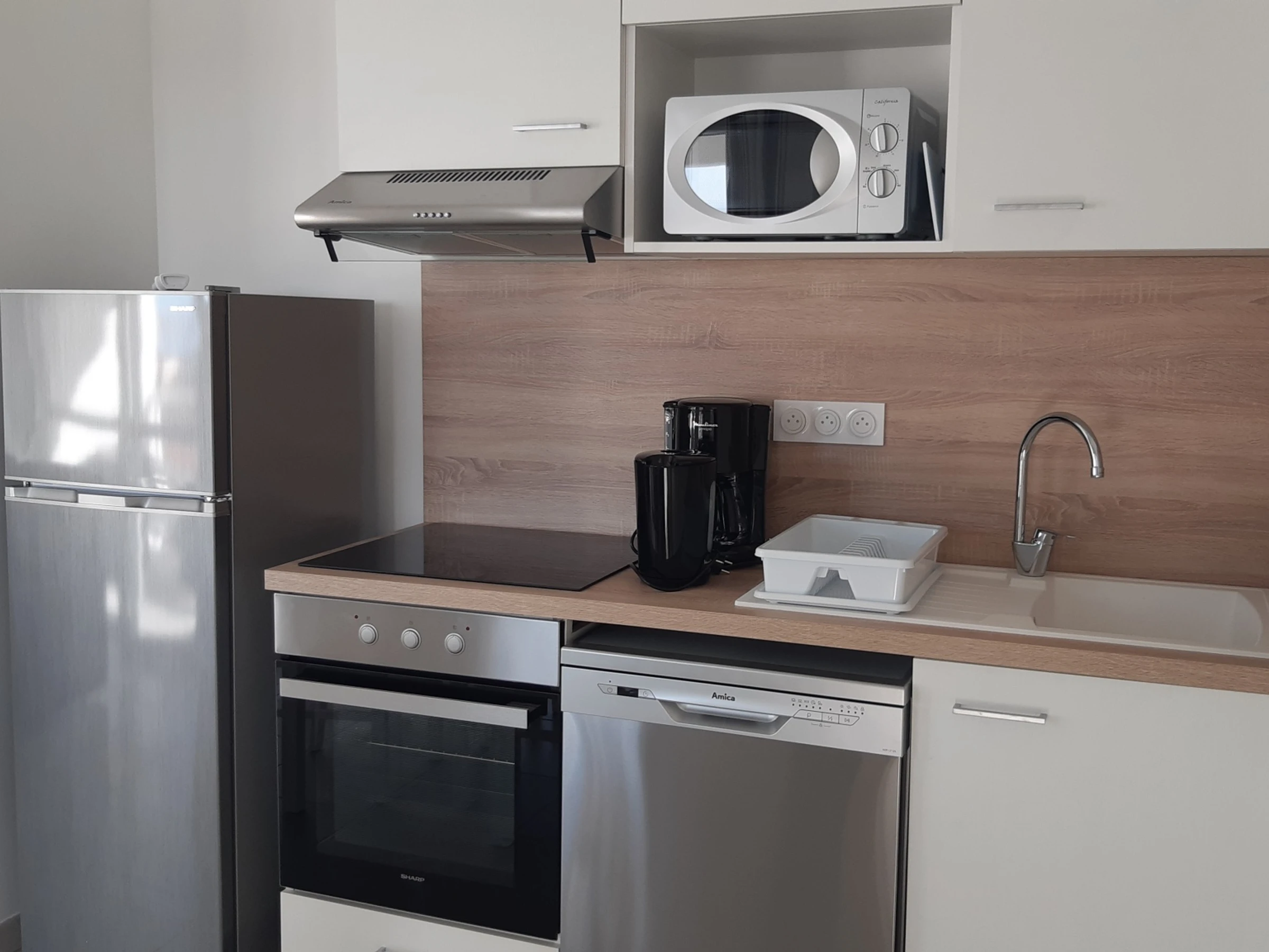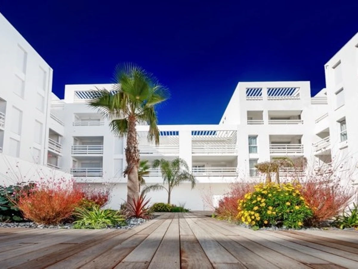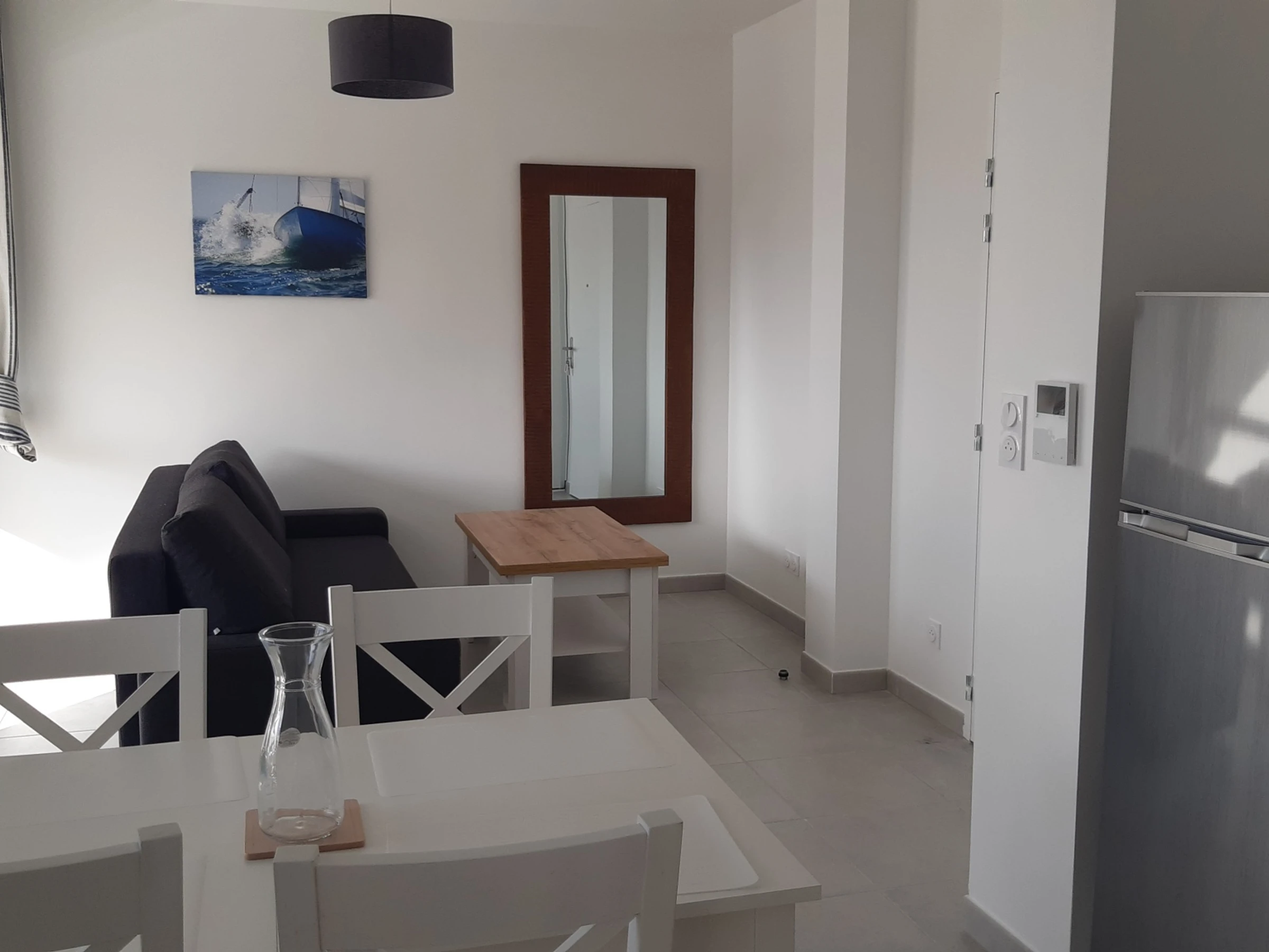 Port Leucate. Résidence Les Voiles Blanches. NOUVEAUTE... Très bel appartement T2 situé au 2ème étage avec ascenseur, exposé S/O. Idéal 4 personnes. Séjour lumineux climatisé (canapé convertible) ouvert sur le coin cuisine équipé (Grd Frigo, Lave Vaisselle, Four) donnant accès à une terrasse (banquette, fauteuils), 1 chambre (lit 140), dressing, 1 salle d'eau-wc. Linge de lit et de toilette fournis lors de votre séjour. Vous disposez d'une place de pkg privée et sécurisée dans la résidence. A 400m de la plage...