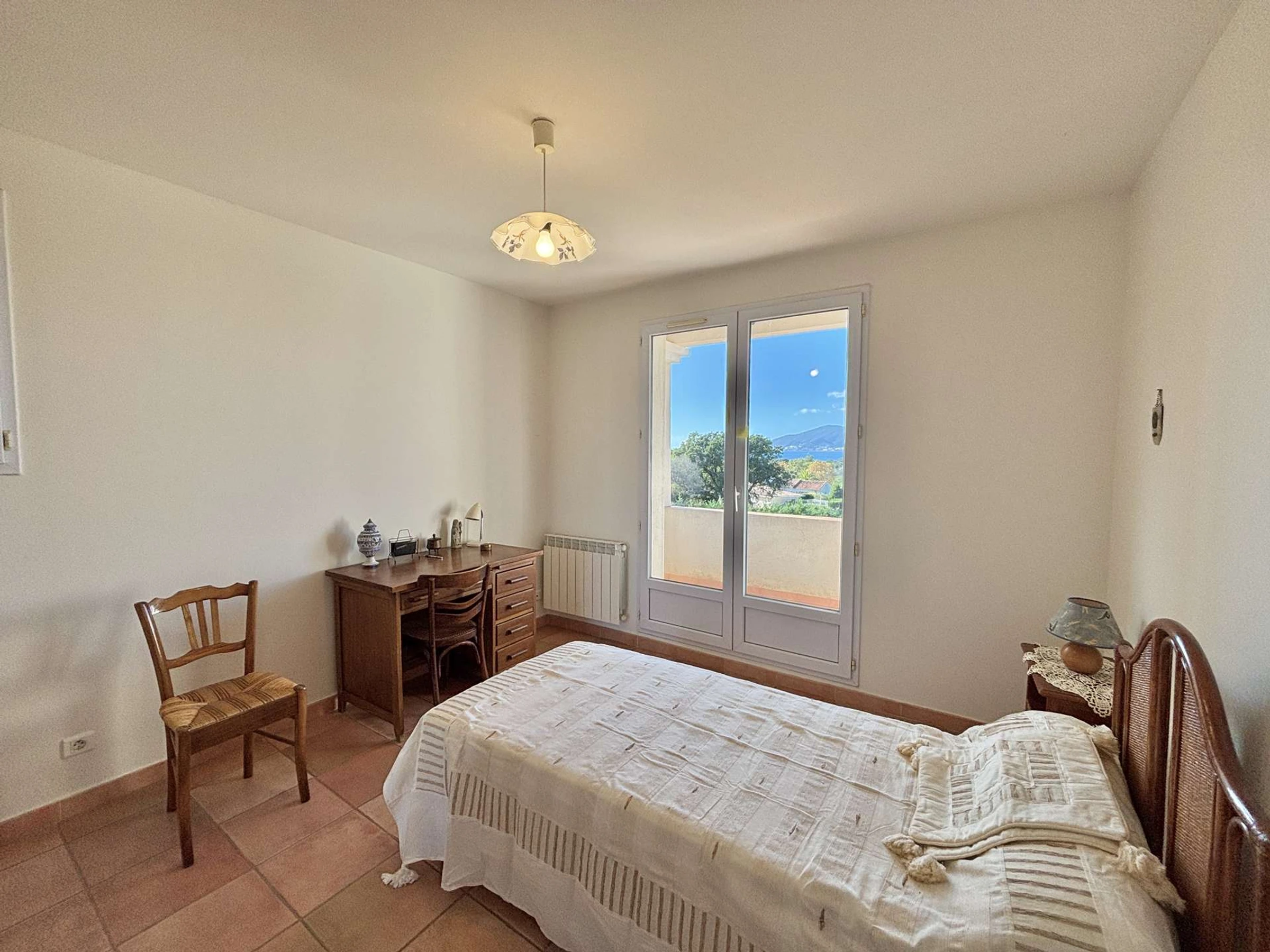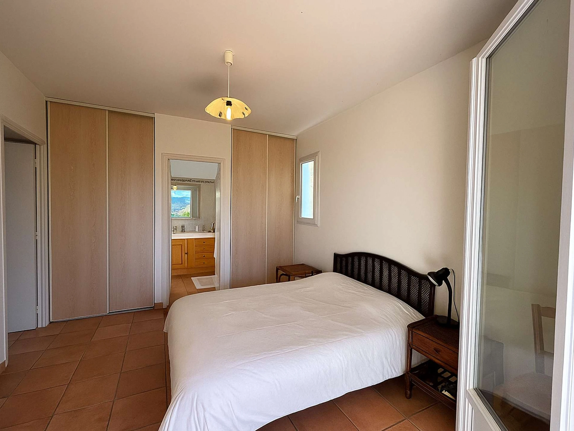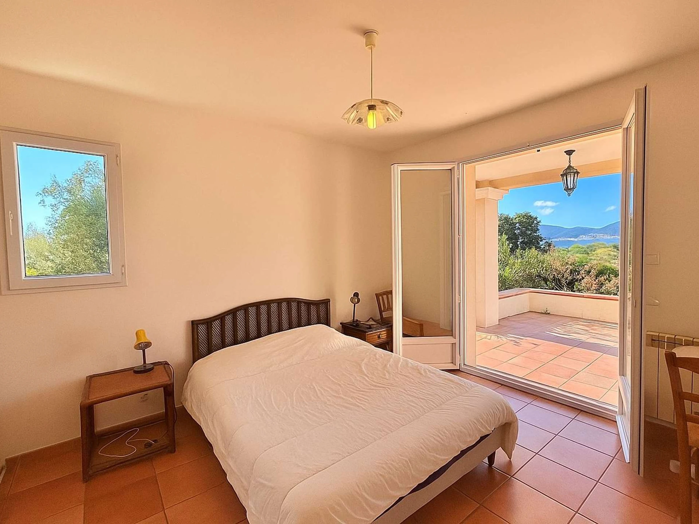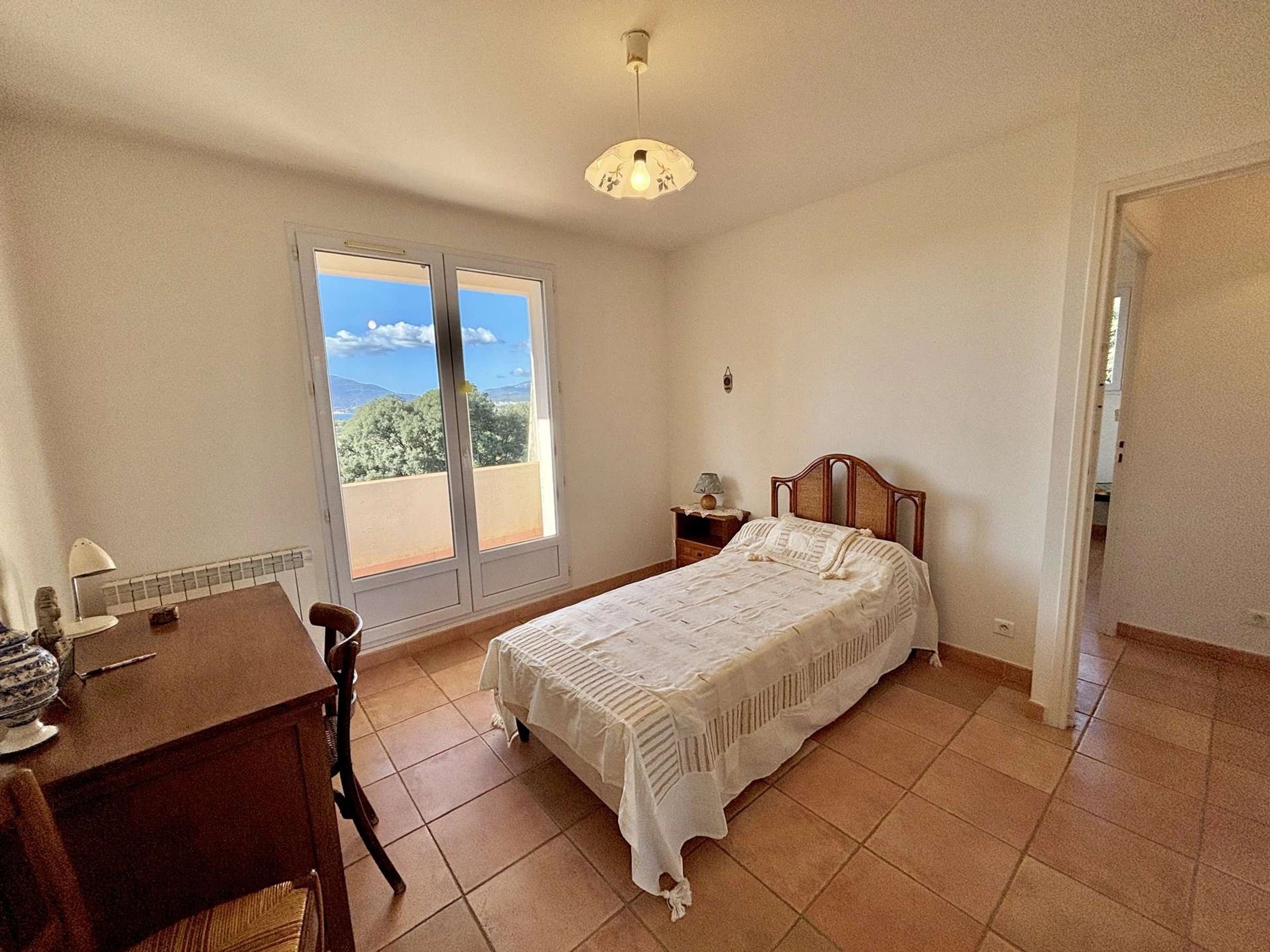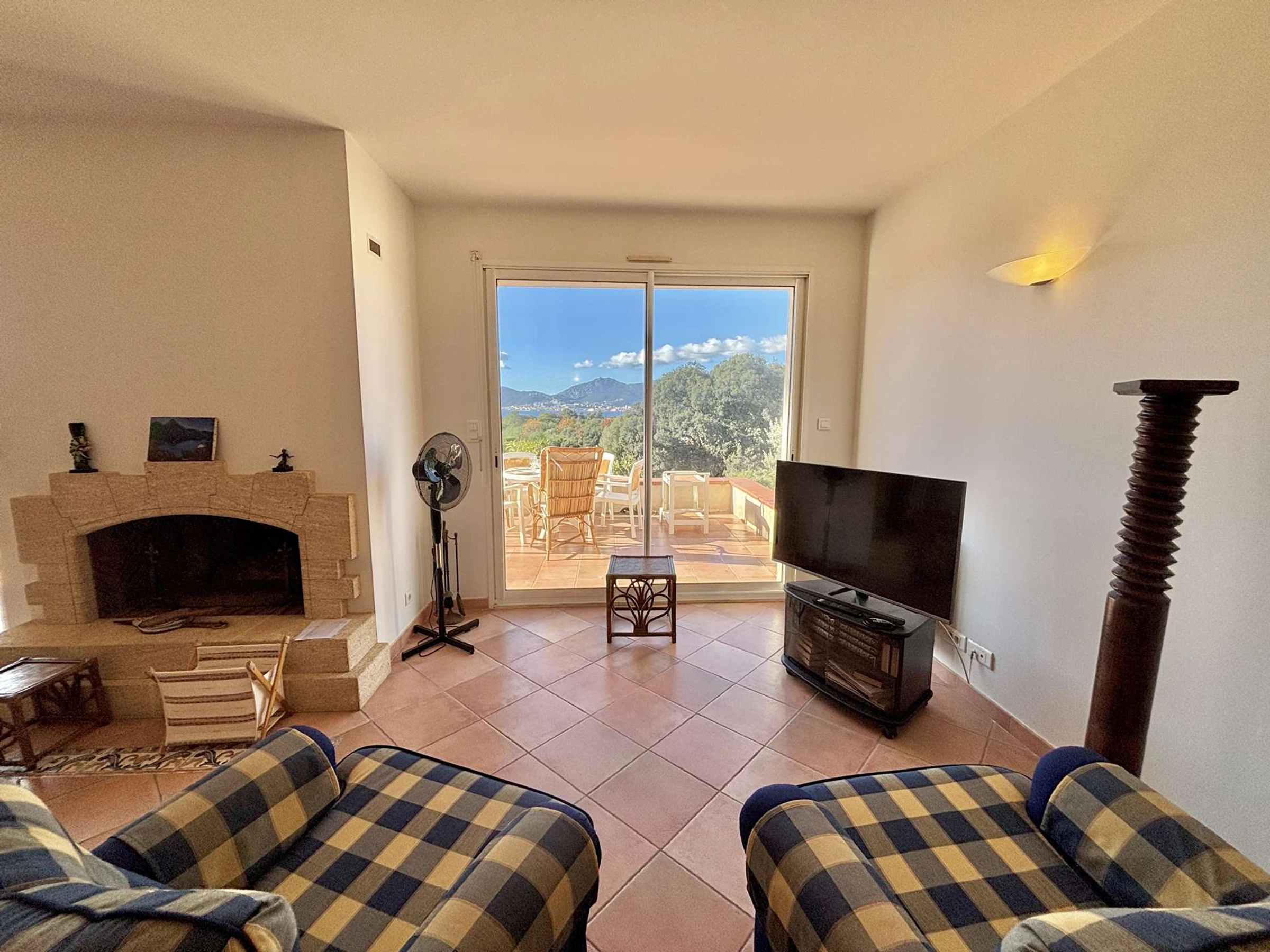 La villa dispose de 5 couchages, elle est composée d'un vaste séjour avec cuisine équipée indépendante, un espace cellier avec lave-vaisselle, une salle à manger, une suite parentale avec salle d'eau et WC, le tout donnant sur la terrasse avec une magnifique vue dégagée donnant sur le jardin et la ville d'Ajaccio. A l'étage supérieur deux chambres donnant sur une terrasse vue mer et sur le jardin : une chambre avec 2 lits simples et une chambre avec 1 lit simple. Une salle d'eau et un wc complètent l'étage.