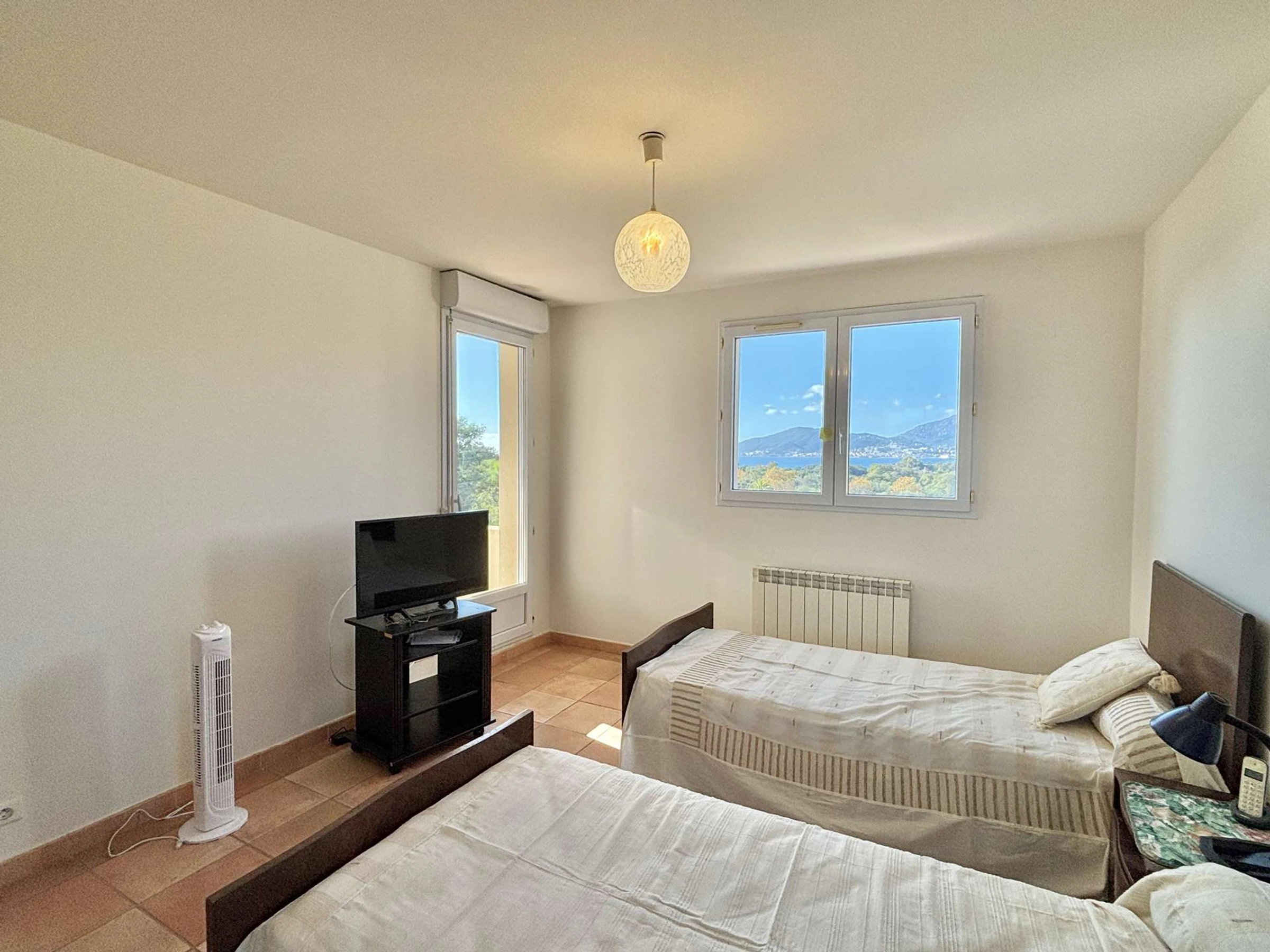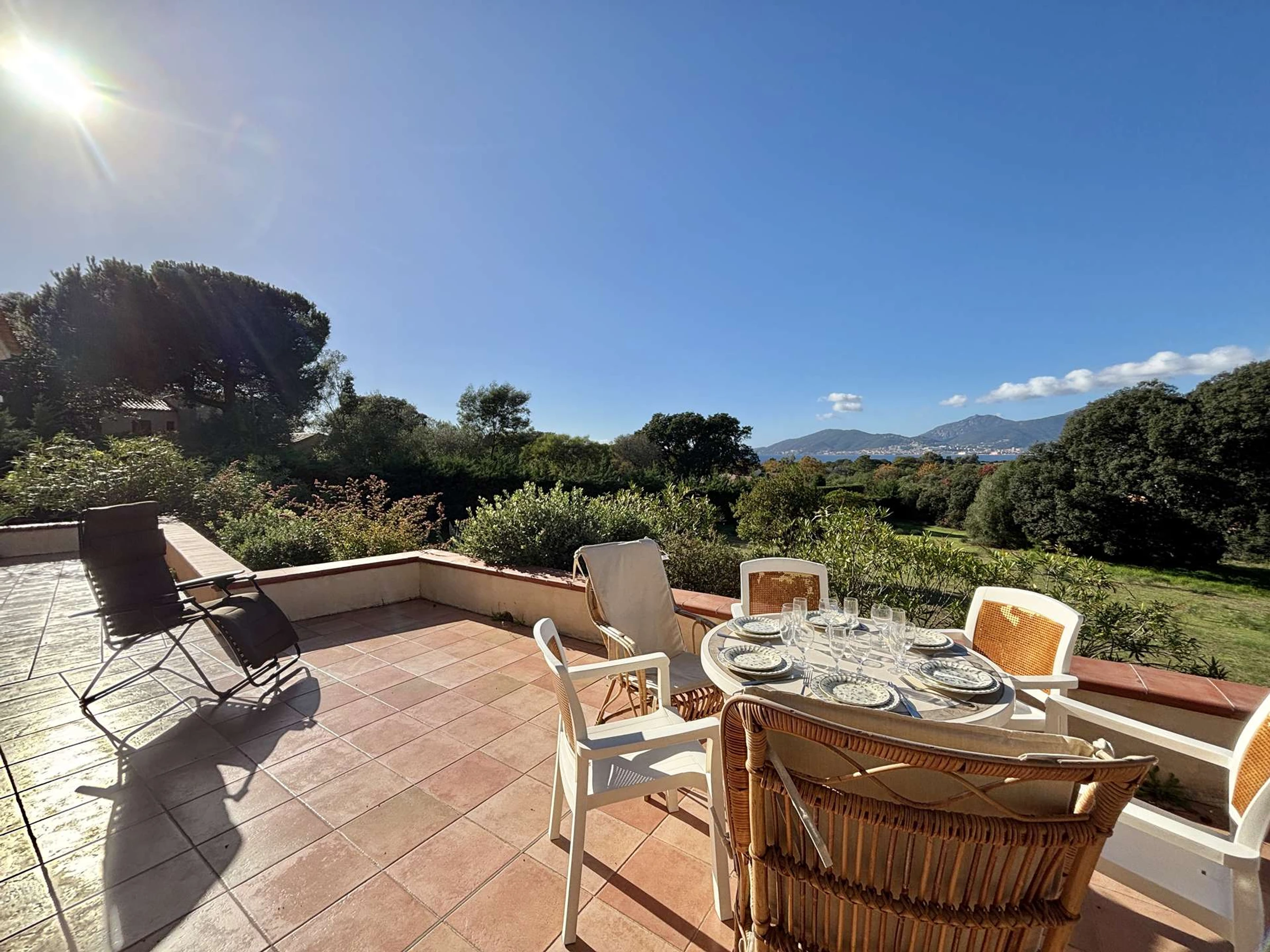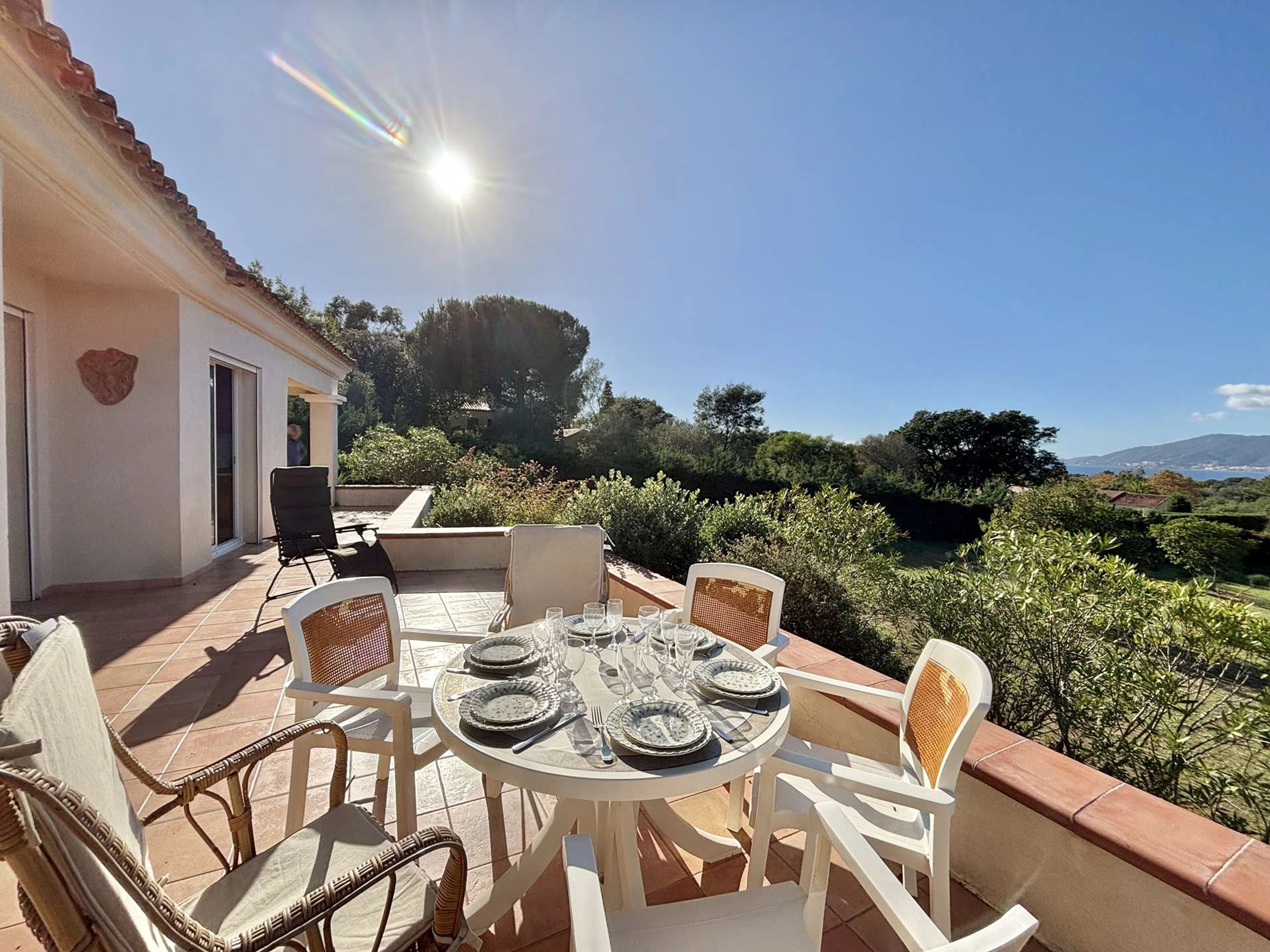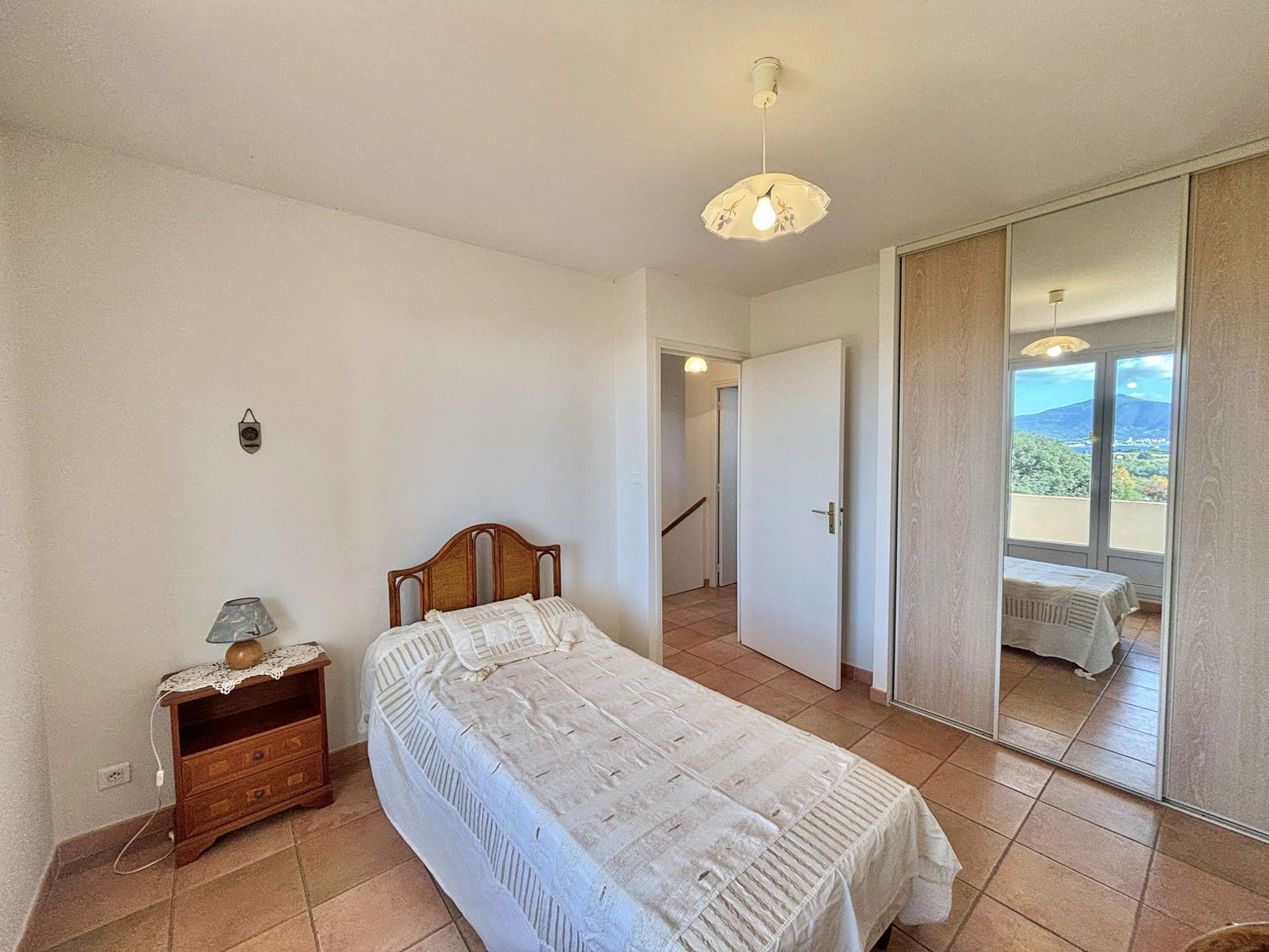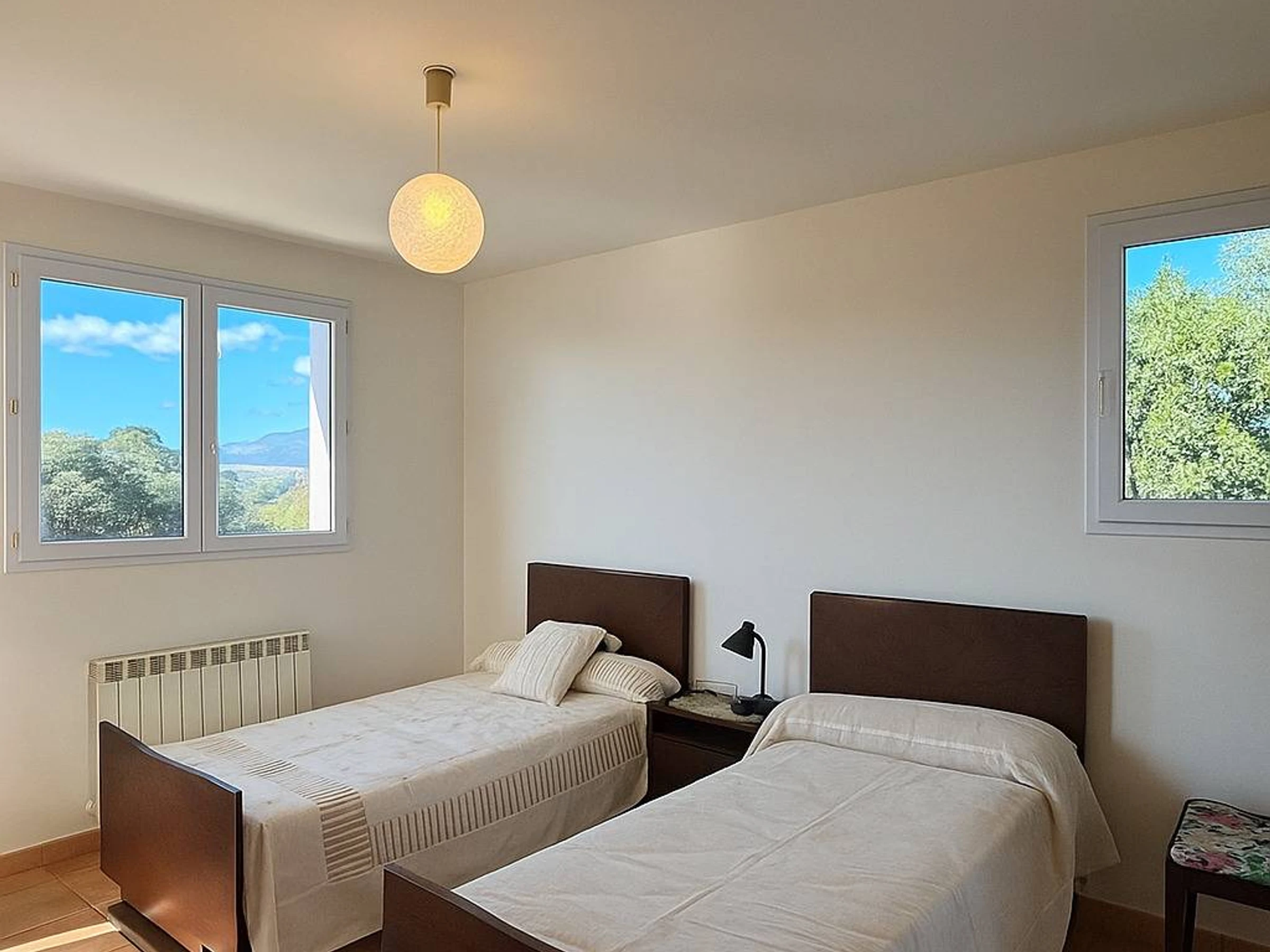 La villa dispose de 5 couchages, elle est composée d'un vaste séjour avec cuisine équipée indépendante, un espace cellier avec lave-vaisselle, une salle à manger, une suite parentale avec salle d'eau et WC, le tout donnant sur la terrasse avec une magnifique vue dégagée donnant sur le jardin et la ville d'Ajaccio. A l'étage supérieur deux chambres donnant sur une terrasse vue mer et sur le jardin : une chambre avec 2 lits simples et une chambre avec 1 lit simple. Une salle d'eau et un wc complètent l'étage.