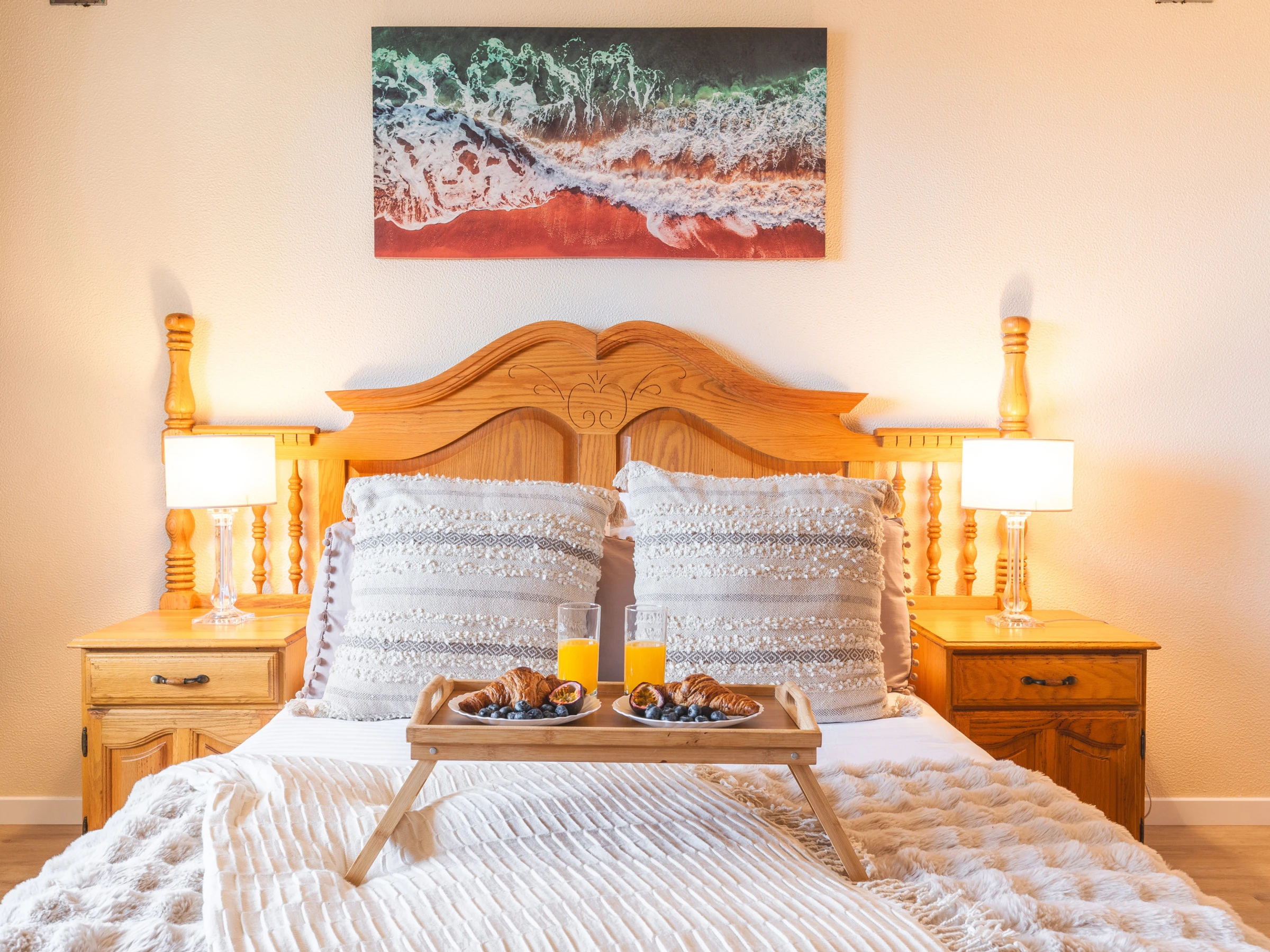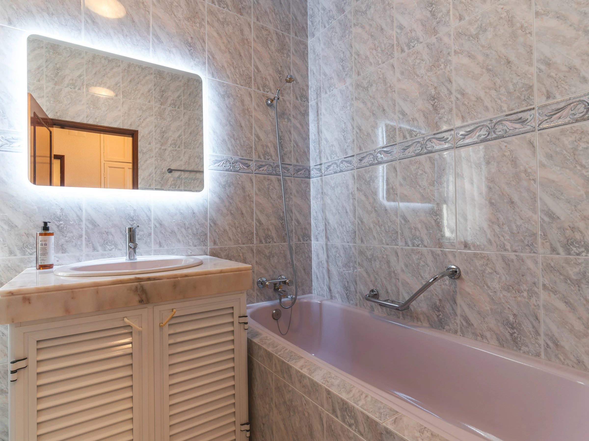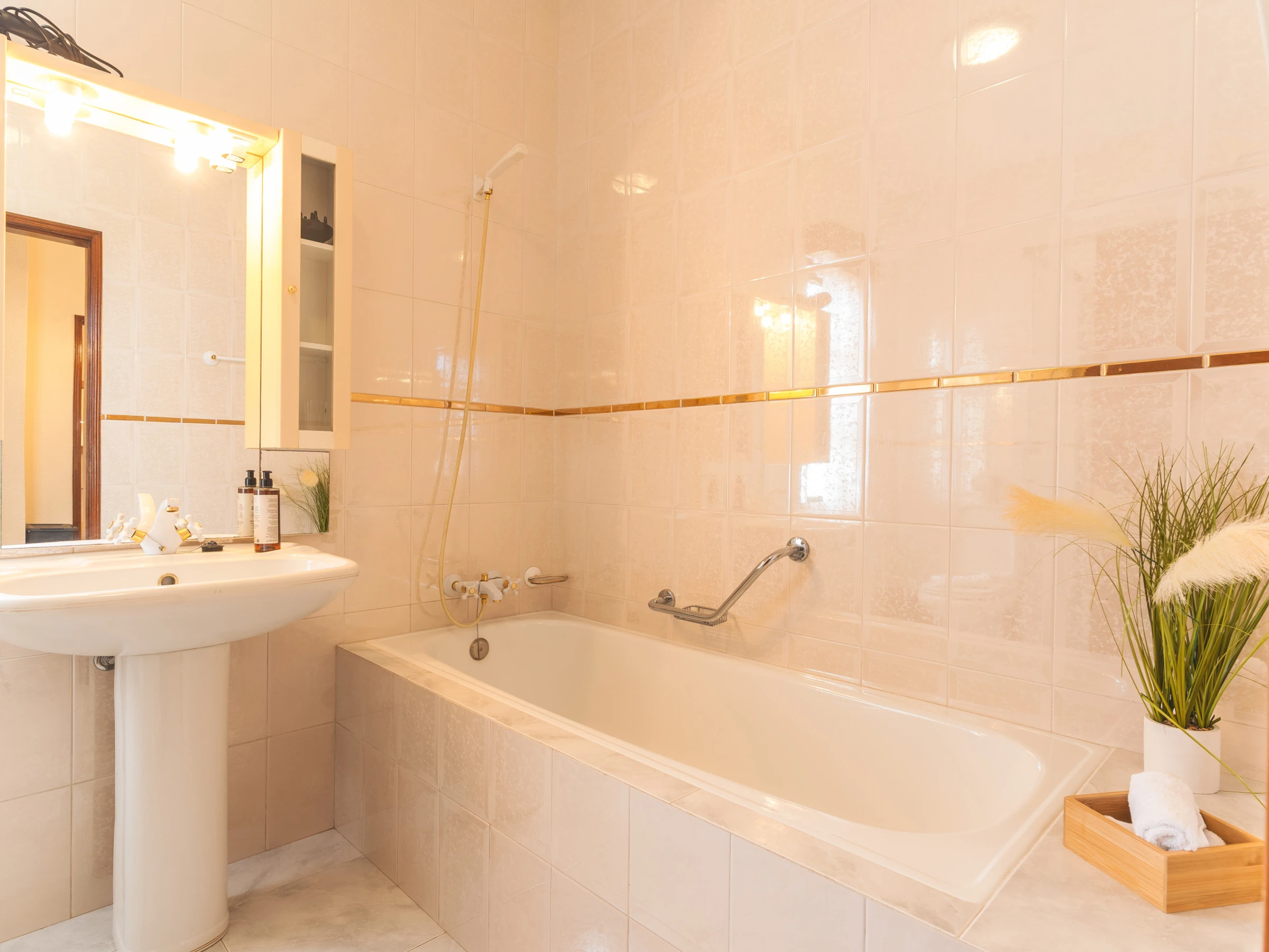La maison dispose de quatre chambres avec lits doubles et de quatre salles de bains : trois avec douche et une avec WC. La cuisine est entièrement équipée avec réfrigérateur, congélateur, four, micro-ondes, plaques de cuisson, vaisselle et ustensiles de base. Machine à laver et sèche-cheveux disponibles, ainsi qu’une smart TV avec box dans le salon.