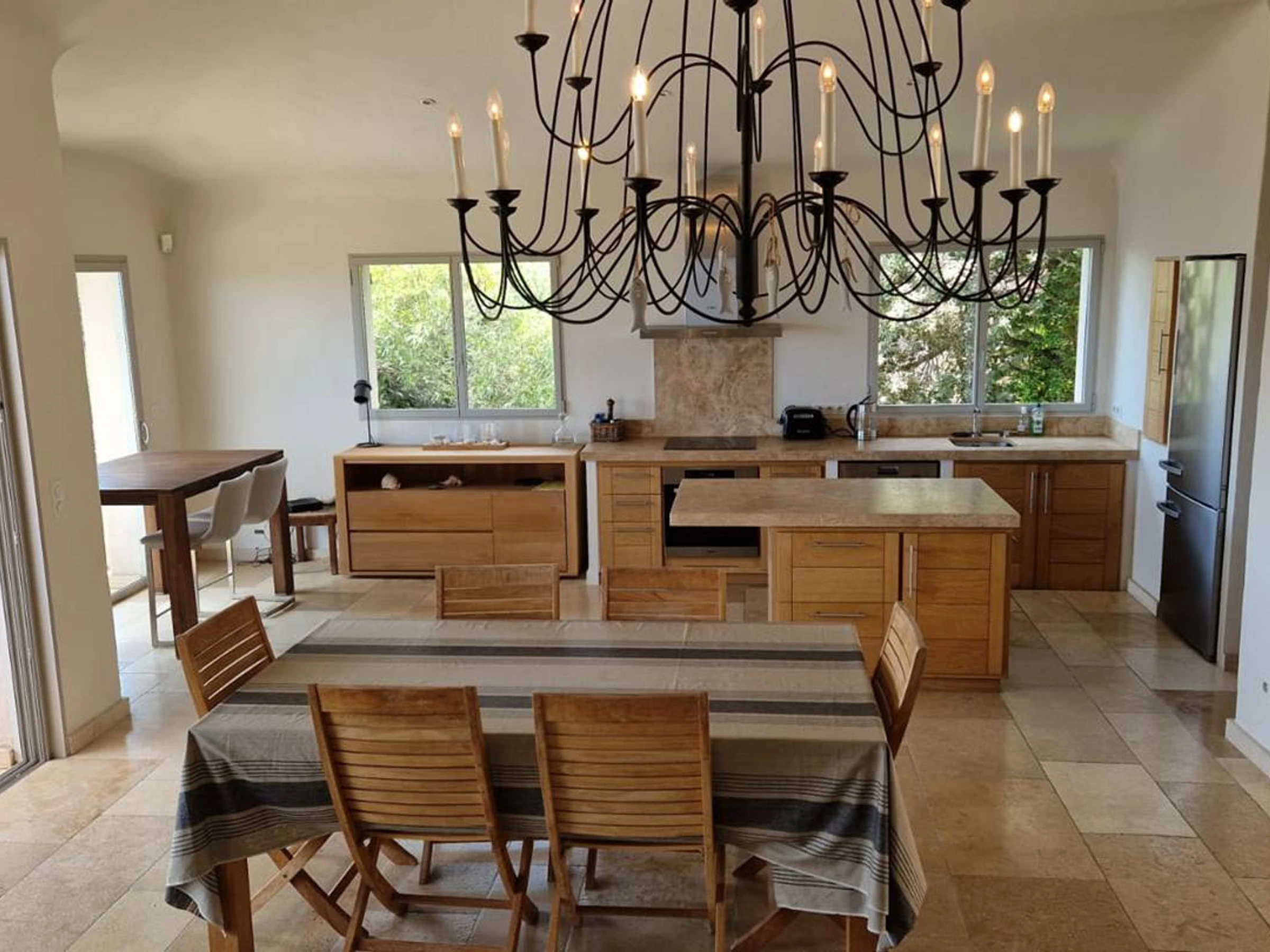 -Rez de chaussée: Séjour traversant avec cuisine américaine équipée, lave-vaisselle, plaque de cuisson vitrocéramique, four électrique, combiné frigo-congélateur, cafetière ILLY, grille pain, bouilloire... le tout ouvrant sur une terrasse couverte côté nord avec un barbecue fixe et salle à manger, et une terrasse côté sud avec magnifique vue sur le golfe et port de Porto-Vecchio. Un joli salon avec banquette maçonnée et TV.