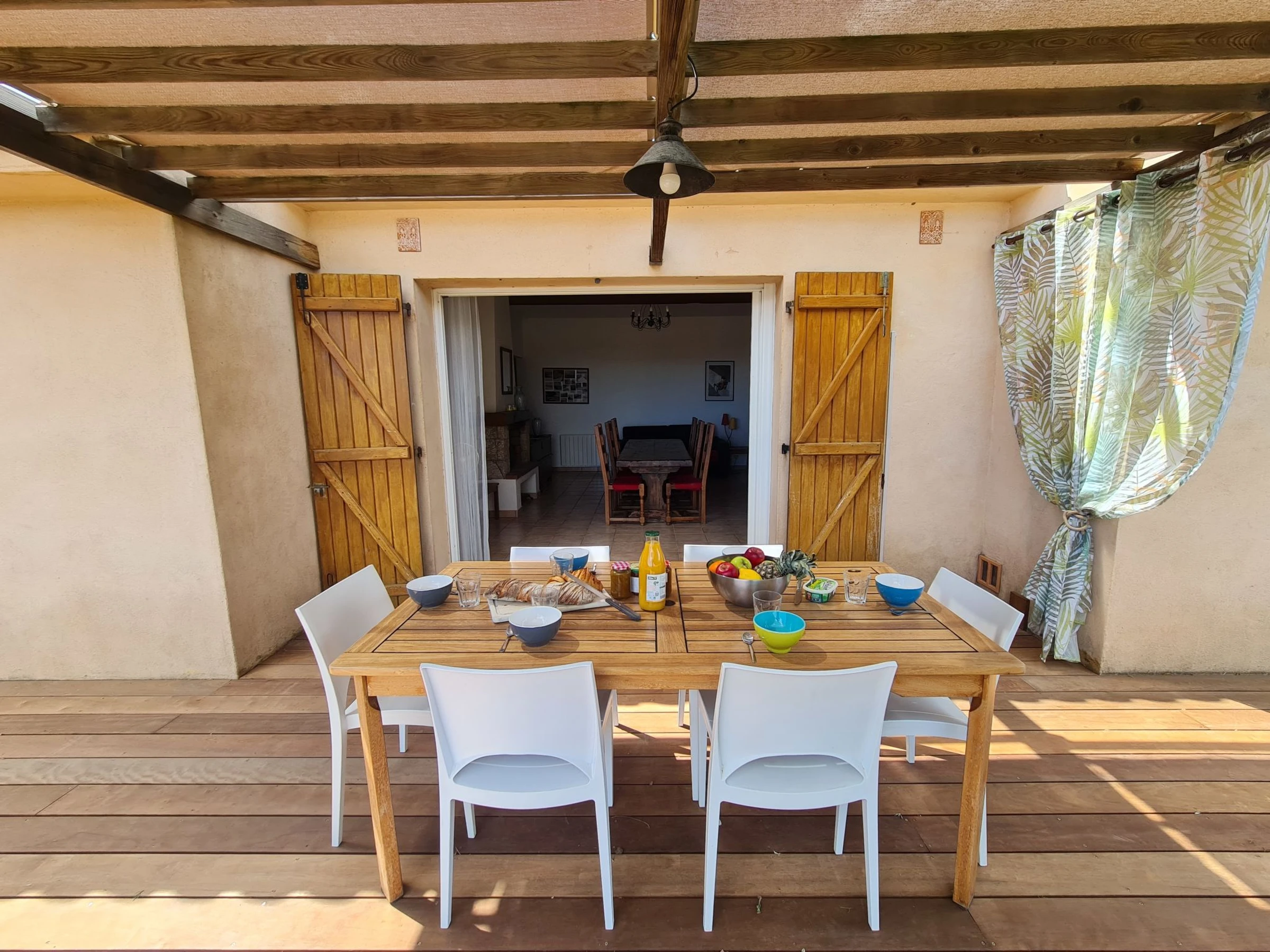 "La Girelle", maison 4 pièces 90 m2, situation sud-est. Séjour/salle à manger avec baie vitrée avec TV (écran plat). Sortie sur la terrasse. 2 chambres, chaque chambre avec: 1 grand-lit (140 cm, longueur 190 cm), bain/WC et air-conditionné. 1 chambre d'enfants avec 1 lit (90 cm, longueur 190 cm), 1 x 2 lits superposés (90 cm, longueur 190 cm), douche/WC et air-conditionné. Cuisine (lave-vaisselle, 4 plaques à induction, bouilloire électrique, cafetière électrique, combiné micro-ondes). WC séparé. Chauffage électrique, air-conditionné. Terrasse 50 m2, situation sud-est. Meubles de terrasse. Très belle vue sur la mer. A disposition: lave-linge. Internet (Connexion WIFI, gratuit). Veuillez noter: logement non-fumeur. Maximum 1 animal/ chien autorisé. Détecteur de fumée. Annonce d'un particulier (art 155, IV du CGI). [hidden]