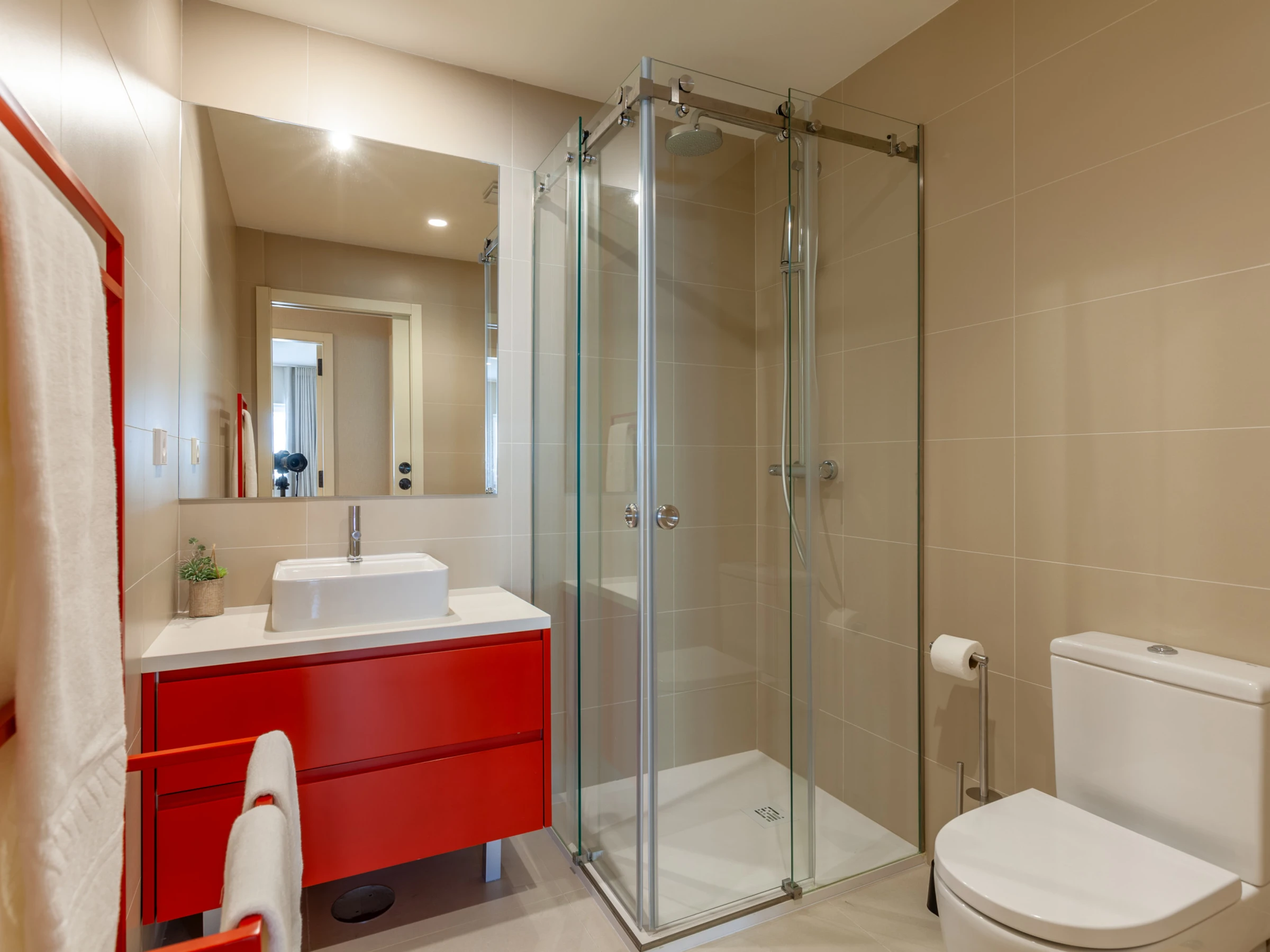 Vous pouvez également vous détendre dans nos deux salles de bain spacieuses avec une grande douche. Élevez votre style de vie avec les commodités exclusives que nous offrons, y compris des articles de toilette Rituals, sèche-cheveux, peignoir et serviette de piscine.