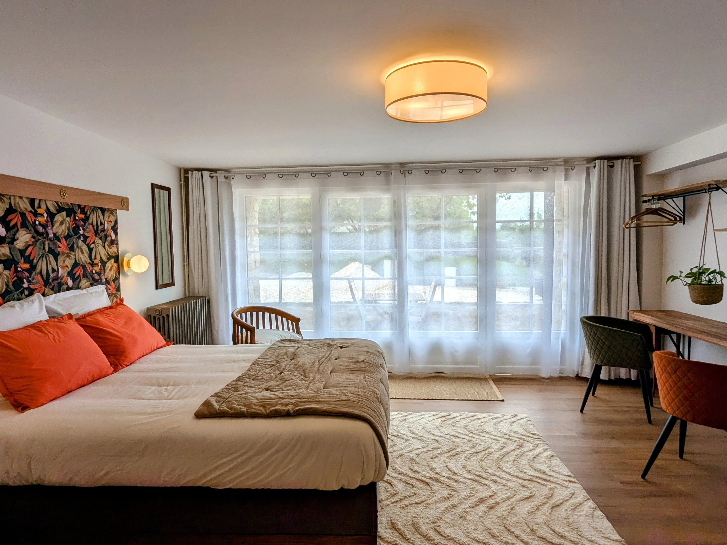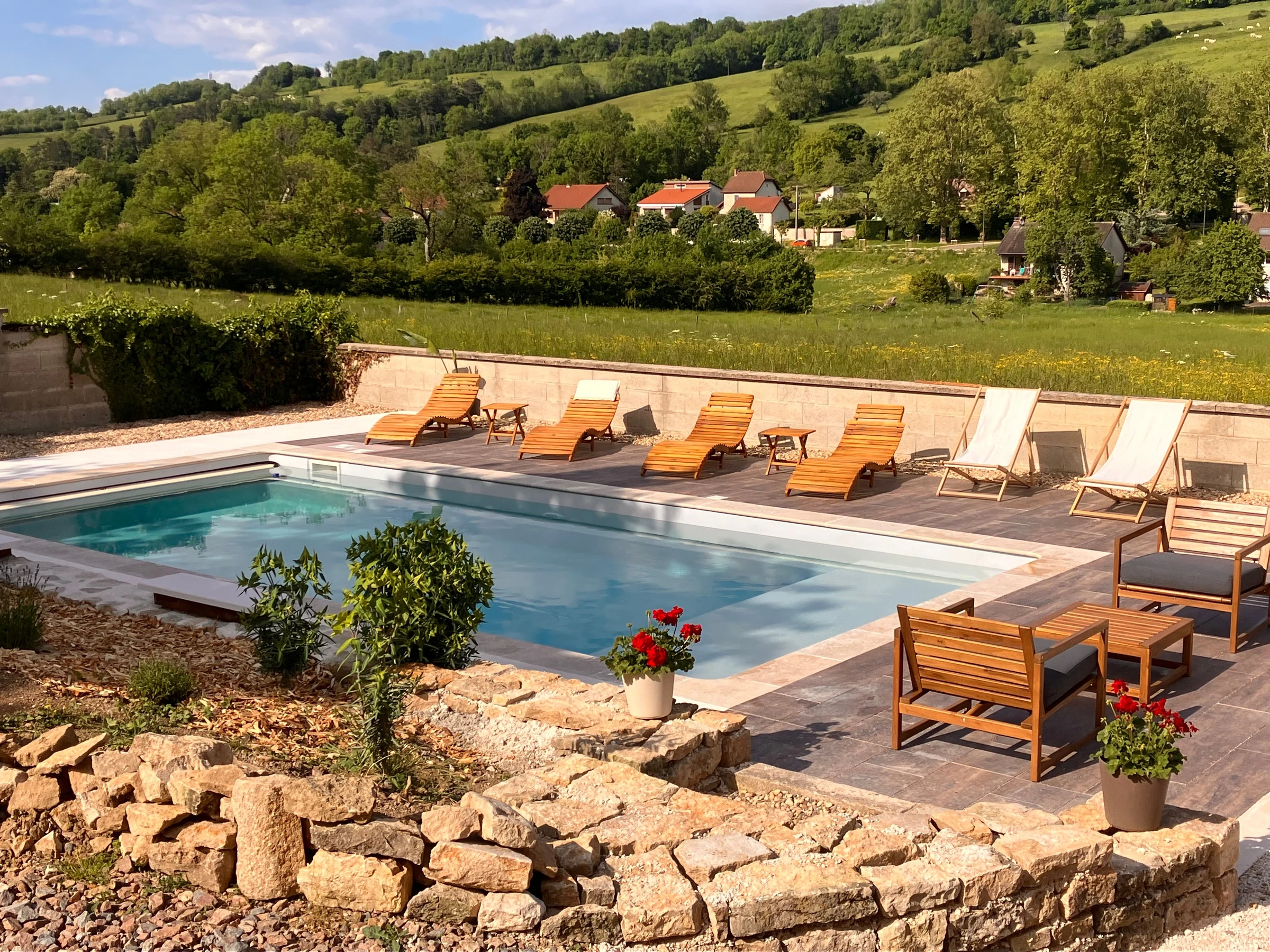 Piscine de 8,5 X 4 m, chauffée par panneaux solaires de mi-mai à mi-septembre (selon conditions météorologiques), transats...