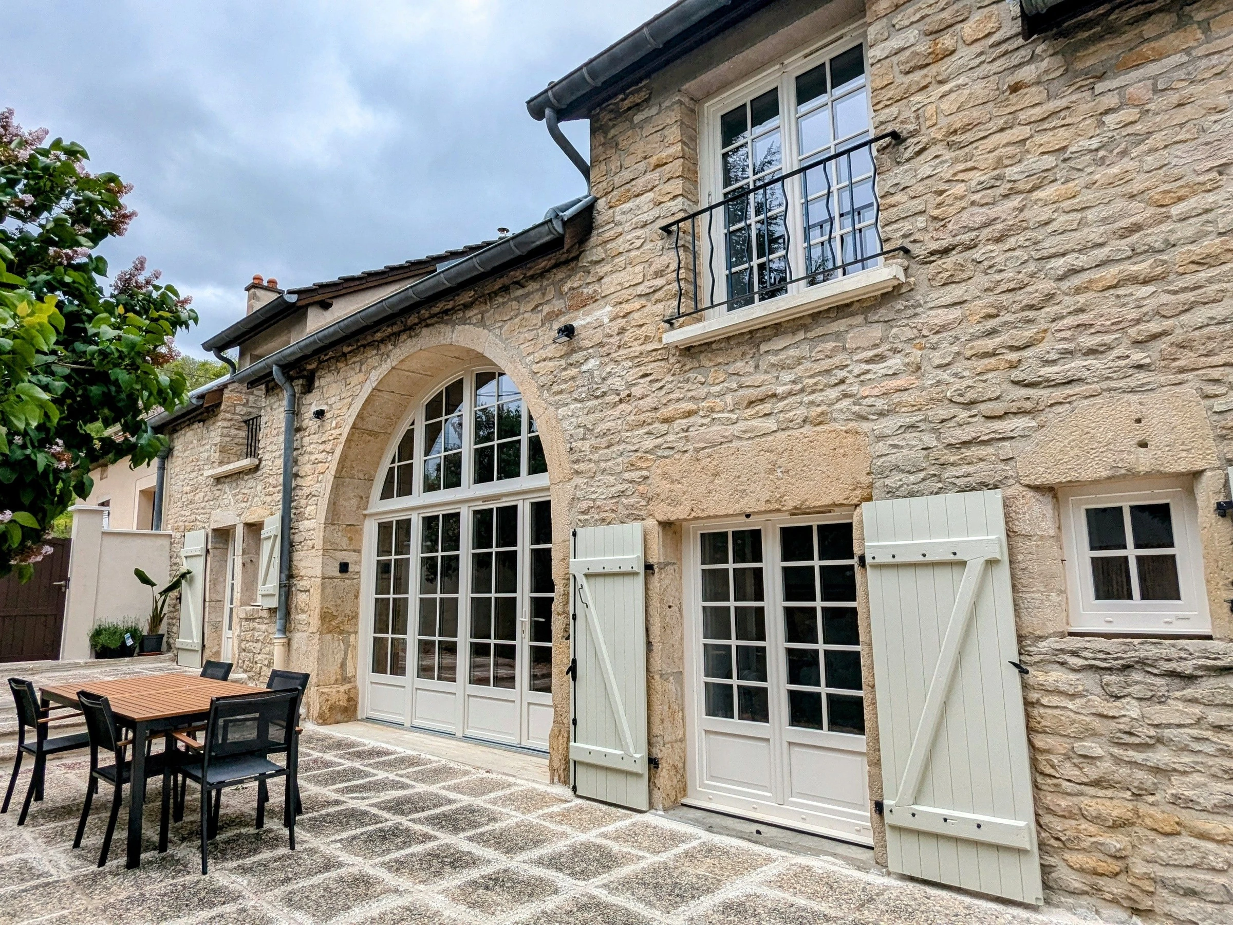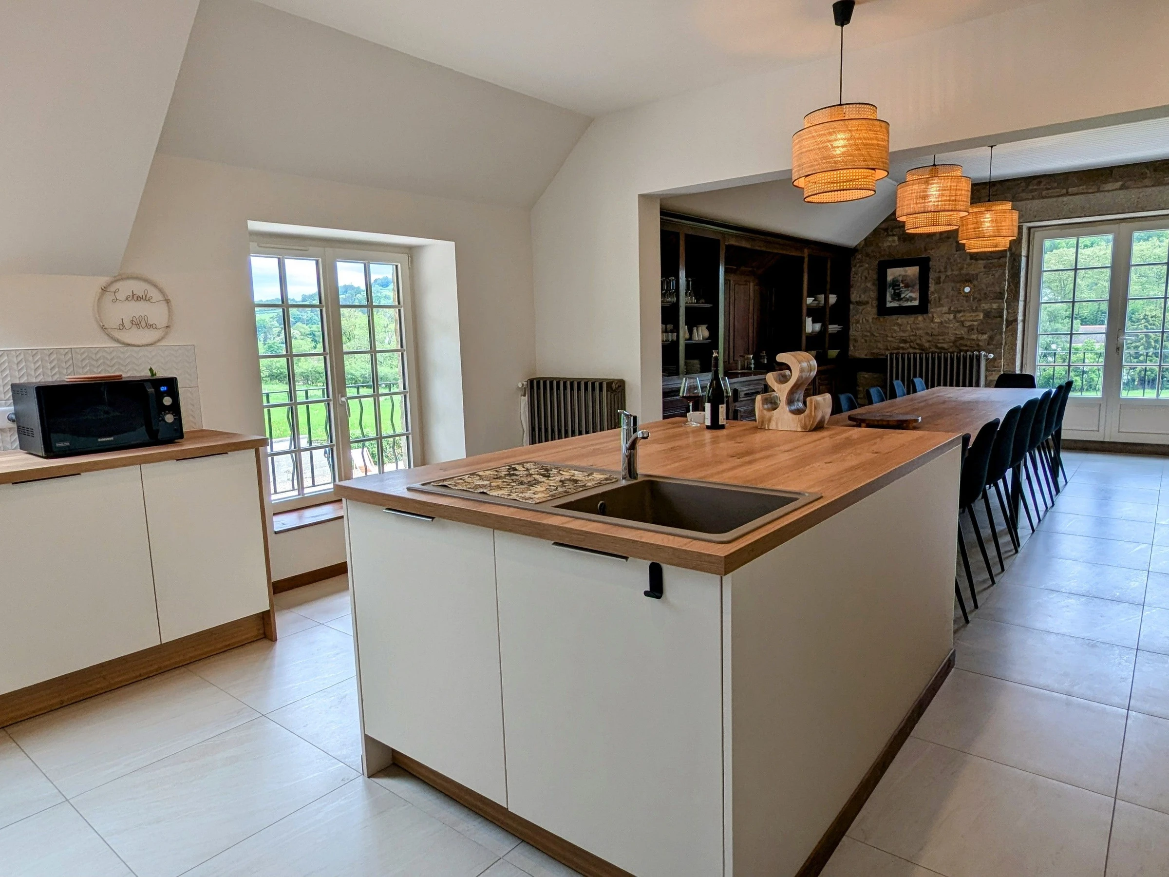 A 2h30 de Paris et 1h30 de Lyon, Pouilly-en-Auxois, destination nature et patrimoine, se situe au sommet du canal de Bourgogne et aux sources de l'Ouche et de l'Armançon. Dans une petite ville calme avec tous commerces, au coeur de l'Auxois, le gîte "l'Etoile d'Alba", grande maison rénovée et décorée avec goût, vous propose : au rez-de-chaussée : vaste entrée avec bibliothèque, 1 chambre avec 1 lit de 160 cm + 1 lit de 90 cm, avec accès direct à une terrasse privative, avec jolie vue sur la piscine, 1 chambre avec 4 lits de 90 cm, 1 chambre avec 1 lit de 160 cm + 1 lit de 90 cm, avec accès direct à l'avant de la maison, 2 WC indépendants, 2 salles d'eau, 1 buanderie avec lave-linge, sèche-linge. A l'étage : 1 grande pièce de vie avec cuisine moderne entièrement équipée, salle à manger et salon, TV, wifi, enceinte connectée. Cheminée décorative non fonctionnelle. 1 WC indépendant. 2 chambres avec 2 lits de 90 cm jumelables (ou séparables) chacune, 1 salle de bain avec baignoire + douche italienne, 1 WC indépendant. Grande terrasse avec salon de jardin, parasol, barbecue.