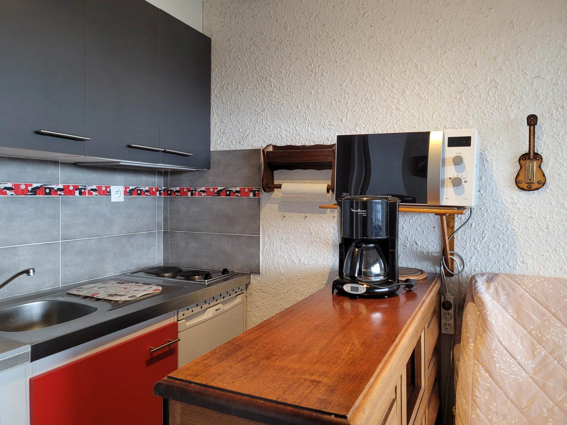 * Coin cuisine : réfrigérateur, 2 plaques électriques, micro-ondes, cafetière ;