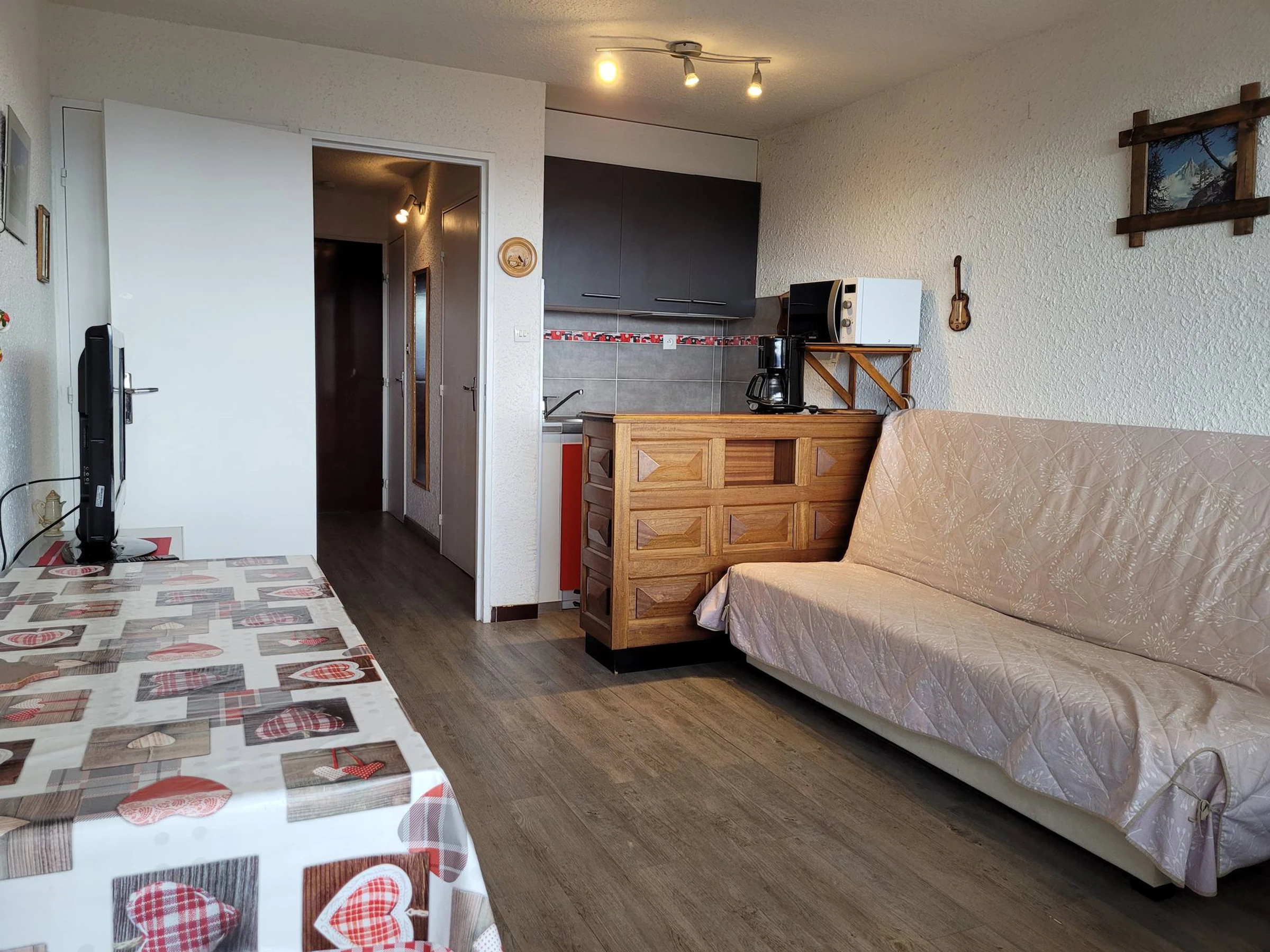 Studio pour 2 à 4 personnes, 24 m² environ. Situé au niveau 2 vallée soit 2ème sous-sol par ascenseur. Exposé côté Nord / Est avec balcon et une très jolie vue sur la vallée.