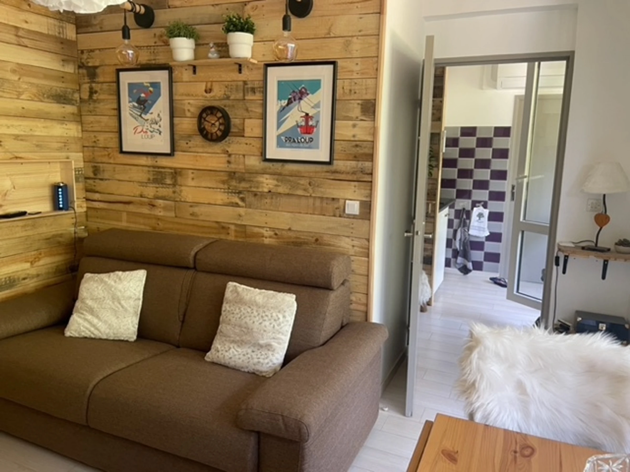 * Séjour : 1 canapé convertible en 160 matelas blutex 17cm, TV grand écran, accès balcon ;