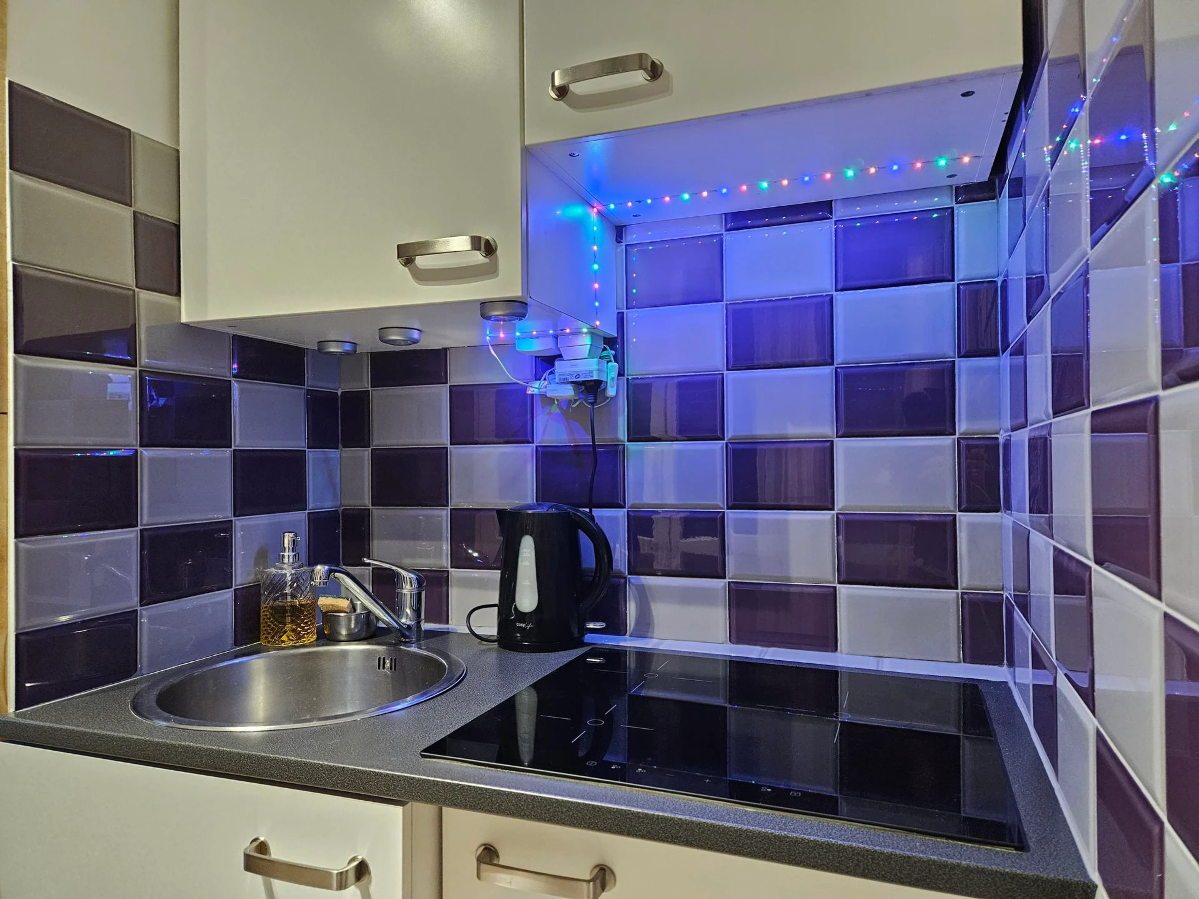 * Kitchenette : réfrigérateur, 3 plaques induction, four micro-ondes, cafetière dolce Gusto, bouilloire, appareil à raclette et pierrade;