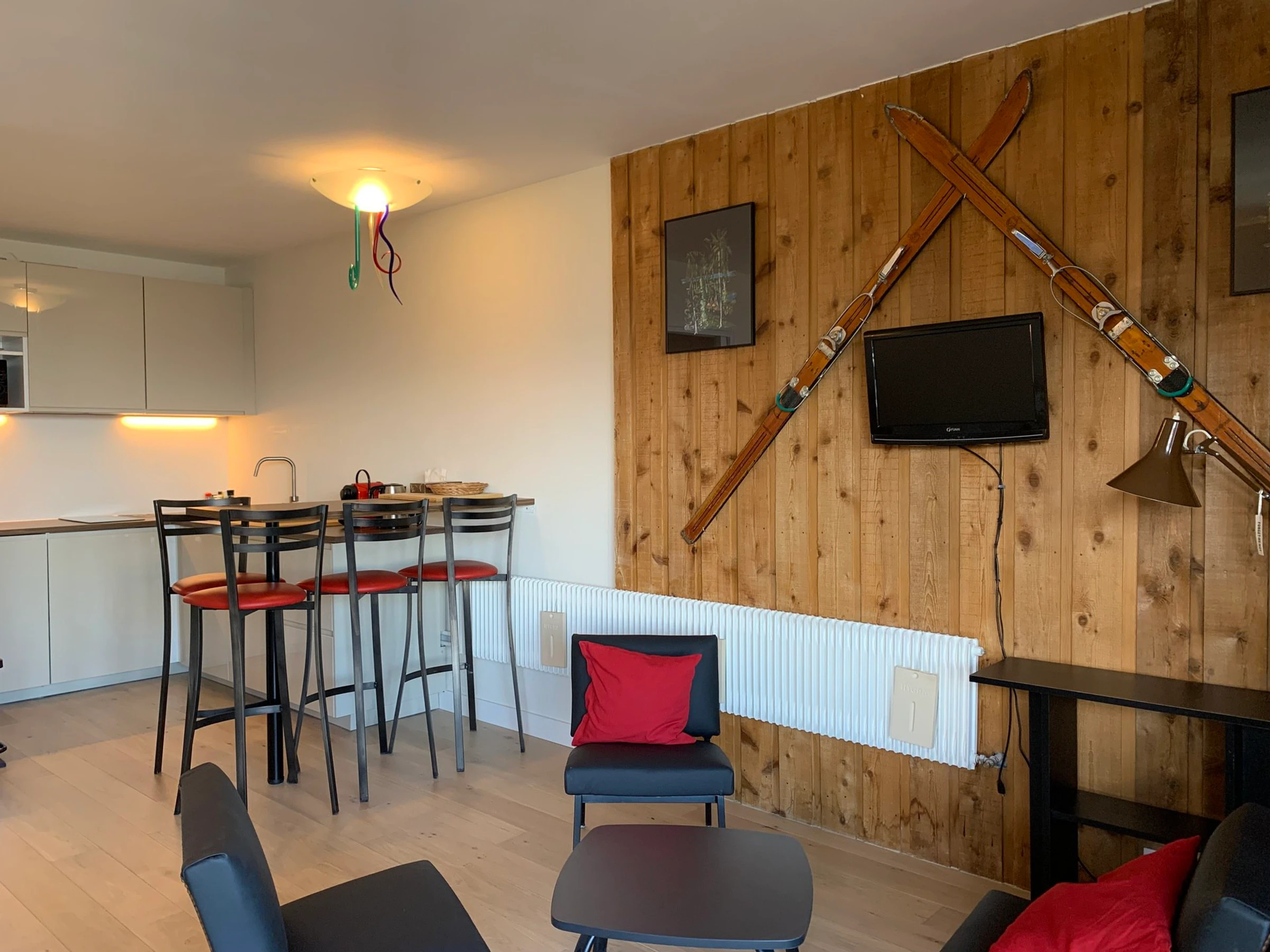 COMMENTAIRES : Studio très agréable et lumineux, idéalement situé près des pistes et de la galerie commerciale. Superbe vue sur la vallée et la montagne. Box à skis.