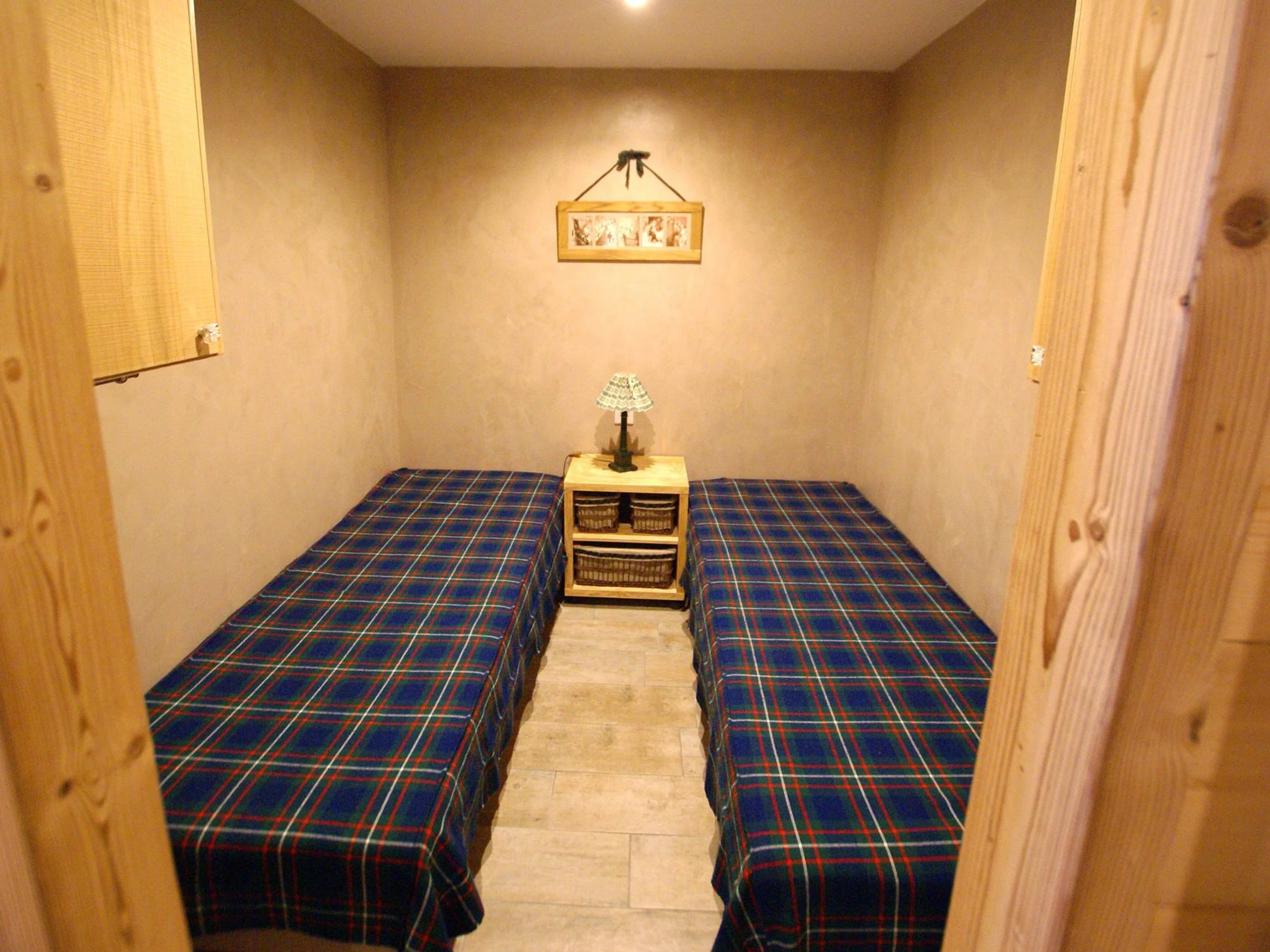 Une entrée, un coin cabine avec deux lits en 80 cm, un séjour avec un convertible pour deux personnes, une télévision, une cuisine américaine équipée - réfrigérateur, lave-vaisselle, lave-linge séchant, four, micro-ondes, plaques de cuisson- une salle d’eau avec W-C, une chambre avec un lit double en 140 cm, un balcon, un box à skis au rdc de l’immeuble.