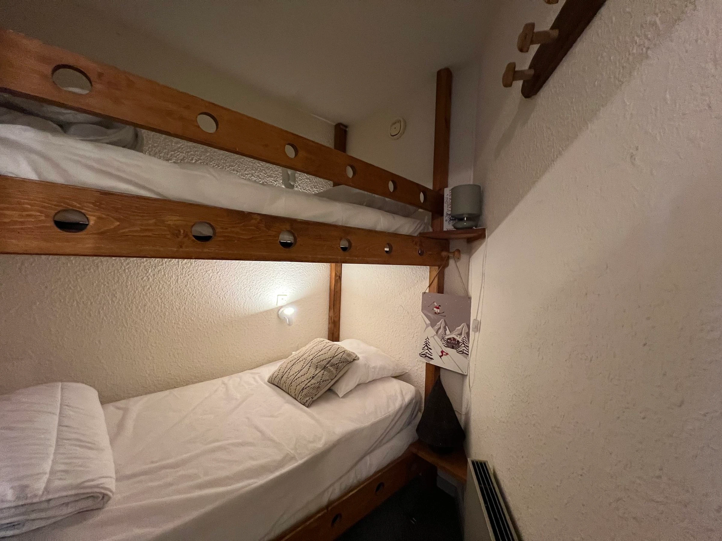 * Cabine : 1 ensemble de lits superposés 90x190, placard, couettes ;