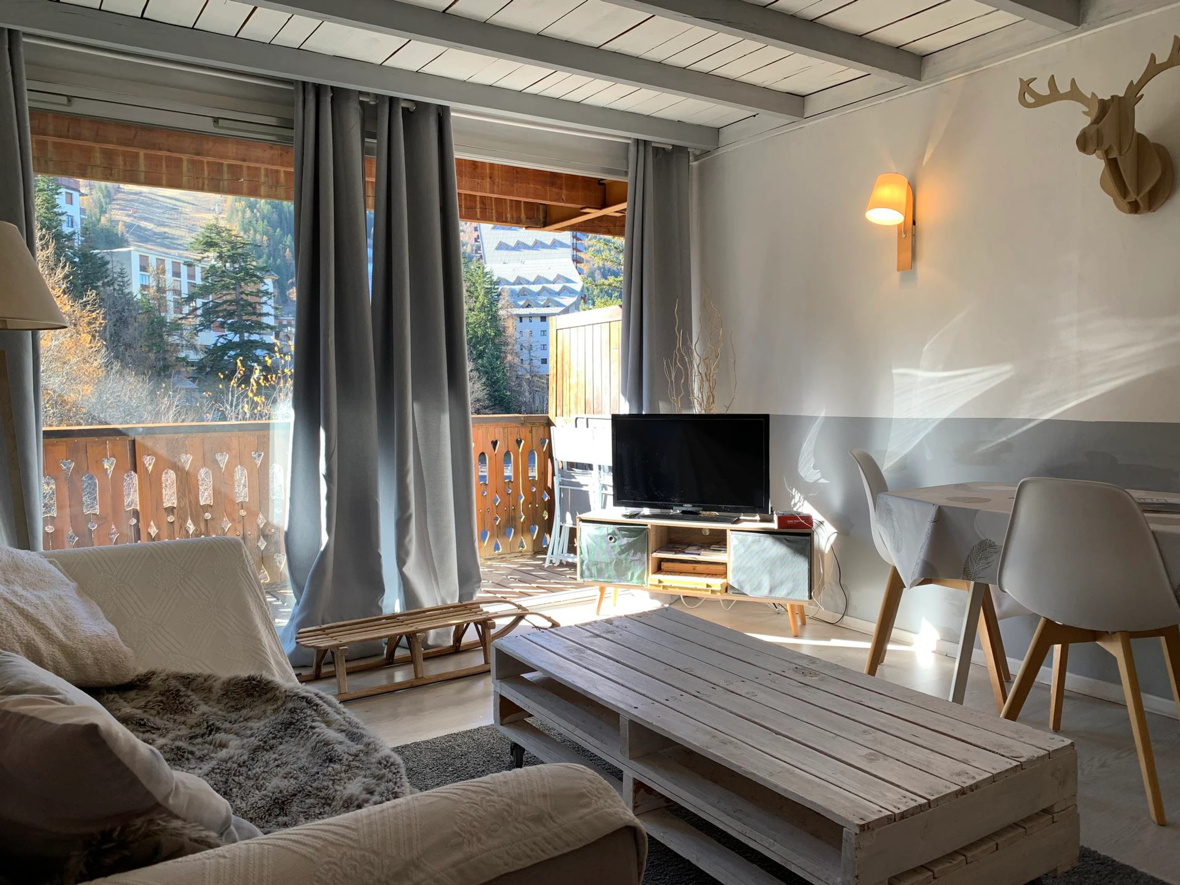 * Séjour : 1 canapé rapido 140x200, coin repas, télévision, accès balcon, spacieux ;