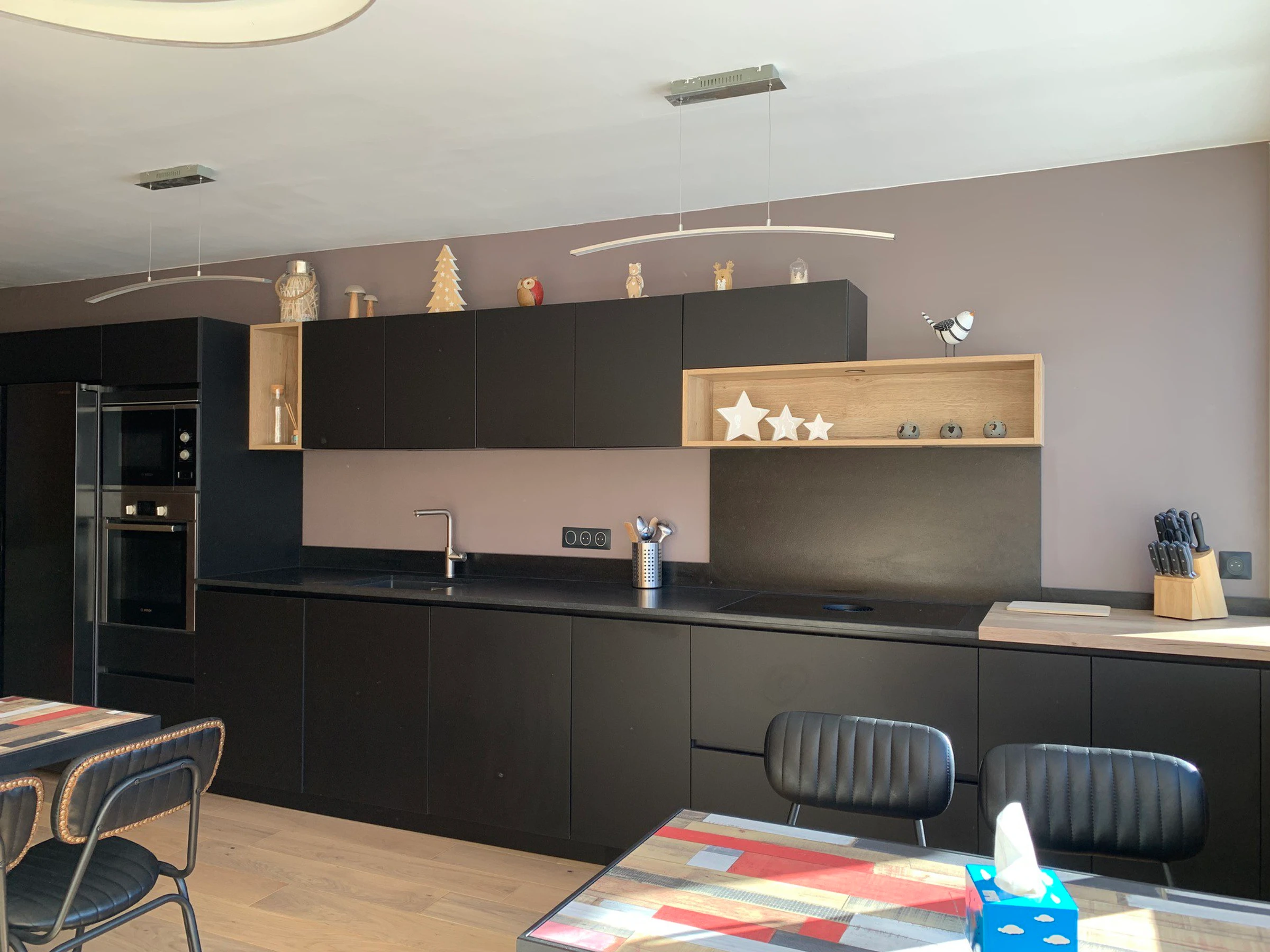 * Belle cuisine équipée ouvert sur le séjour: plaques à induction, four, micro-ondes, lave-vaisselle, réfrigérateur américain, cafetière Nespresso, grille-pain, bouilloire, presse agrume, lave linge séchant, nombreux placards ;