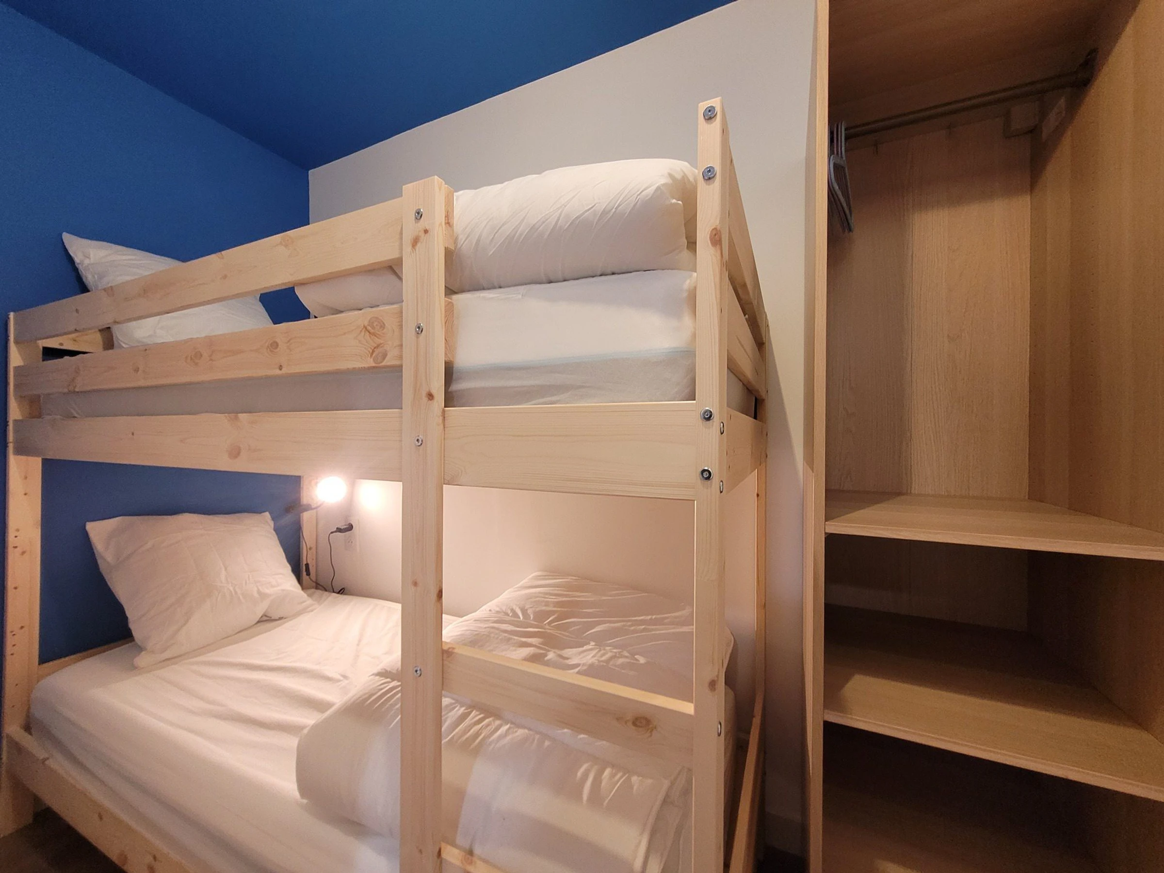 * Coin montagne indépendant lit superposé, couettes, rangement;