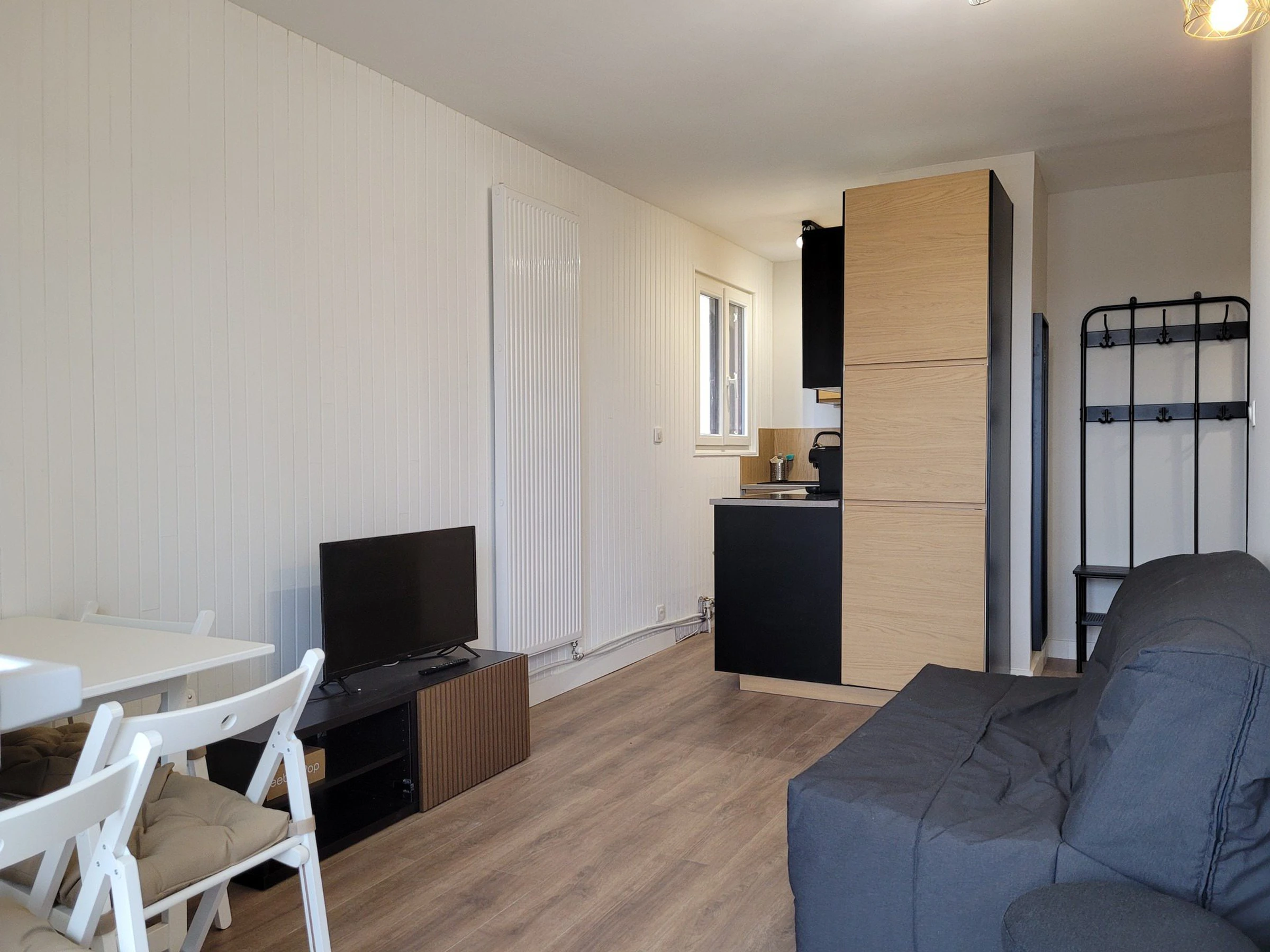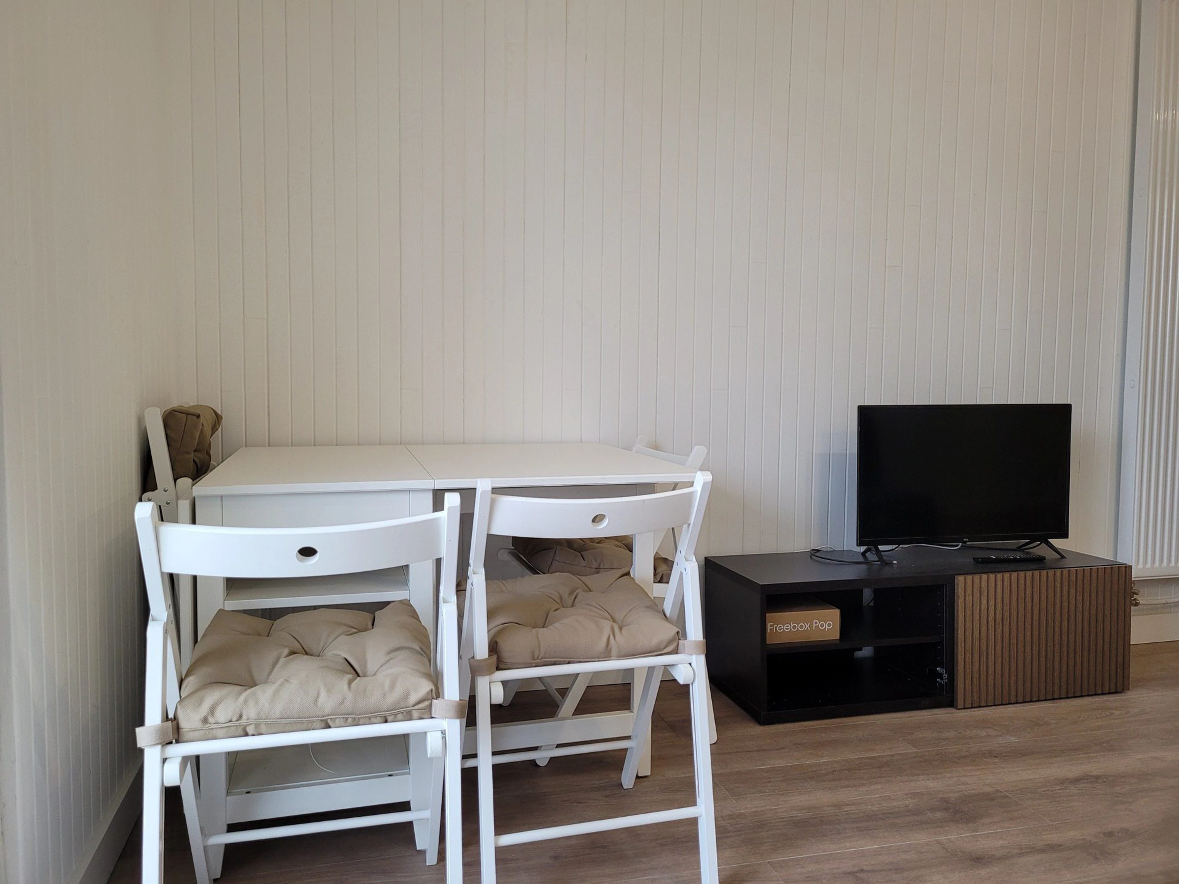 * Séjour : 1 canapé BZ, TV, rangements, coin repas, accès balcon ;