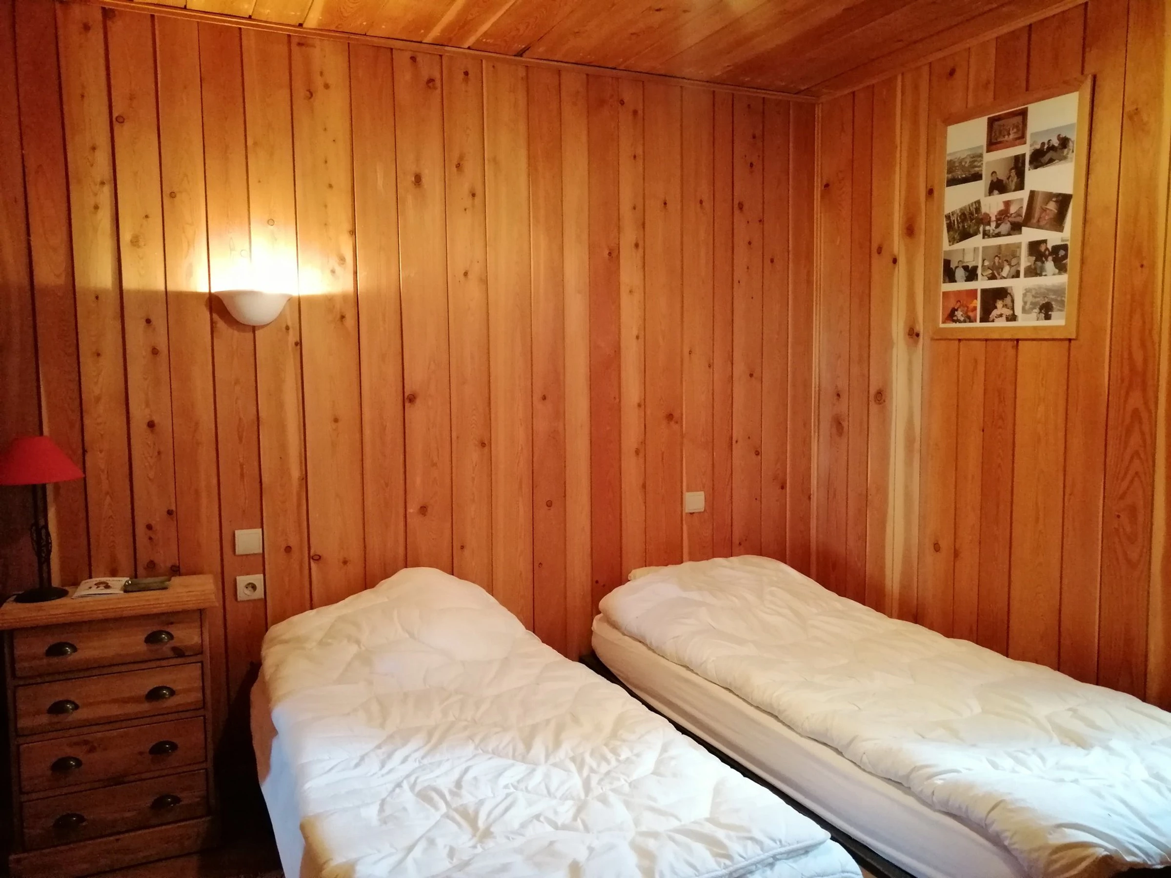 * Chambre: 2 lits 1 place, couettes ;