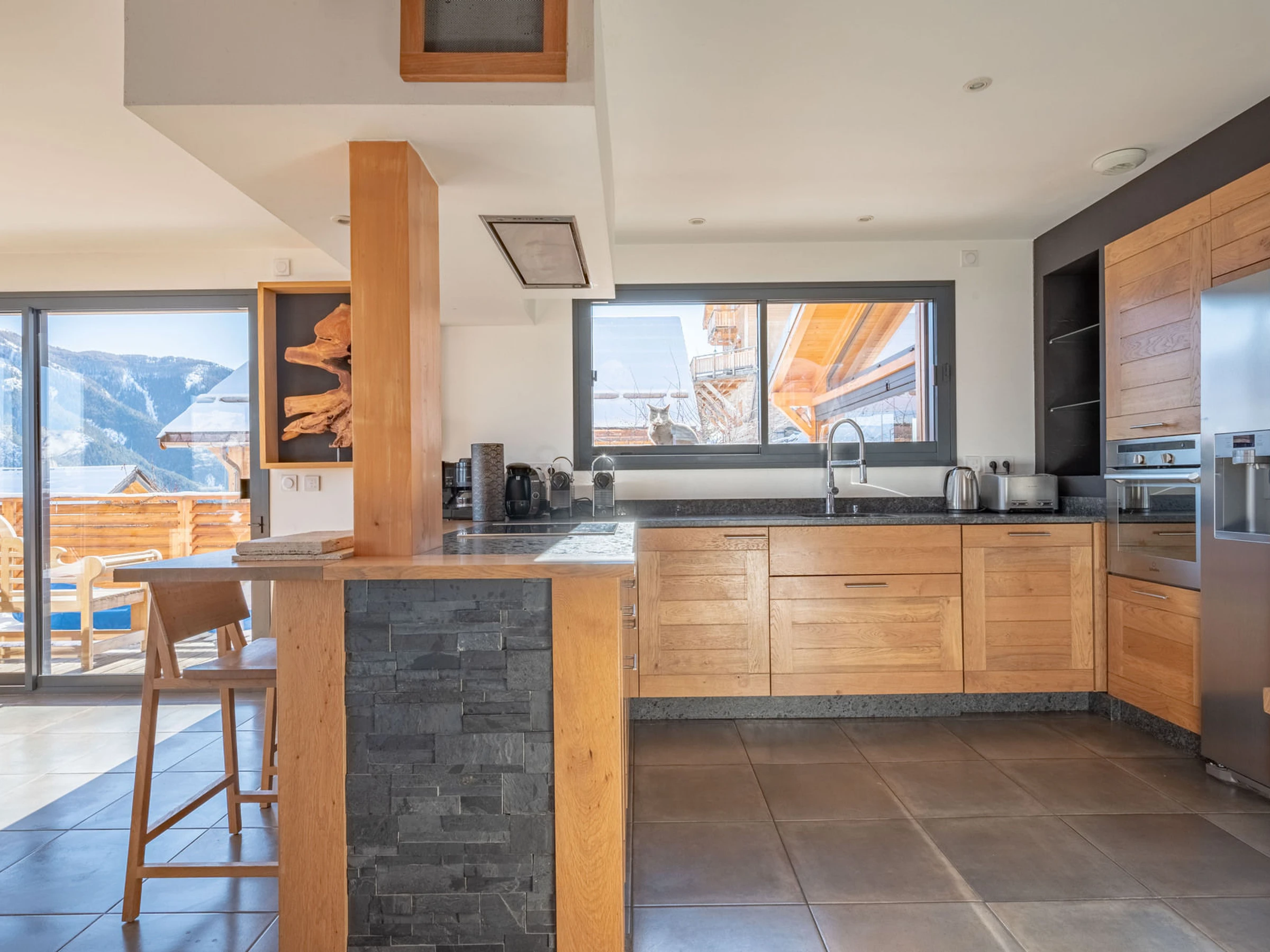 * Cuisine américaine : lave-vaisselle, micro-ondes, plaques induction, four, réfrigérateur américain/congélateur, cafetière Nespresso et Tassimo ;