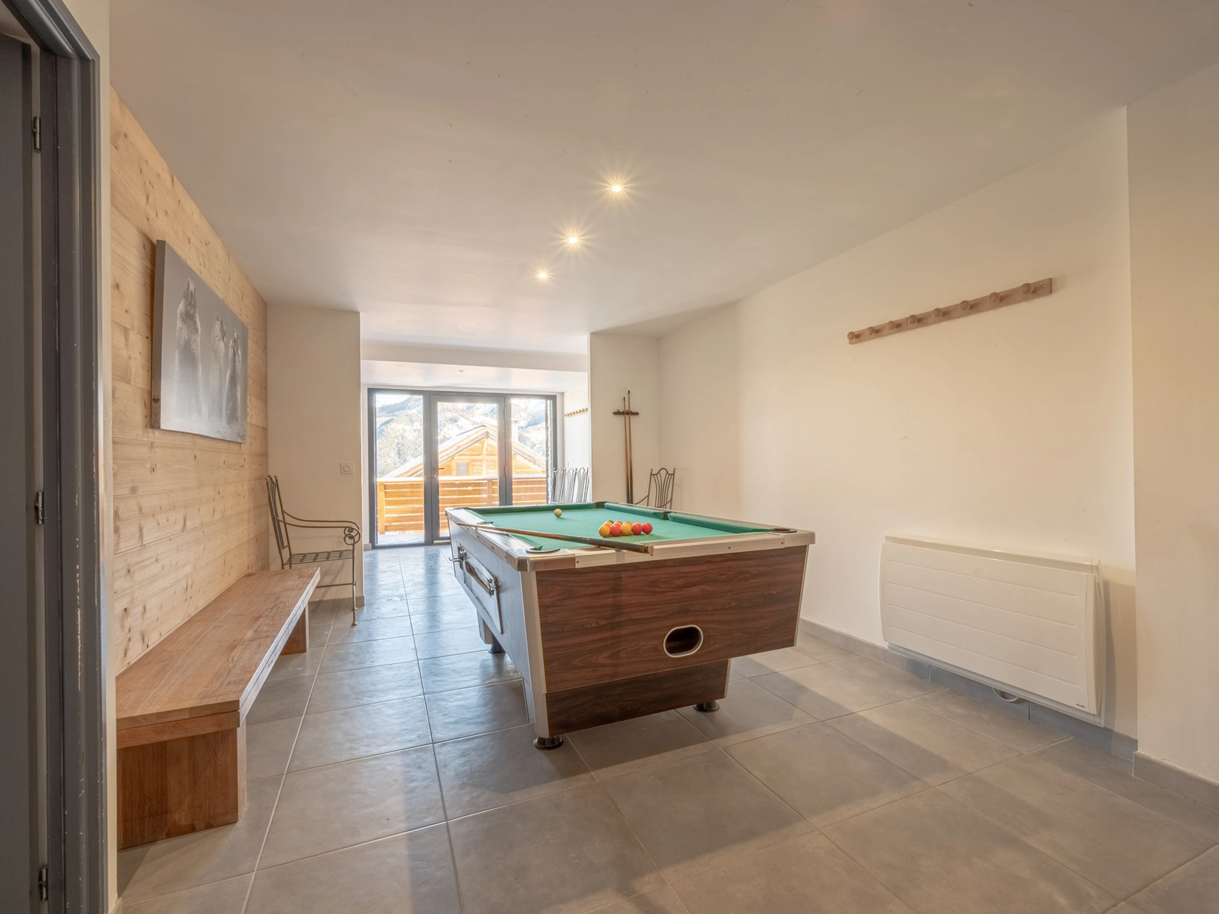 ** RDC : Entrée / Couloir : local à skis, pièce avec billard ;