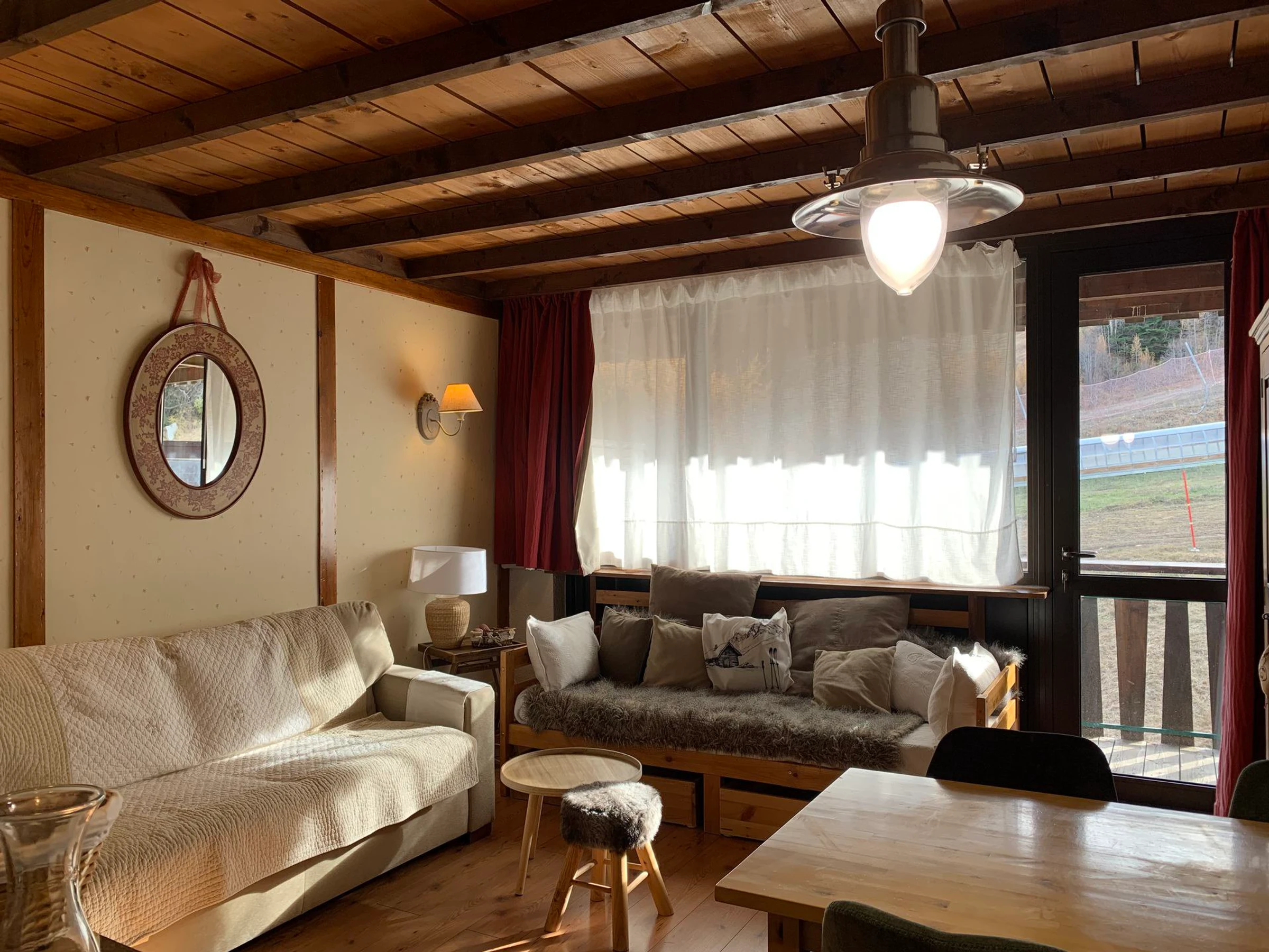 COMMENTAIRES : Magnifique studio rénové avec parquet au sol, situé en front de pistes, coquet et chaleureux. Box à skis niveau -1. Parking à proximité.