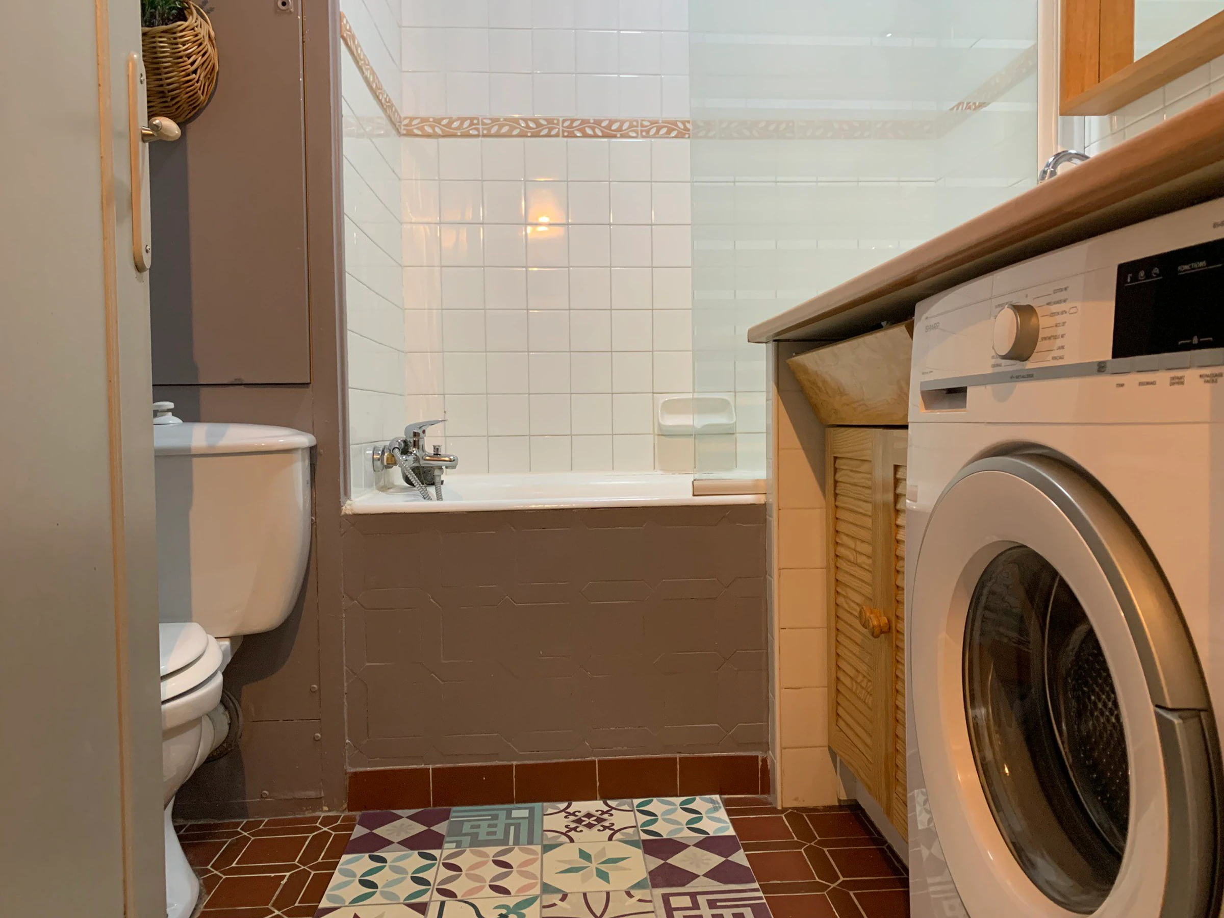 * Salle de Bains avec baignoire, [hidden] et lave-linge ;