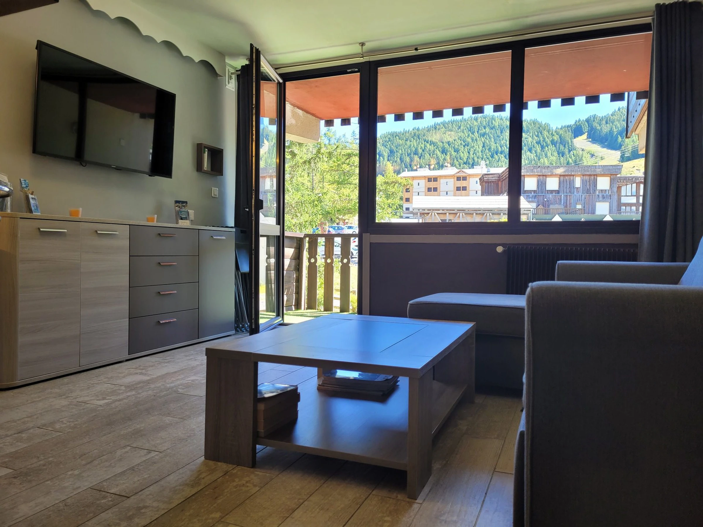 Studio pour 4/5 personnes, 31m² environ. Situé au 6ème étage (entrée immeuble niveau 4) avec ascenseurs. Exposé Sud avec balcon et vue sur les pistes.