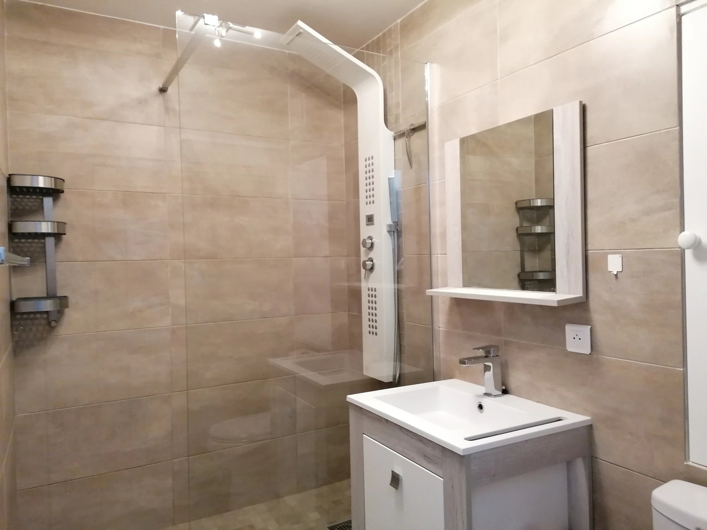 * Coin cuisine : four, réfrigérateur/congélateur, 4 plaques induction, lave-vaisselle, micro-ondes, cafetière Tassimo, cafetière filtre, grille pain, bouilloire, appareil à raclette ;