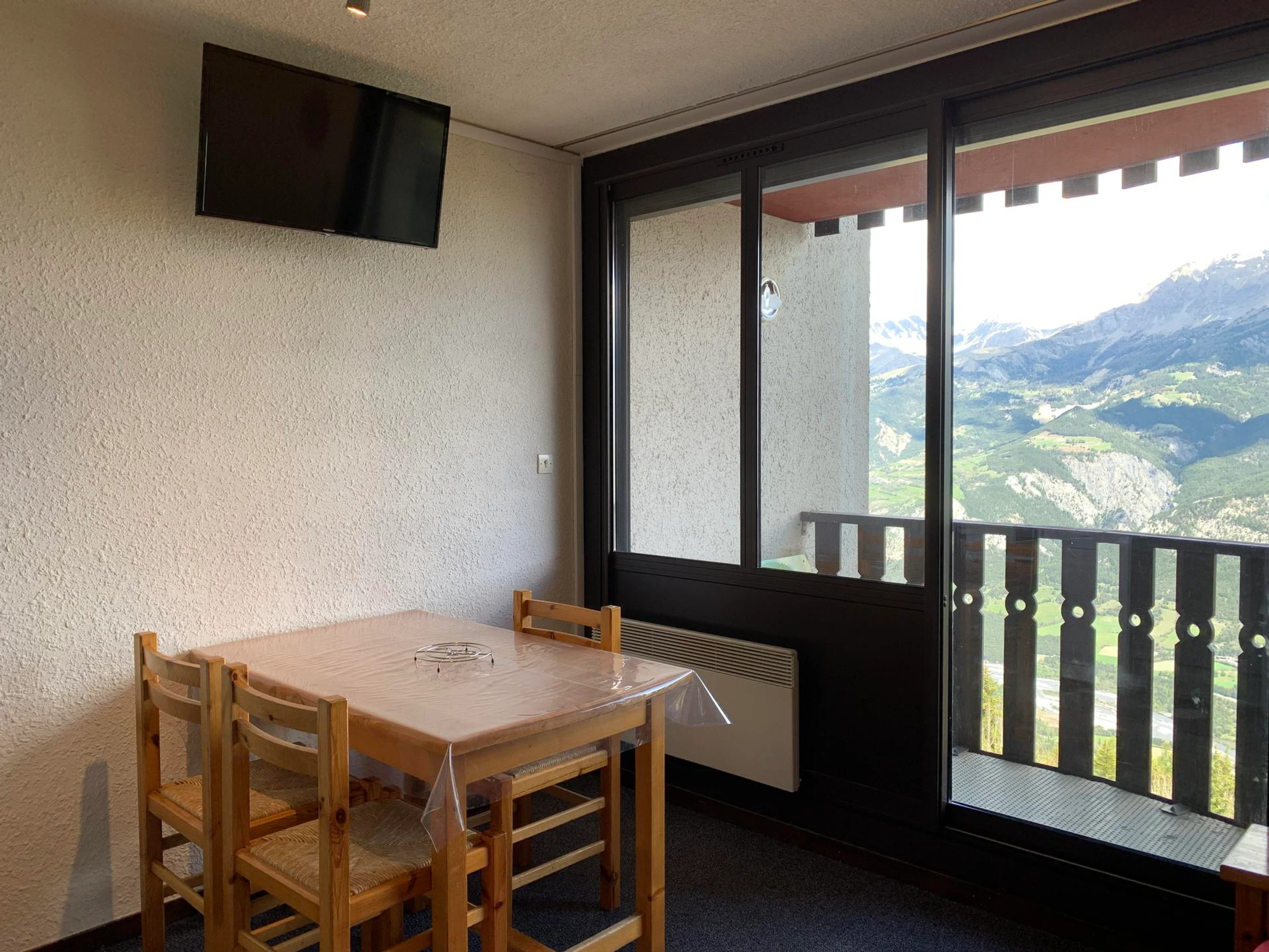 * Séjour : 1 convertible type clic-clac 2 places, tv écran plat, accès balcon, belles vues sur la forêt et la vallée ;