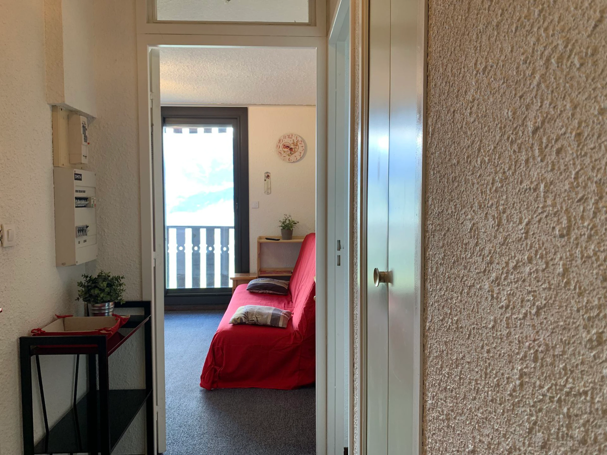 Studio pour 4 personnes, 24m² environ. Situé au 7ème étage avec ascenseur, (entrée immeuble niveau 4). Exposé Ouest avec balcon et jolie vue sur la vallée.