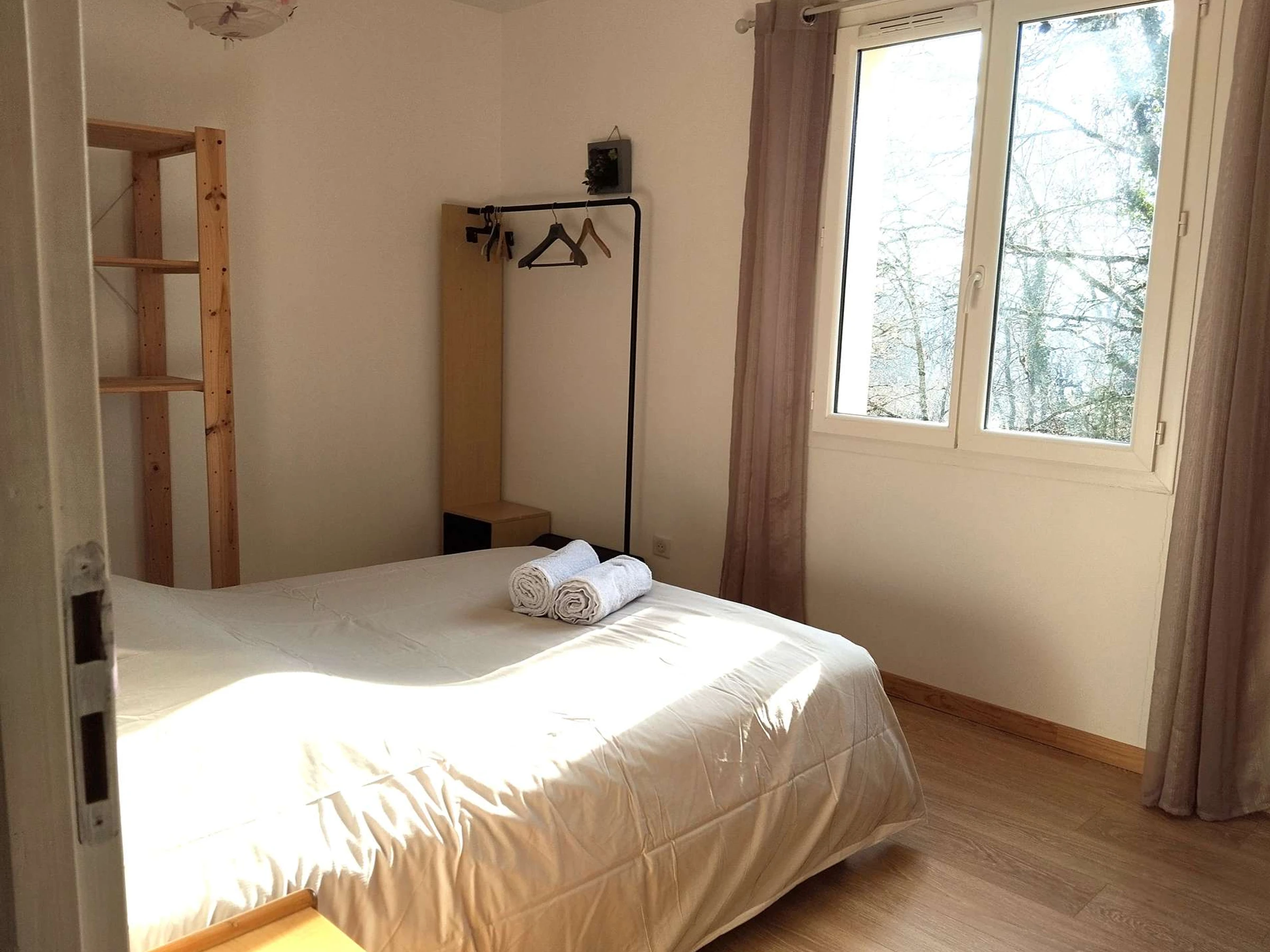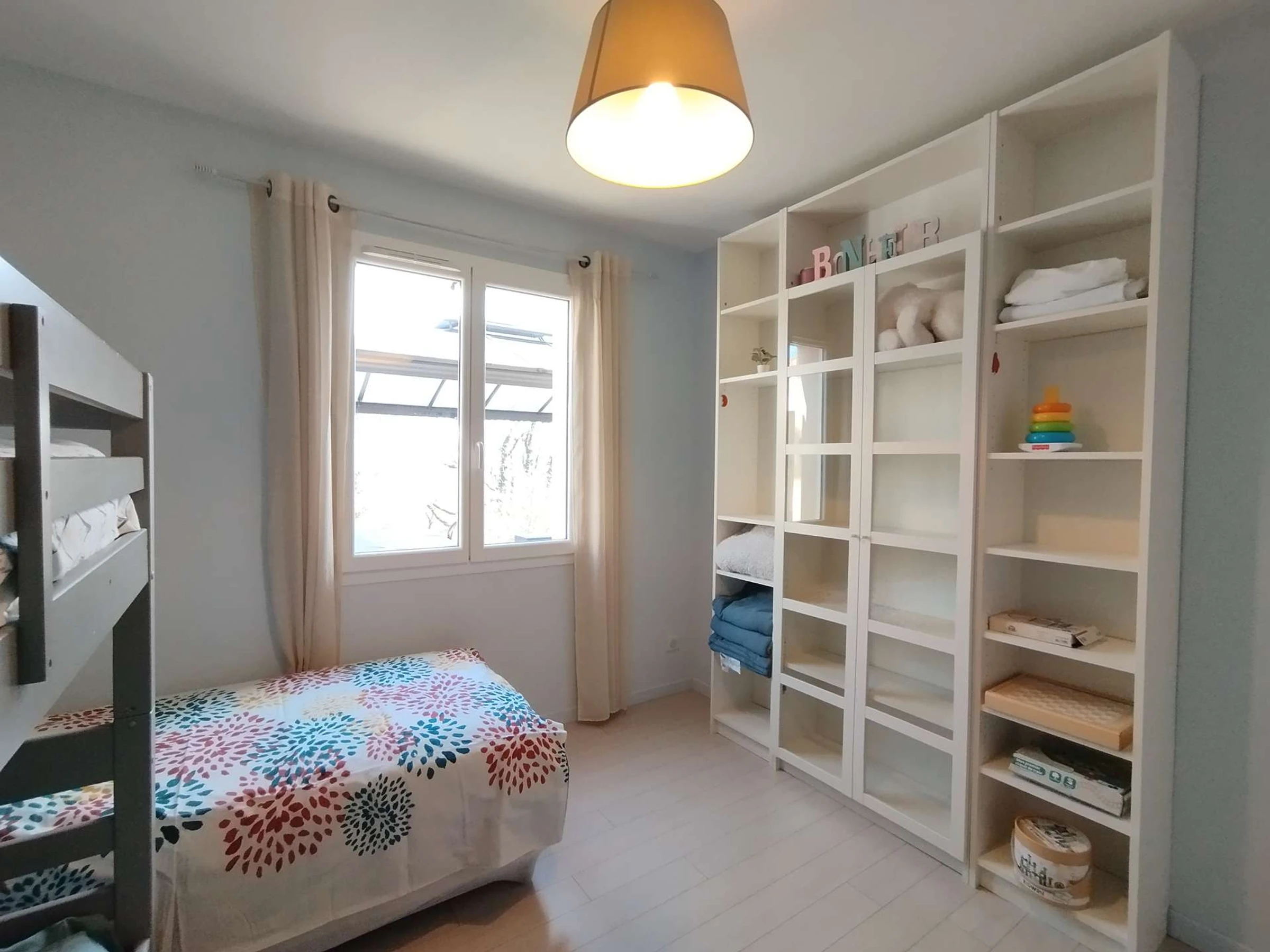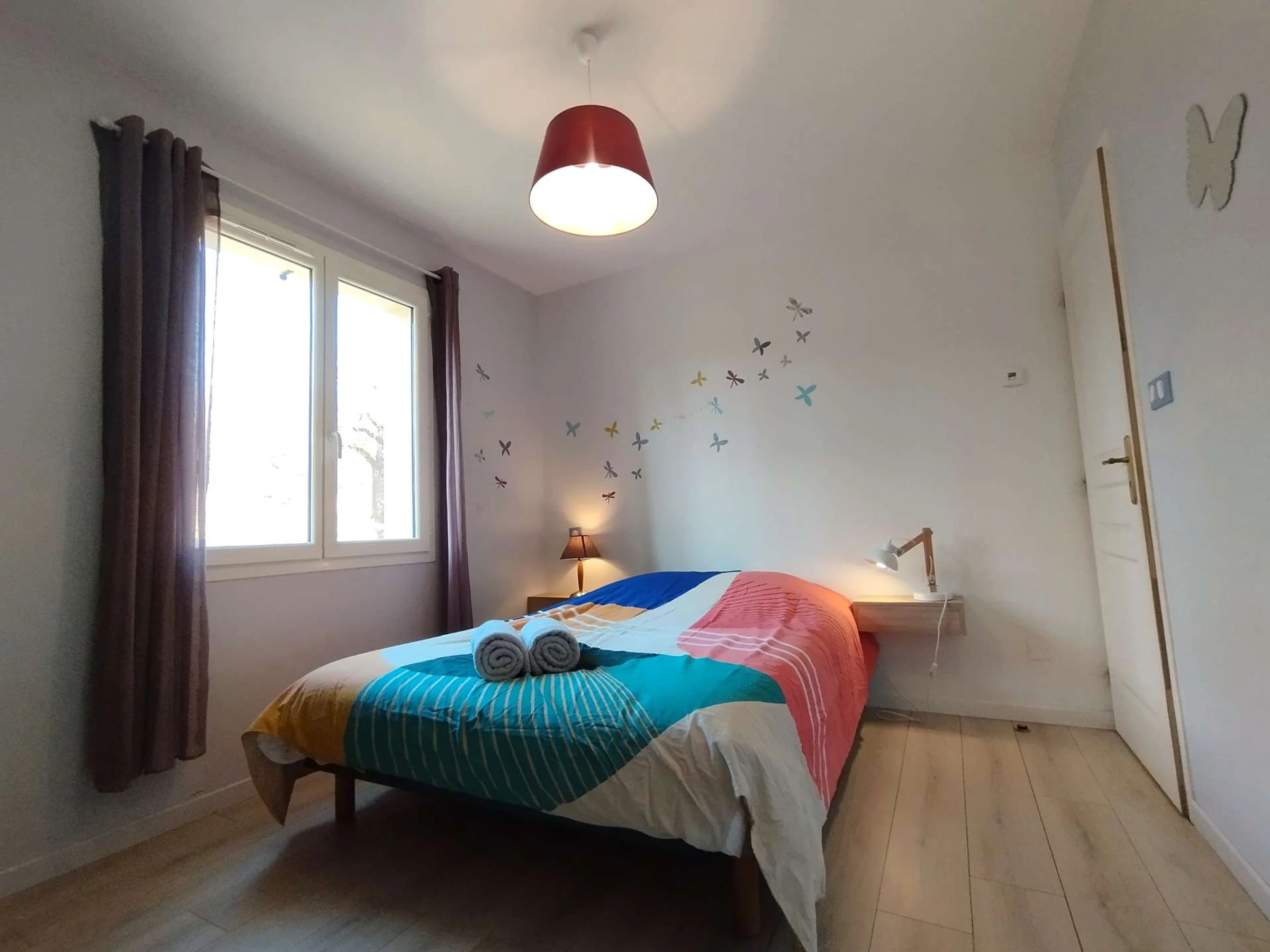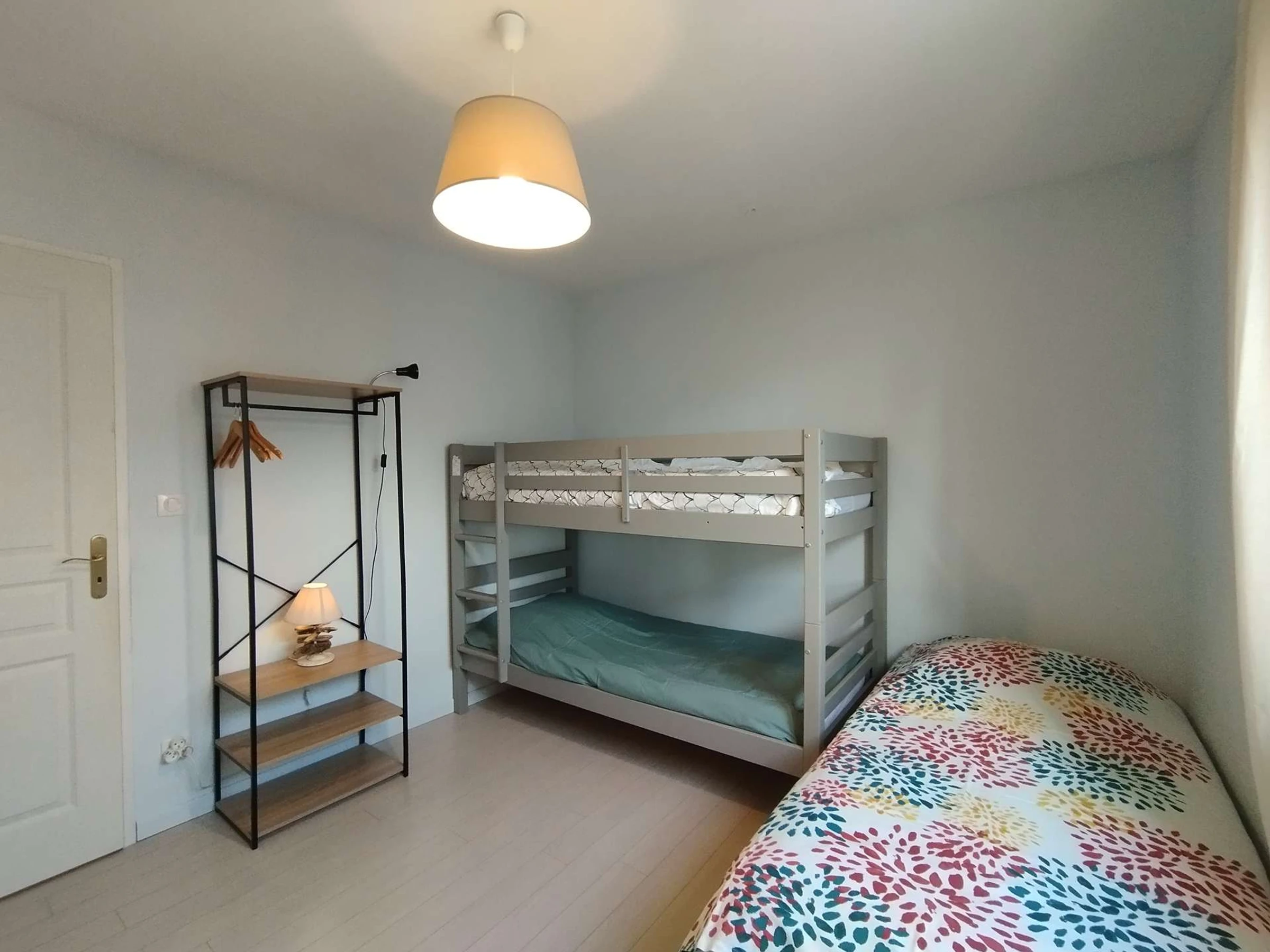 La maison dispose également de trois autres chambres : deux chambres spacieuses avec chacune un lit double (140x190 cm), propices au repos, et une chambre équipée d’un lit simple (90x190 cm) et d’un lit superposé (= 2 lits de 90x190 cm), idéale pour les enfants.