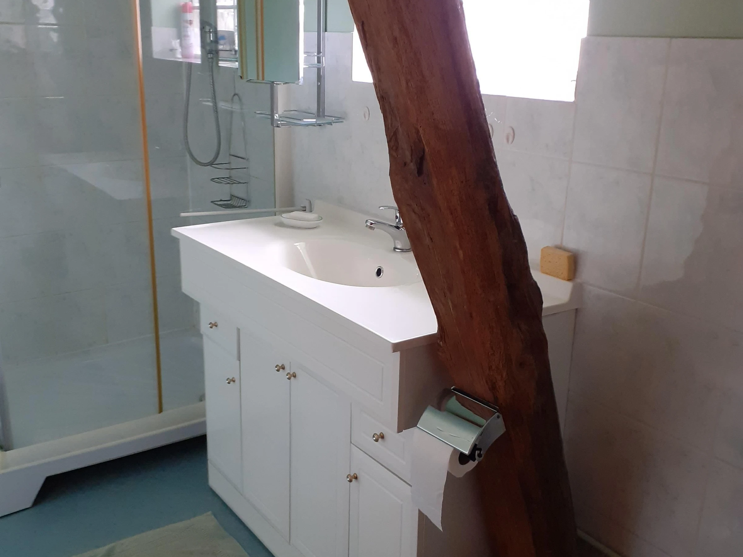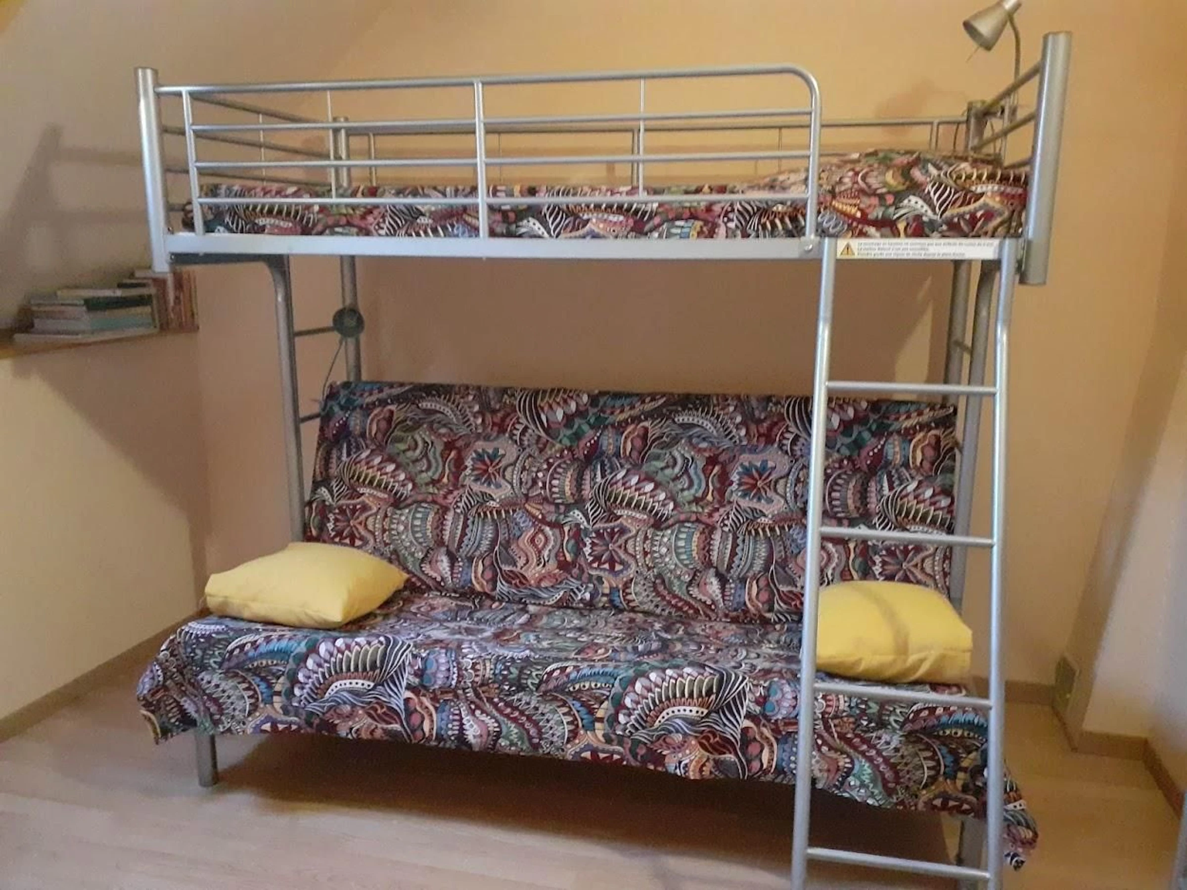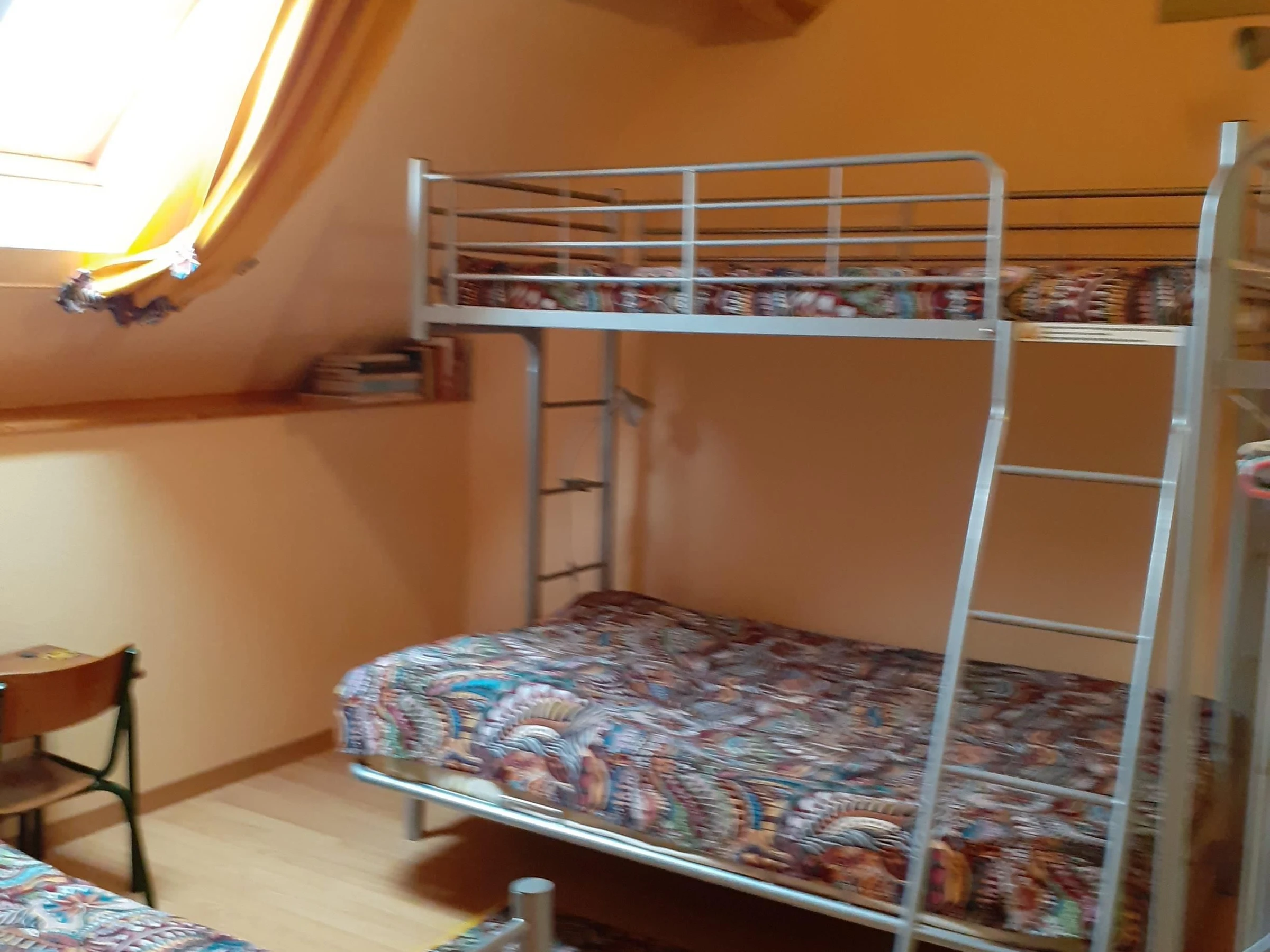 1er étage: 3 chambres (3 lits 0,90 , 1 lit 140, 1 lit superposé 0,90 et 1 lit bébé), salle d'eau avec WC. Équipement pour bébé : baignoire, barrière en haut des escaliers, matelas à langer, transat, trotteur.