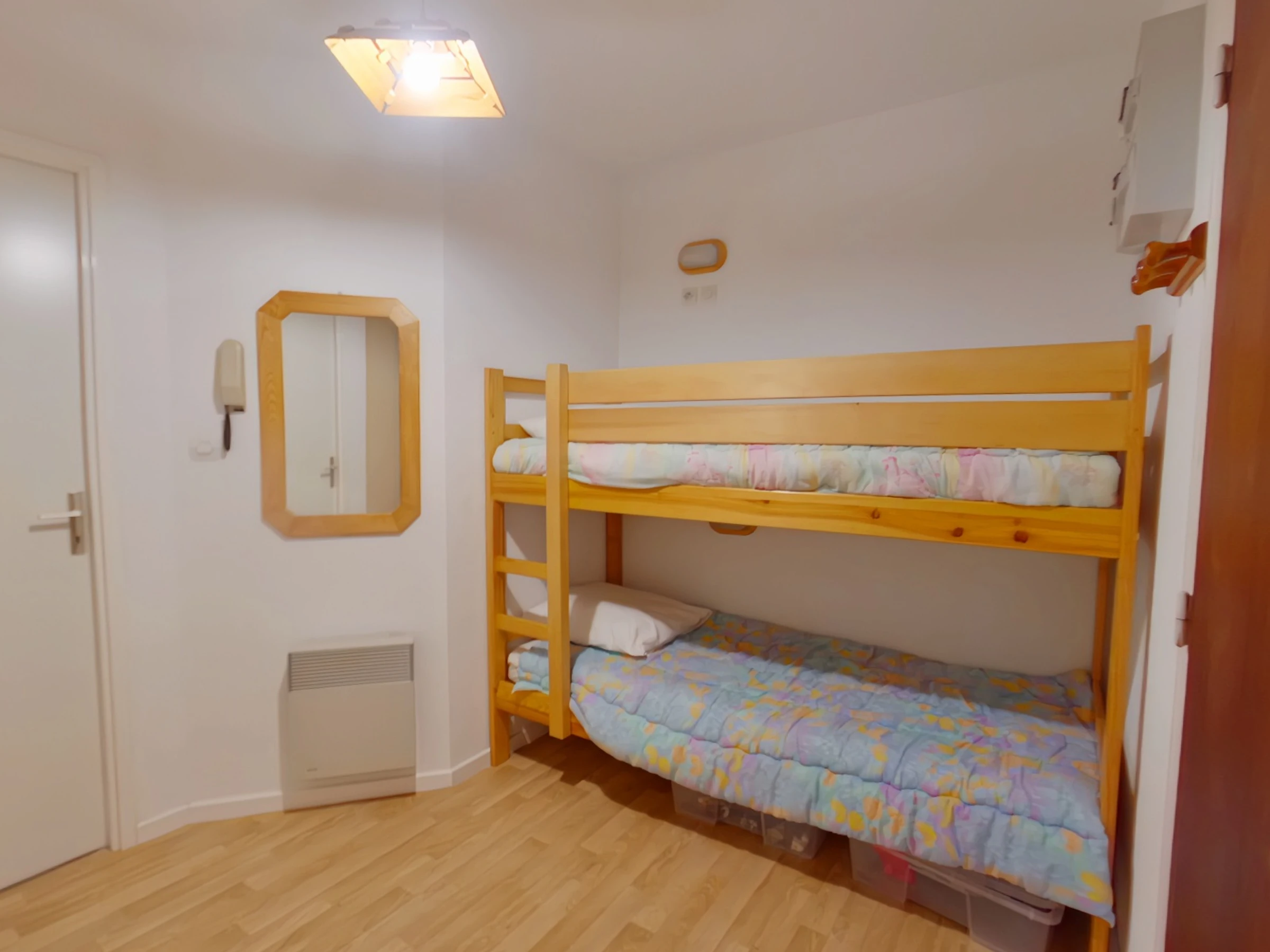 Côté nuit, vous trouverez une chambre avec un lit double, et un coin montagne équipé de deux lits simples superposés.