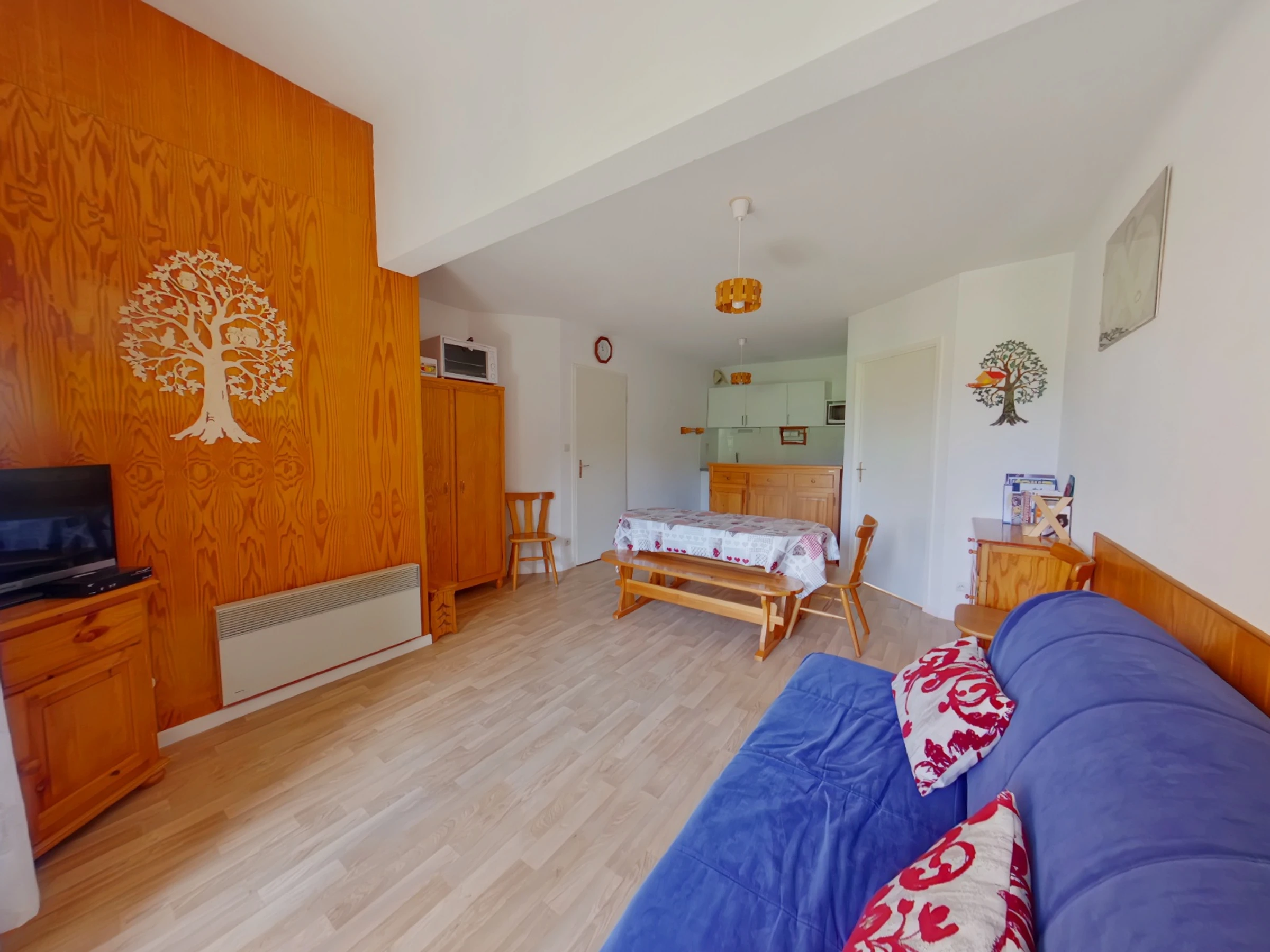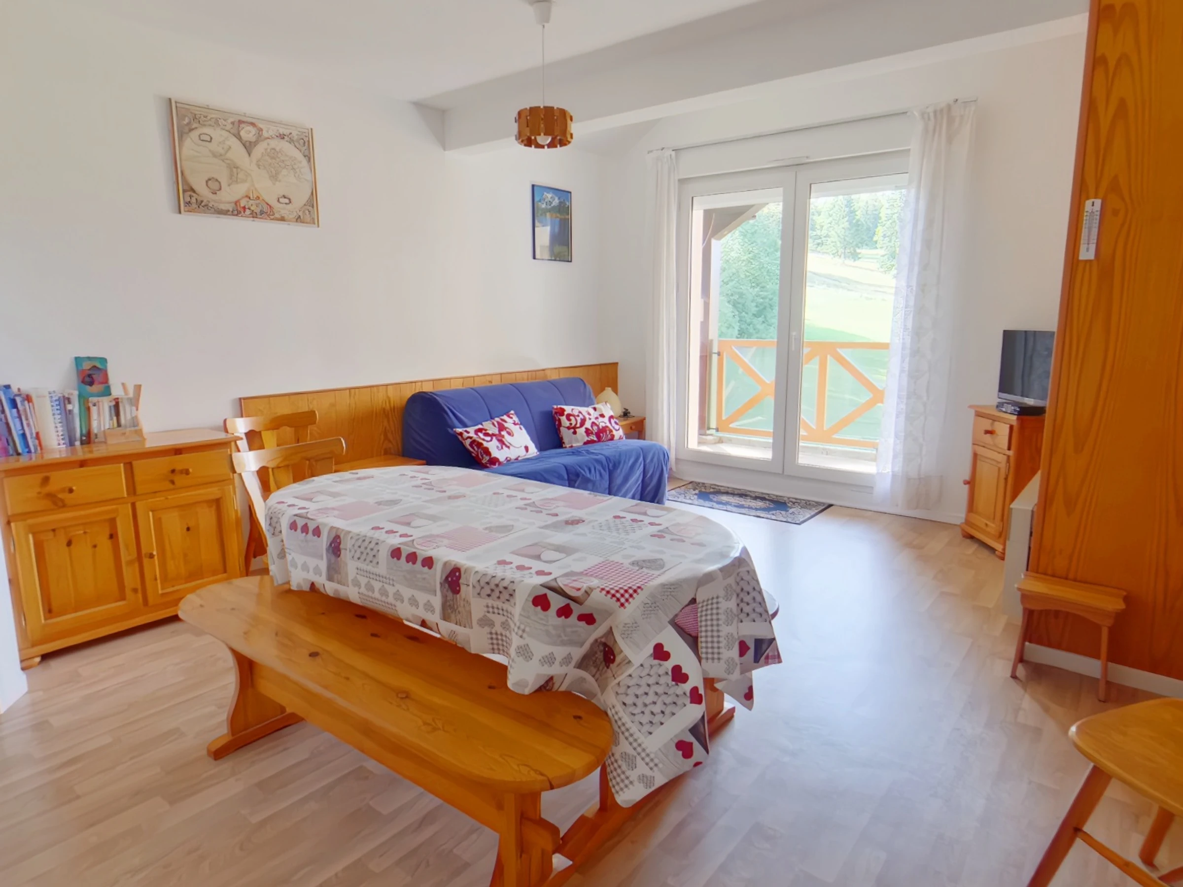 Il comprend une pièce de vie lumineuse avec une cuisine ouverte équipée, un espace salon avec un BZ (deux couchages) et un grand balcon donnant sur les pistes de ski.